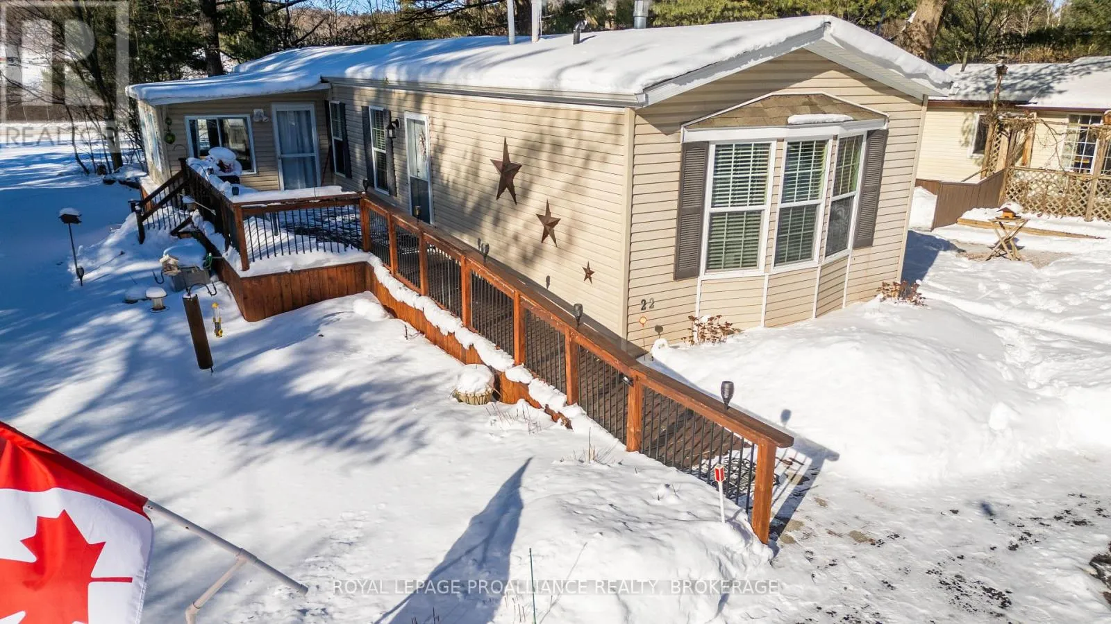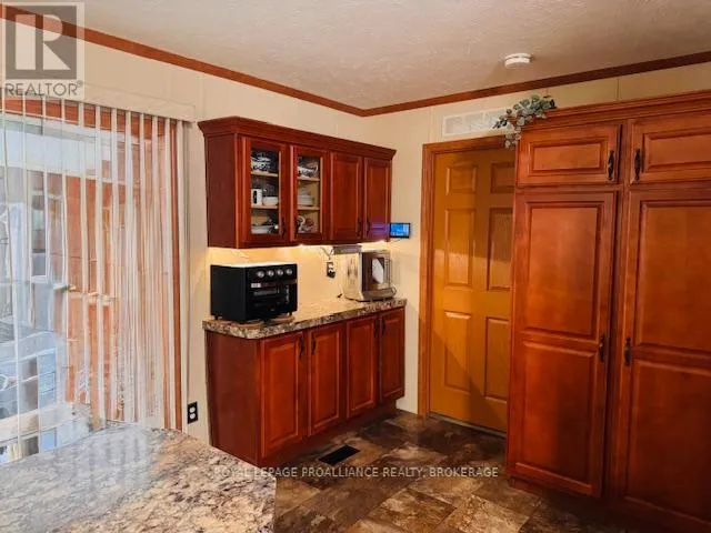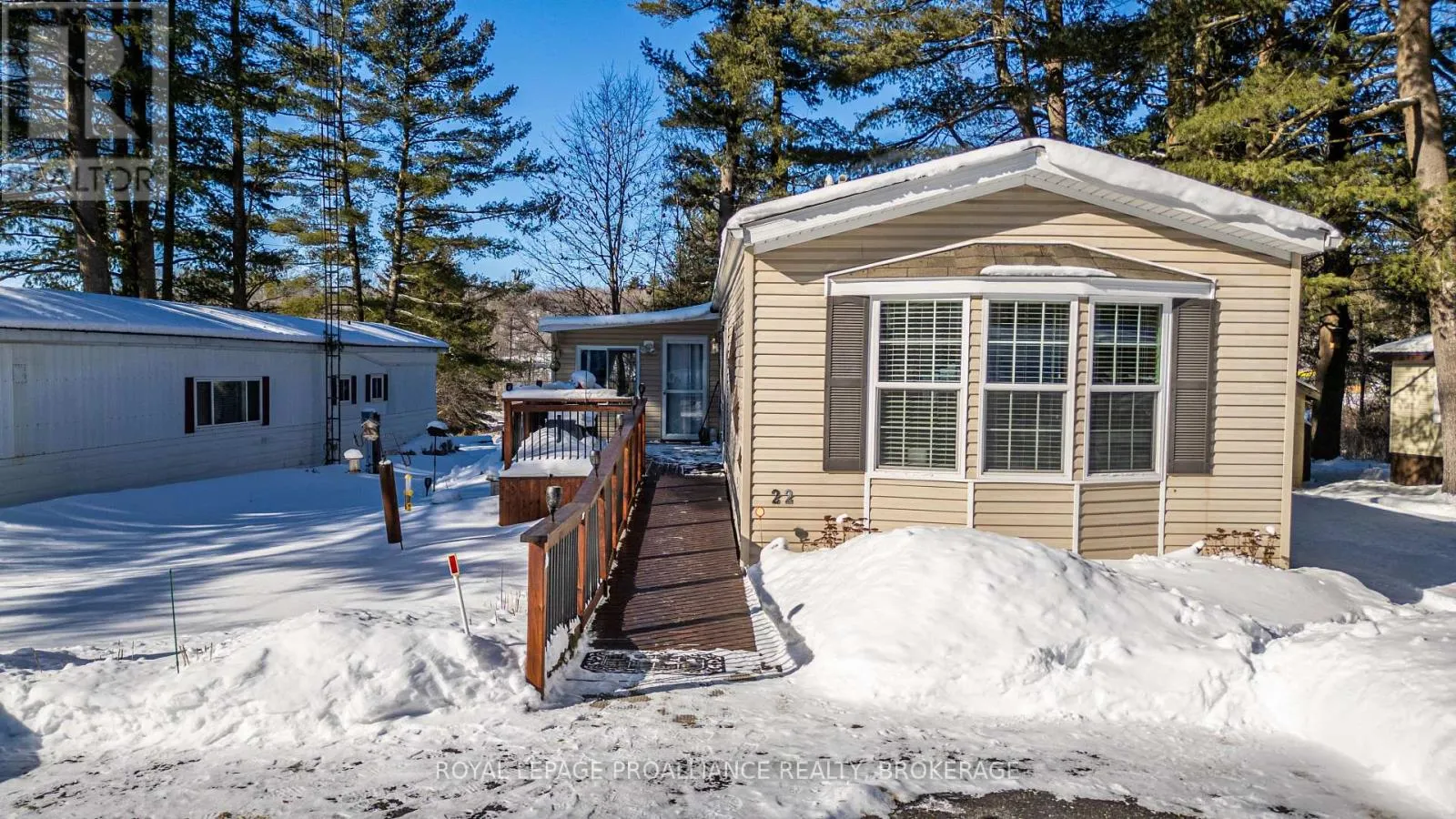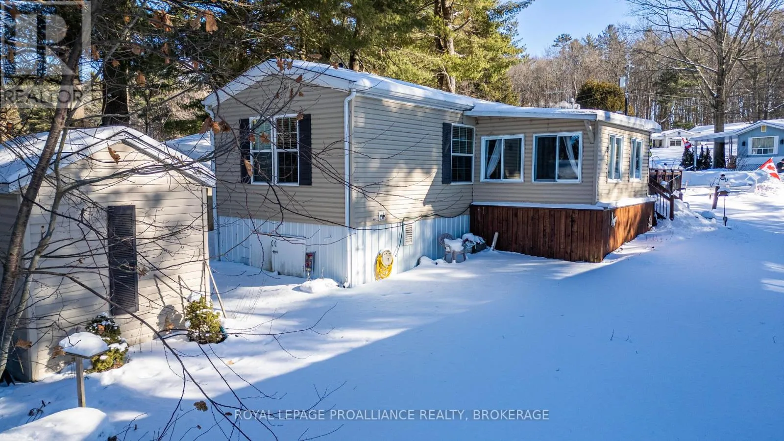 Cross Streets: HIGHWAY #15 & HIGHWAY #32. ** Directions: HIGHWAY #15 NORTH PAST SEELEY'S BAY TO HIGHWAY#32 JUNCTION TURN RIGHT GO TO 3303 HIGHWAY #32. Welcome to easy, comfortable living in desirable Pine Ridge retirement community. This thoughtfully designed mobile home offers an open-concept layout with a spacious kitchen flowing seamlessly into the living room - perfect for everyday living and entertaining. The kitchen features ample cabinetry, room for a dedicated coffee station, gas stove, dishwasher, refrigerator and convenient centre island. The primary bedroom includes a spacious walk-in closet and a private 4-piece ensuite complete with a relaxing soaker tub. A second bedroom offers flexibility as a guest room or home office, complemented by a main 4-piecebath and convenient main-floor laundry. Cozy up by the gas fireplace or enjoy warmer days in the 3season sunroom overlooking the yard. A garden shed provides additional storage for outdoor tools and seasonal items. Ideally located close to Seeley's Bay, with Kingston just 30 minutes away and Gananoque within 15minutes, this home is affordable living at its best! (id:27476)