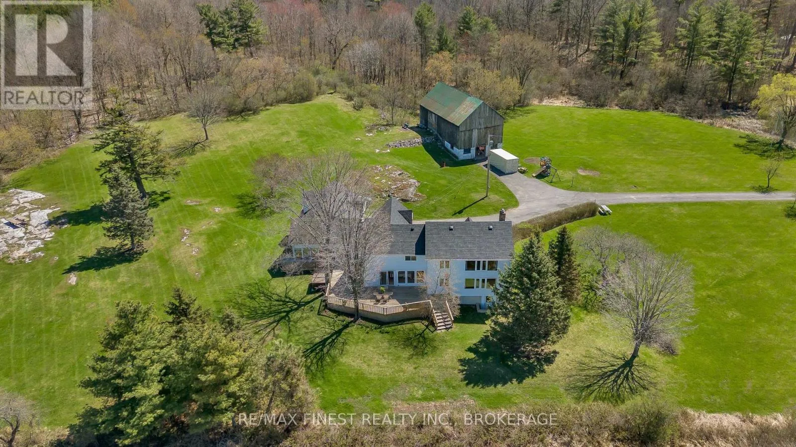 Cross Streets: HWY 2 & Howe Island ferry Road. ** Directions: From Kingston just past Clarks Marina. Property is on the left hand side. Rural living at its finest! This stunning country estate is only minutes from Gananoque and a15-minute commute to Kingston and offers the perfect balance of tranquility and convenience. Situated on over 80 acres of peaceful countryside, its an ideal setting for ATV adventures, horseback riding, snowmobiling, nature watching, hunting, or simply enjoying time with family. A long, tree-lined paved driveway leads to the home, set well back from the road for added privacy. The land features a private pond, scenic forested areas of hardwood and cedar, and winding trails that offer abundant wildlife and natural beauty. The spacious home showcases grand principal rooms and oversized picture windows that frame the surrounding landscape. With four bedrooms and four bathrooms, there's plenty of room for the whole family. A large country kitchen, formal dining area, family room with stone fireplace and bright sunroom provide warm, inviting spaces for entertaining and everyday living. The expansive primary suite features a walk-in closet and a 4-piece ensuite. Additional features include an attached double-car garage with inside entry and a finished flex space above ideal for a home office, in-law suite, or extended family living. The lower level offers a bonus recreation room with walk-up access to outside, and a sauna for unwinding after a long day. Afterwards step out onto the back deck and take in the peaceful views of open meadows. Adding to the charm is a 30' x 58' century barn, ready for a variety of uses from hobby farming to event space. A rare blend of elegance, privacy, and versatility perfect for equestrians, outdoor enthusiasts, hobby farmers, or anyone seeking peace without sacrificing proximity to town. Don't miss your chance to own this one-of-a-kind estate. Book your private showing today! (id:27476)