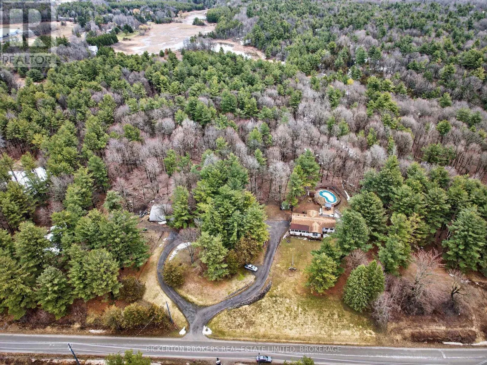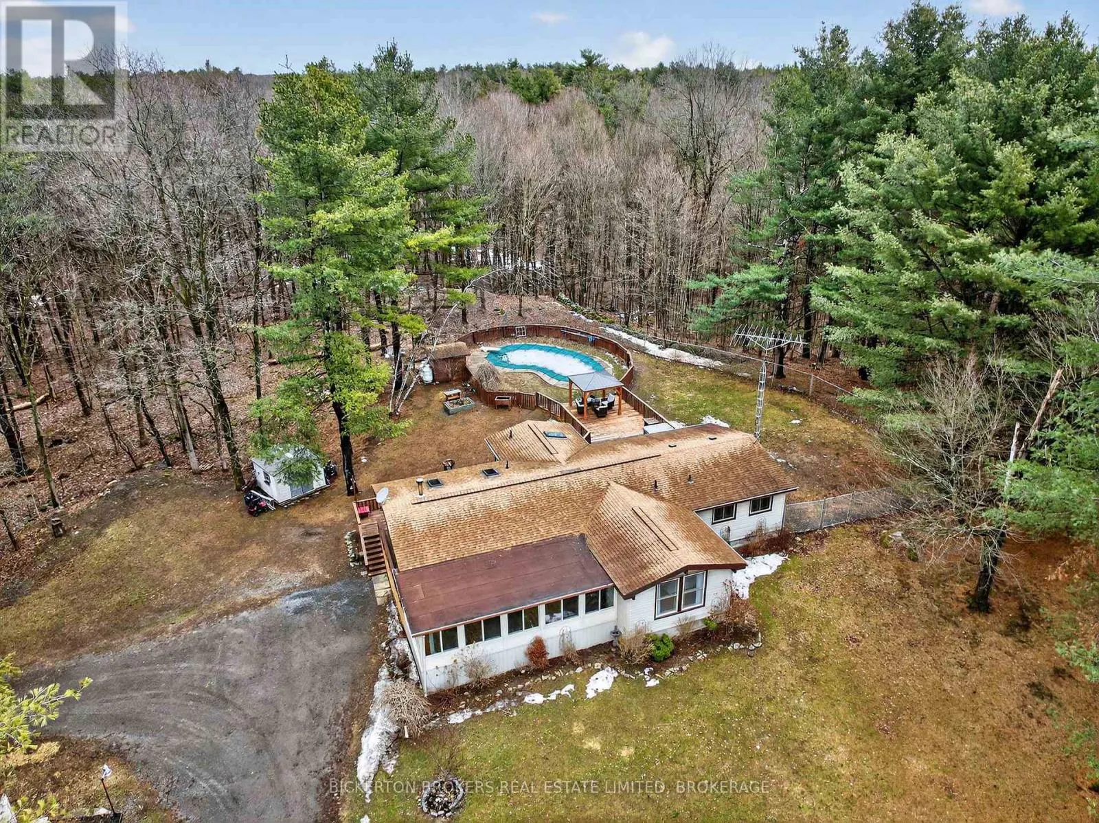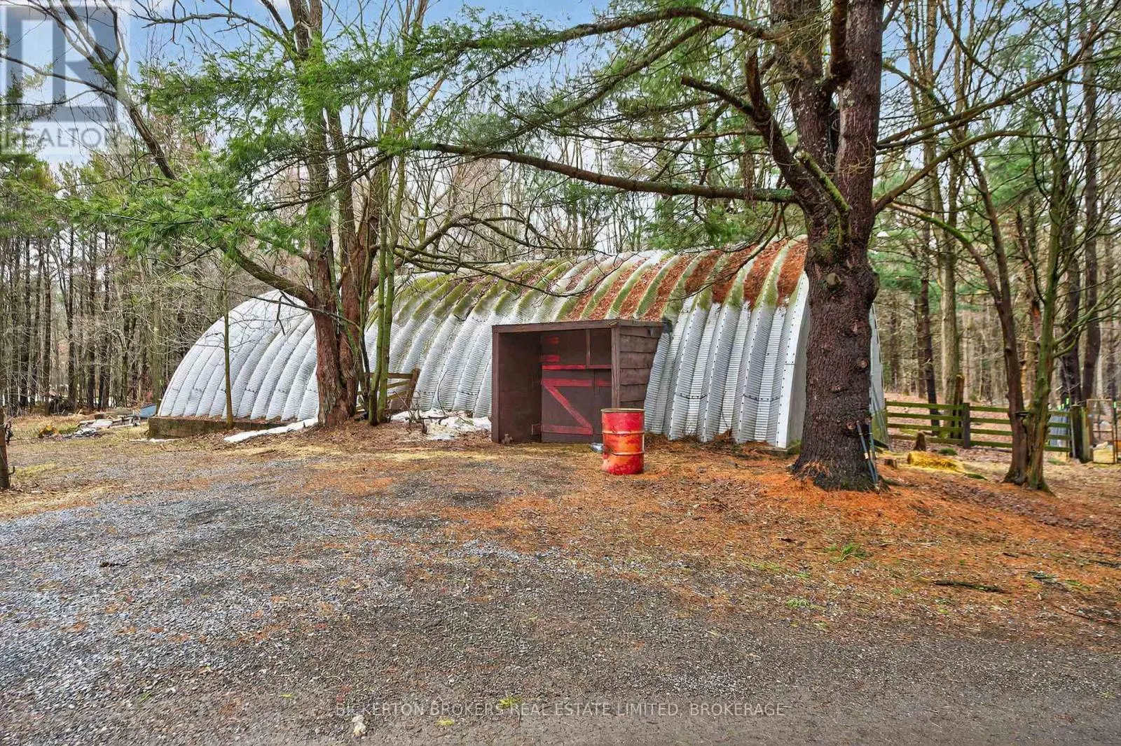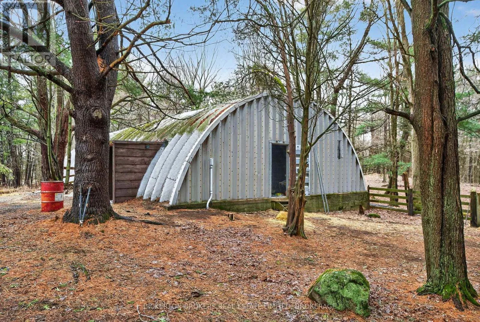 Cross Streets: Thousand Island Parkway and Fitzsimmons Rd. ** Directions: Thousand Island Parkway east of Gananoque, turn North onto Fitzsimmons Rd, house on east (right) side. Nestled in the trees this 7-acre property has it all; conveniently located on a quiet road within walking distance to the 1000 Island Parkway waterfront trail, a marina, and a quick hop onto the 401 or to the bridge to the US. You have it all on one level with 2 bathrooms, 4 bedrooms, plus large dedicated laundry room and separate mudroom. An open concept kitchen, dining and living area takes advantage of the views and streams with sunlight. Vaulted ceilings make the space bright and airy a skylight adds even more light in the dining area. Lovely wood cabinetry in the kitchen with lots of storage and a handy breakfast bar or additional workspace. The living room is large, and light filled and you'll love to cozy up by the stove on those chilly nights. There is also a door for access to the wrap around deck. Outside there is plenty of room for all your hobbies to include a large shed with attached kennel or use as a chicken coop, a fenced area currently housed by chickens and a goat and to top it off a large steel Quonset hut that provides endless options. Maybe boat storage or it once was used for horses or a fabulous workshop equipped with power. To add to this paradise, you have a lovely in ground pool surrounded by decking that can handle all your entertaining or relaxing dreams. The pool and deck area are at the rear and offer complete privacy surrounded by your own woods. If you are a nature lover wildlife abounds at this gorgeous location. Nicely set back from the road and featuring a circular driveway. Do not miss out on this! (id:27476)