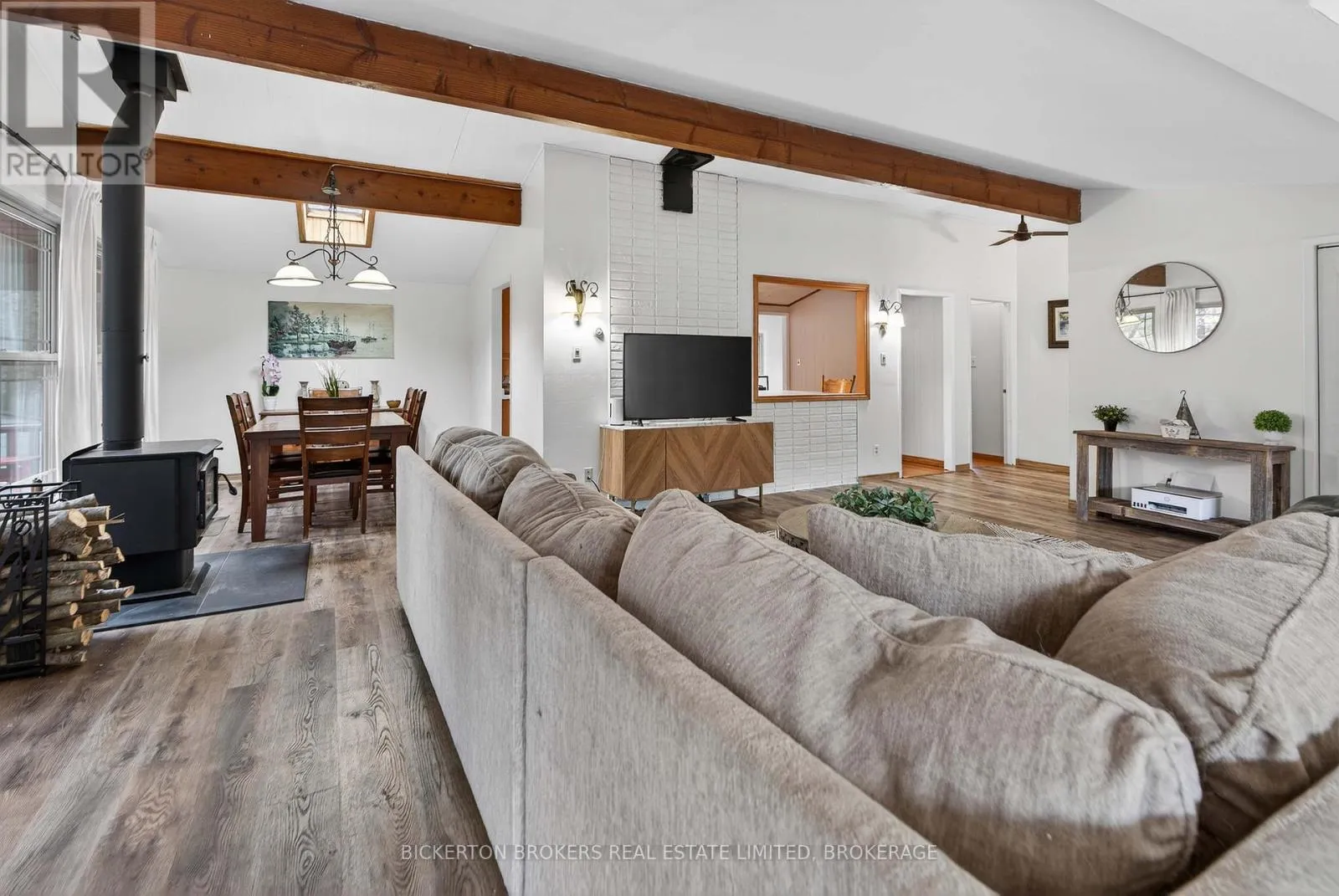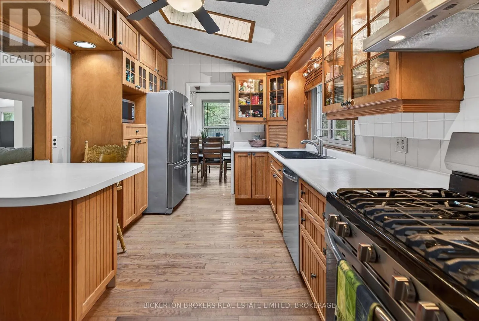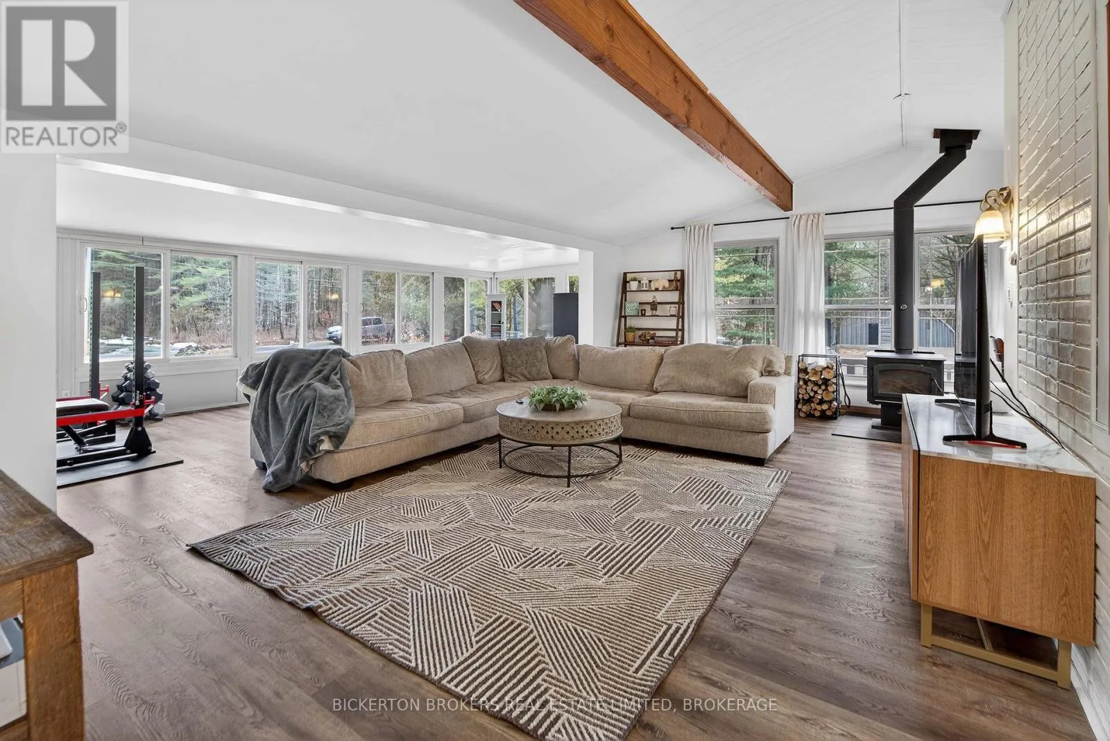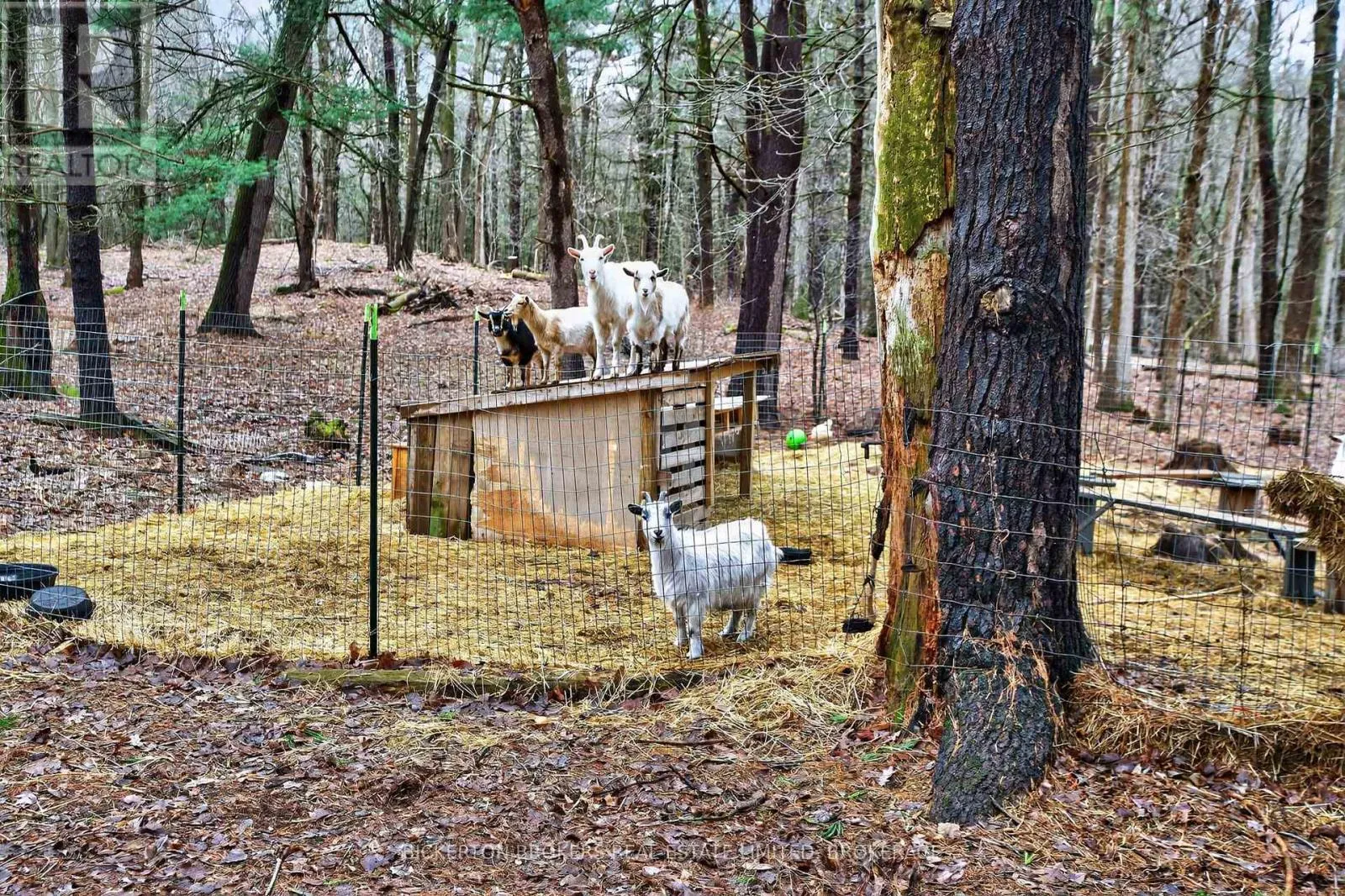 Cross Streets: Thousand Island Parkway and Fitzsimmons Rd. ** Directions: Thousand Island Parkway east of Gananoque, turn North onto Fitzsimmons Rd, house on east (right) side. Nestled in the trees this 7-acre property has it all; conveniently located on a quiet road within walking distance to the 1000 Island Parkway waterfront trail, a marina, and a quick hop onto the 401 or to the bridge to the US. You have it all on one level with 2 bathrooms, 4 bedrooms, plus large dedicated laundry room and separate mudroom. An open concept kitchen, dining and living area takes advantage of the views and streams with sunlight. Vaulted ceilings make the space bright and airy a skylight adds even more light in the dining area. Lovely wood cabinetry in the kitchen with lots of storage and a handy breakfast bar or additional workspace. The living room is large, and light filled and you'll love to cozy up by the stove on those chilly nights. There is also a door for access to the wrap around deck. Outside there is plenty of room for all your hobbies to include a large shed with attached kennel or use as a chicken coop, a fenced area currently housed by chickens and a goat and to top it off a large steel Quonset hut that provides endless options. Maybe boat storage or it once was used for horses or a fabulous workshop equipped with power. To add to this paradise, you have a lovely in ground pool surrounded by decking that can handle all your entertaining or relaxing dreams. The pool and deck area are at the rear and offer complete privacy surrounded by your own woods. If you are a nature lover wildlife abounds at this gorgeous location. Nicely set back from the road and featuring a circular driveway. Do not miss out on this! (id:27476)
