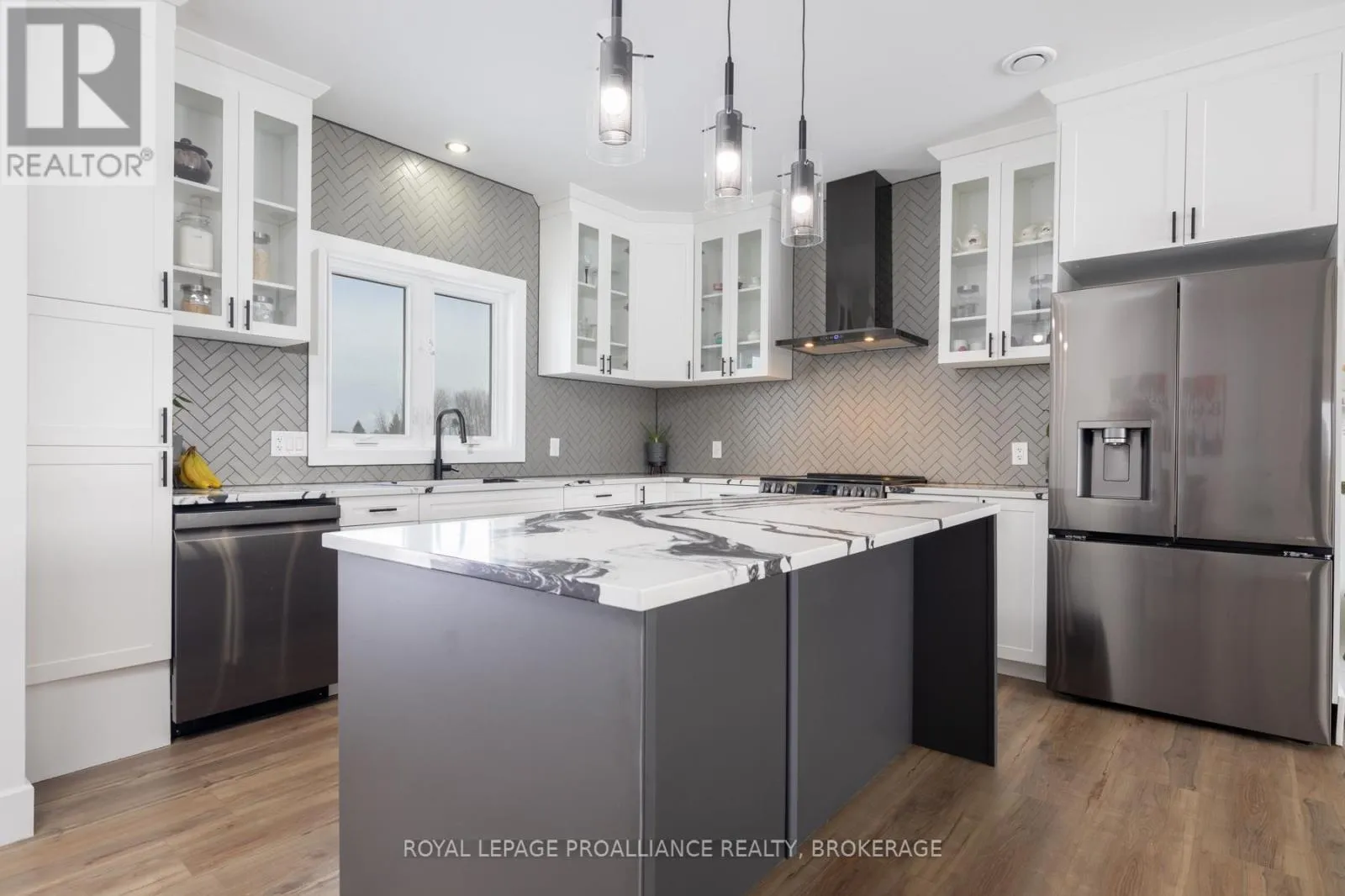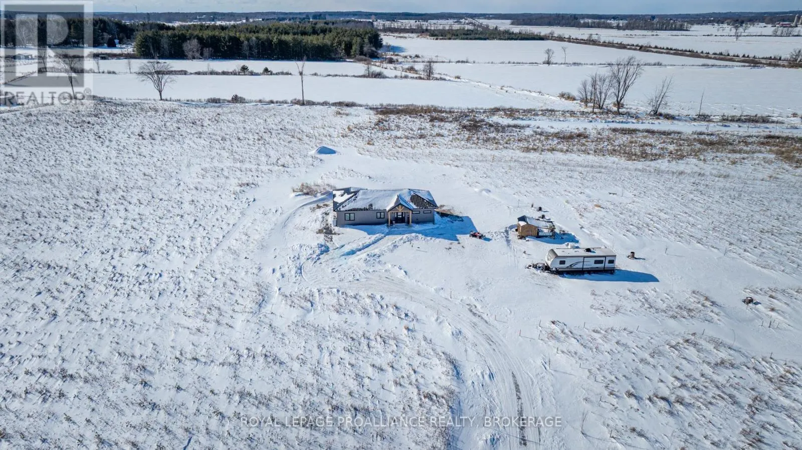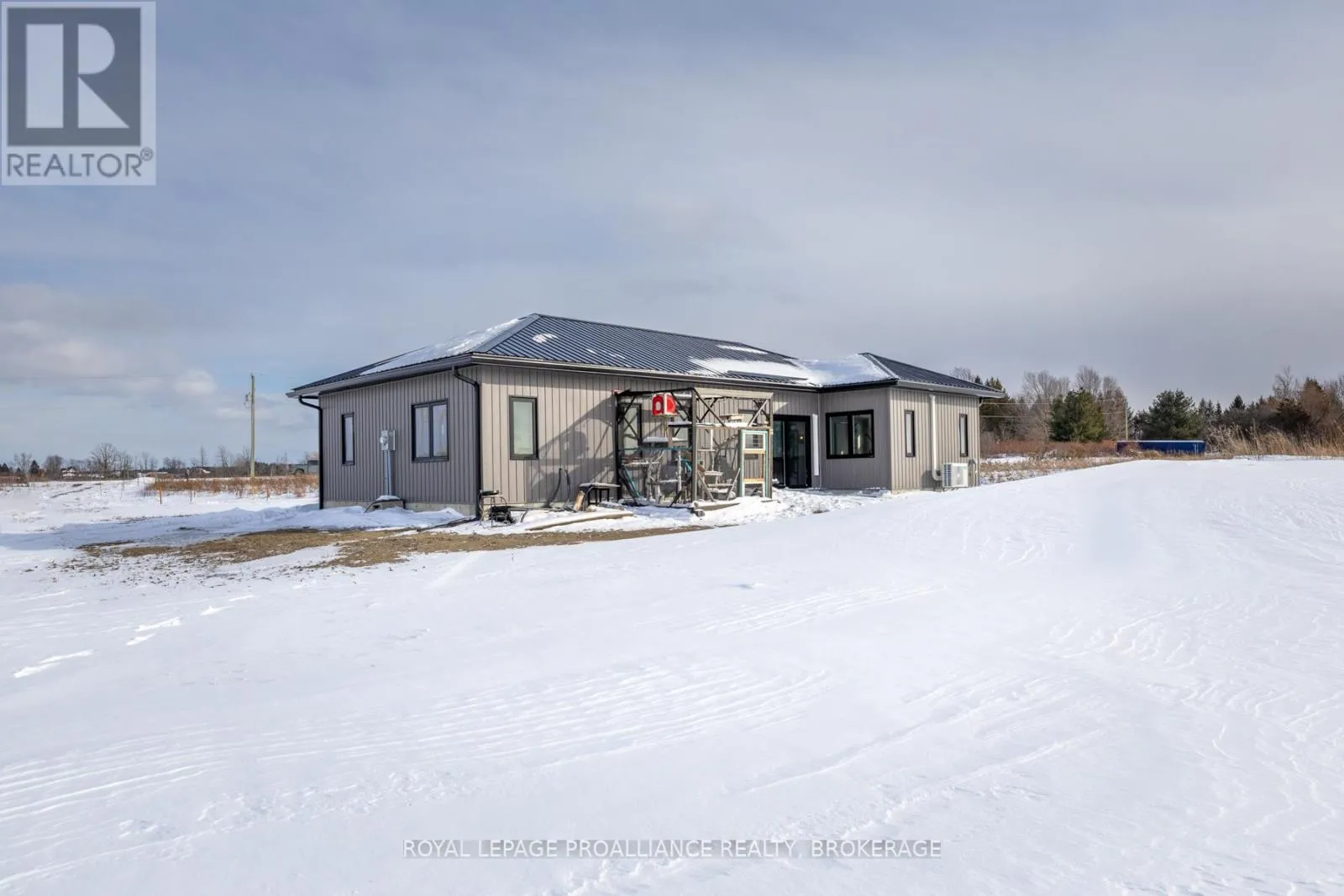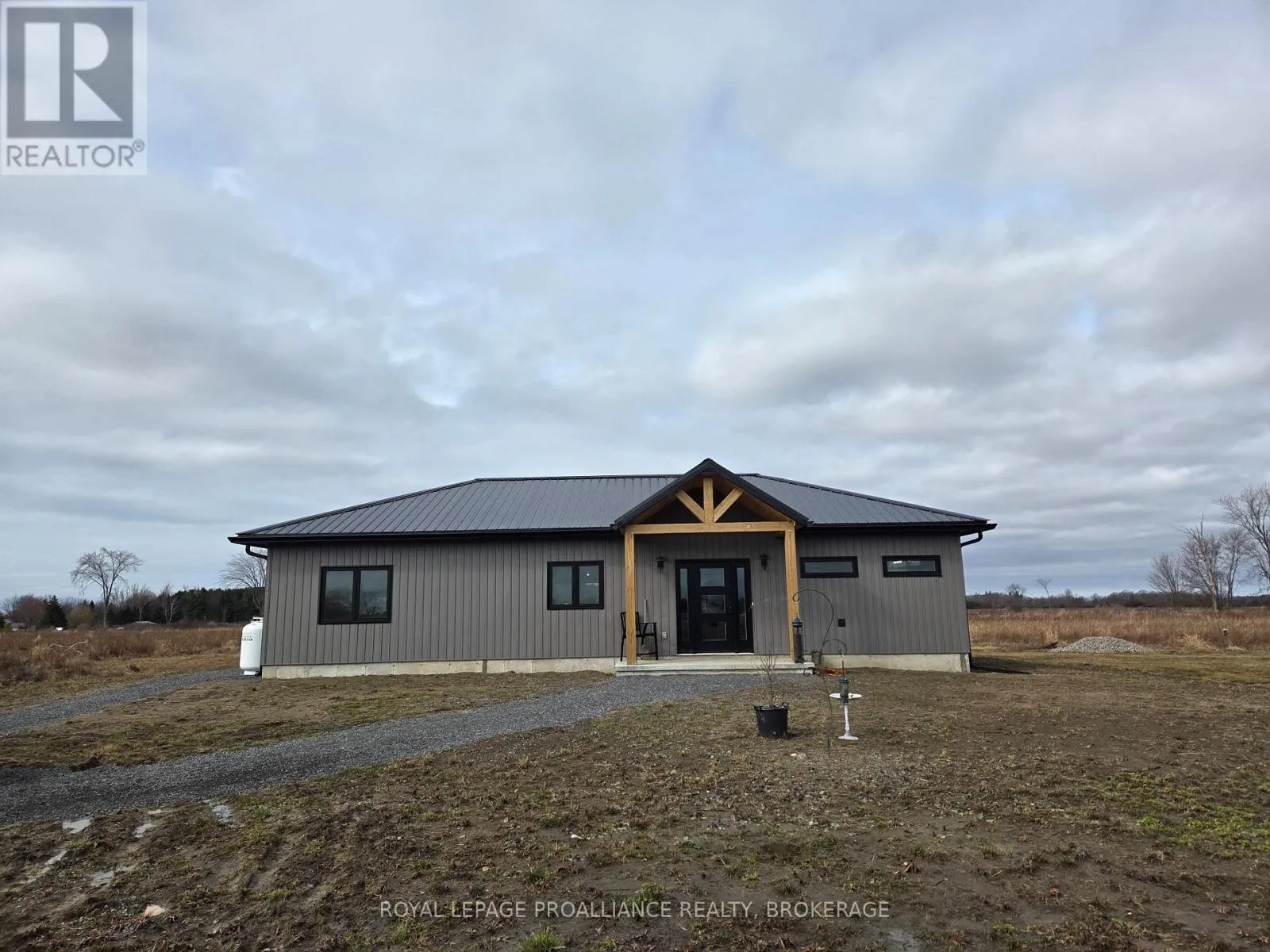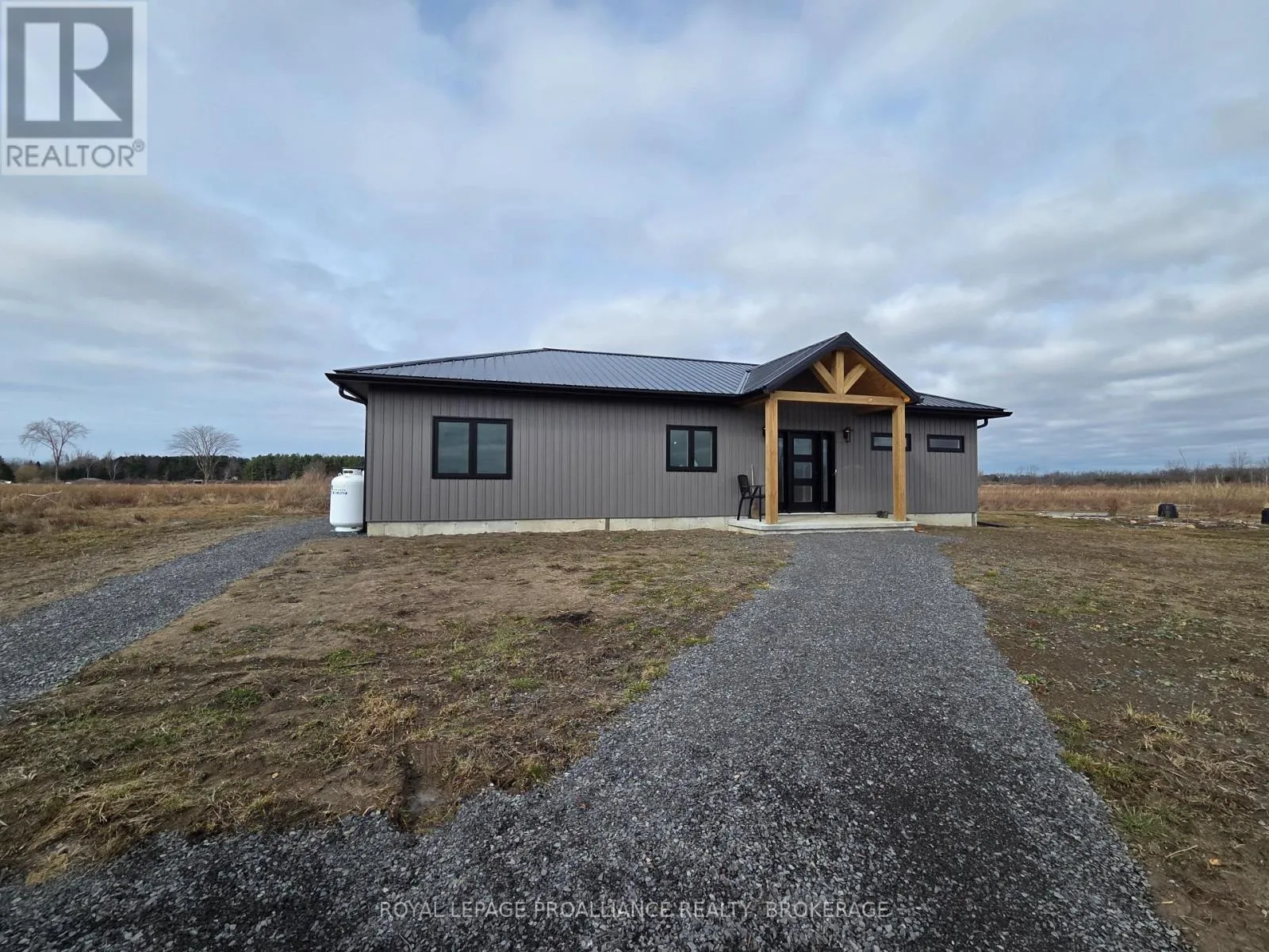 Cross Streets: KYES ROAD SOUTH & HIGHWAY 2. ** Directions: 5 MINUTES EAST OF GANANOQUE ON HIGHWAY 2. LEFT ON KYES ROAD. Modern Country Living on 25 Acres - Just Minutes from Gananoque. Welcome to the perfect blend of contemporary comfort and peaceful rural living. This recently built, slab-on-grade bungalow sits on a stunning 25-acre property, offering space, privacy, & low-maintenance living - all just 5 minutes east of the town of Gananoque & approximately 30 minutes from downtown Kingston. Step inside to a bright, open-concept home featuring laminate flooring throughout (completely carpet-free) with tile in the bathrooms, all warmed by in-floor radiant heating for year-round comfort. The heart of the home is a stylish modern kitchen designed for both everyday living entertaining. You'll love the quartz countertops, elegant tile backsplash, slow close cupboard drawers & large center island, plus a full set of new LG appliances included. The spacious primary bedroom retreat offers a beautifully finished ensuite with, double sinks, quartz countertops, custom tiled shower with sliding glass door. From the ensuite, you'll appreciate the smart layout leading directly into a convenient & functional shared laundry room & walk-in closet. Two additional generously sized bedrooms provide flexibility for family, guests, or office/gym space, with one featuring a door to the side yard for private access. The second bathroom is equally impressive, showcasing a pocket door, quartz counters, & a stylish freestanding tub. This home also features A/C, a storage shed & 9000 recently planted trees. Built for easy ownership, the home exterior features board & batten-style vinyl siding & a durable metal roof, ensuring long-term, low-maintenance living. If you've been searching for modern finishes, efficient design, & acreage close to town - this property delivers it all. (id:27476)