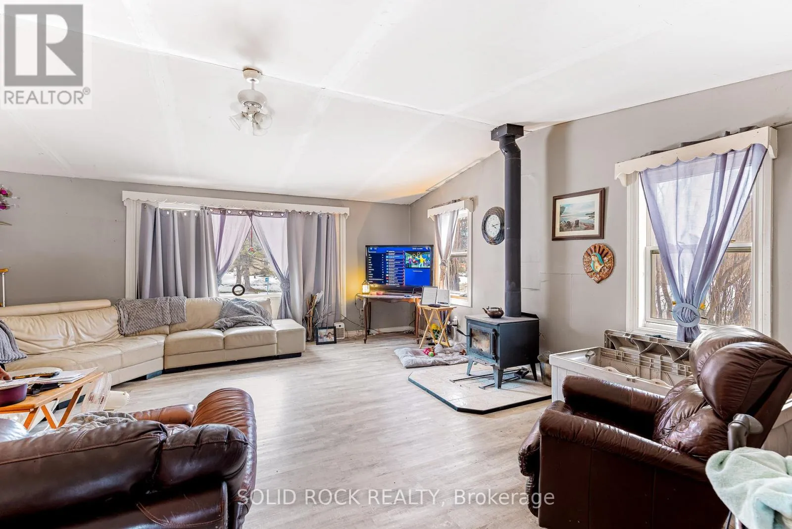 Cross Streets: Guild rd and county rd 2. ** Directions: County 2 west past Mallorytown just past Guild RD. 6 bedroom home over 2100' on 2.3 acre lot in Mallorytown. The eat in kitchen has patio doors to the back deck. The generous living room is the newer section of the home featuring a wood stove. Half the bedrooms are on the main floor as well as the laundry. The main bath on the main floor features its own gas fireplace. The home has some unfinished areas but possibly the best value for space so close to the 401. (id:27476)