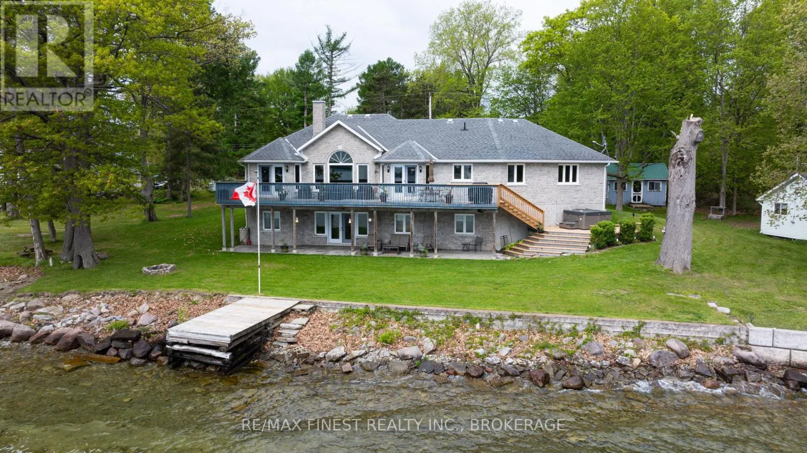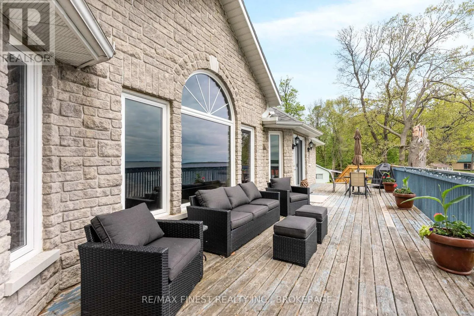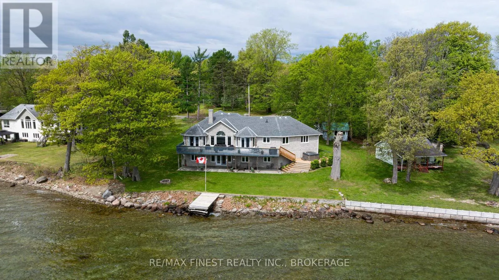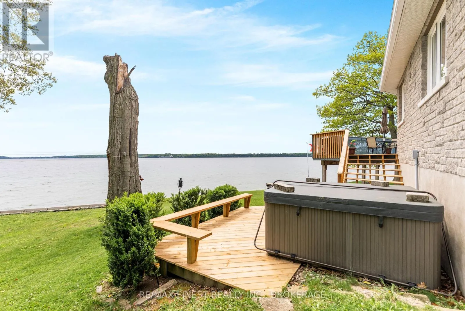 County Road 96 Welcome to 121 Hickory Lane Waterfront Living on Wolfe Island Discover peaceful waterfront living at this exceptional 3-bedroom, 2.5-bathroom home on Wolfe Island. Thoughtfully constructed on an ICF foundation with a full stone exterior, this home combines durability, energy efficiency, and timeless curb appeal in a stunning natural setting. Perched along the southern shores of the St. Lawrence River, the property offers expansive views where you can watch freighters glide by and enjoy tranquil moments by the water. Inside, soaring vaulted ceilings and oversized windows fill the home with natural light and showcase the breathtaking waterfront vistas. The open-concept layout features a finished walkout basement with radiant in-floor heating, offering cozy comfort through all seasons. Step out onto the full-length deck, ideal for entertaining or soaking in the views accessible directly from the primary bedroom, making morning coffee feel like a private retreat. The tiered outdoor living space includes a lower covered patio and a hot tub, surrounded by the serenity of nature. The home also includes an attached garage, a separate detached garage, a large shed, and a charming bunkie, providing versatile space for guests, hobbies, or additional storage. Whether you're relaxing in the hot tub, watching the ships pass by, or hosting friends and family, 121 Hickory Lane offers a rare opportunity to own a beautifully built, turn-key waterfront property in one of the regions most picturesque island settings. (id:27476)