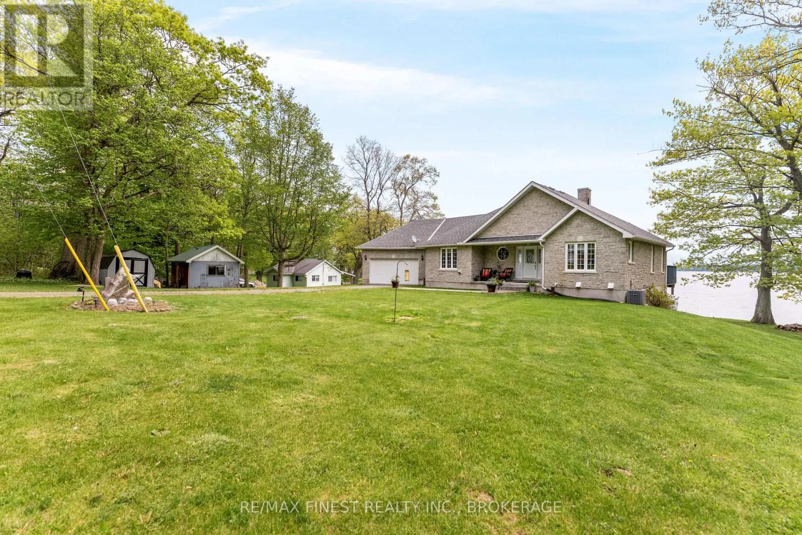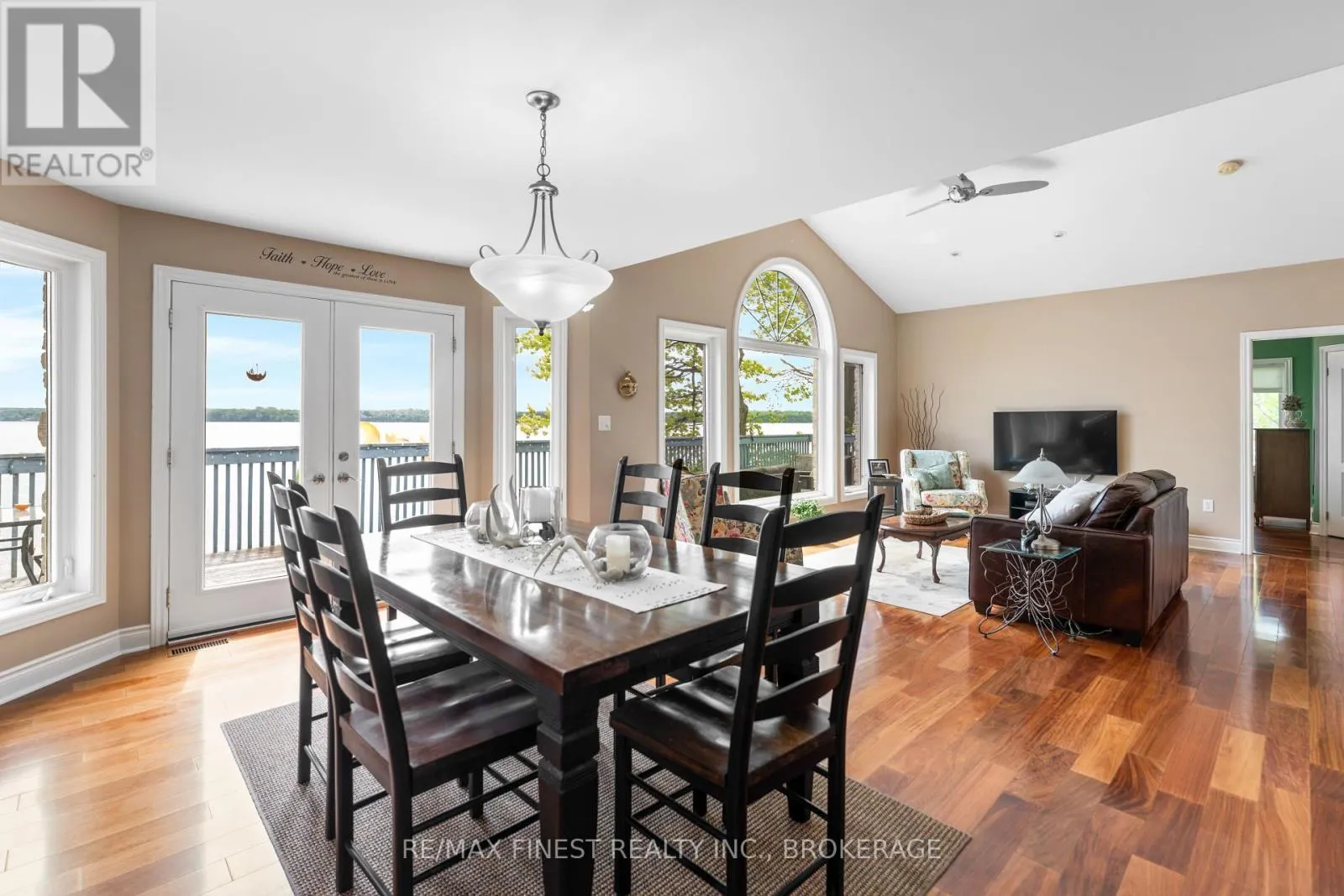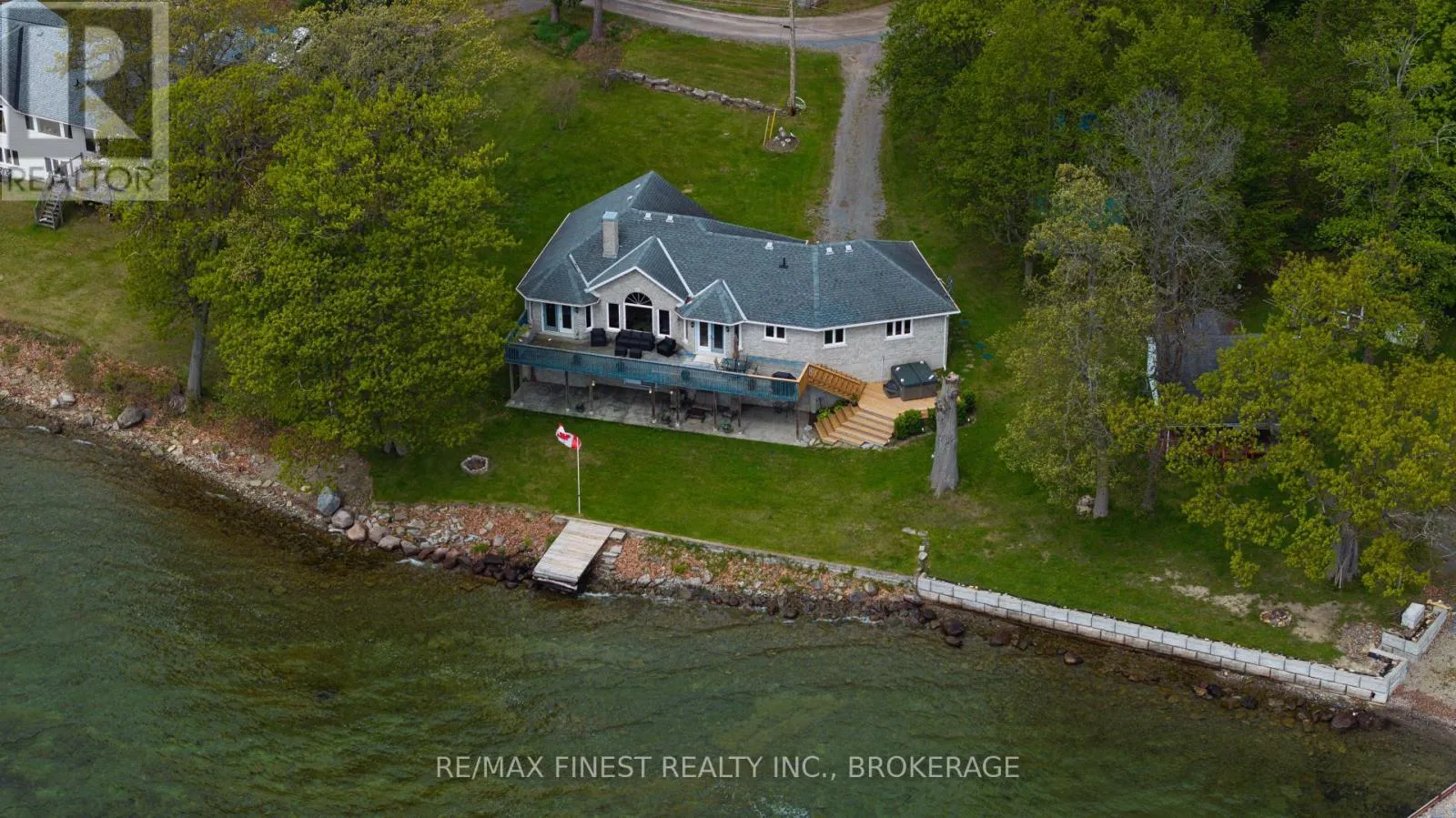 County Road 96 Welcome to 121 Hickory Lane Waterfront Living on Wolfe Island Discover peaceful waterfront living at this exceptional 3-bedroom, 2.5-bathroom home on Wolfe Island. Thoughtfully constructed on an ICF foundation with a full stone exterior, this home combines durability, energy efficiency, and timeless curb appeal in a stunning natural setting. Perched along the southern shores of the St. Lawrence River, the property offers expansive views where you can watch freighters glide by and enjoy tranquil moments by the water. Inside, soaring vaulted ceilings and oversized windows fill the home with natural light and showcase the breathtaking waterfront vistas. The open-concept layout features a finished walkout basement with radiant in-floor heating, offering cozy comfort through all seasons. Step out onto the full-length deck, ideal for entertaining or soaking in the views accessible directly from the primary bedroom, making morning coffee feel like a private retreat. The tiered outdoor living space includes a lower covered patio and a hot tub, surrounded by the serenity of nature. The home also includes an attached garage, a separate detached garage, a large shed, and a charming bunkie, providing versatile space for guests, hobbies, or additional storage. Whether you're relaxing in the hot tub, watching the ships pass by, or hosting friends and family, 121 Hickory Lane offers a rare opportunity to own a beautifully built, turn-key waterfront property in one of the regions most picturesque island settings. (id:27476)
