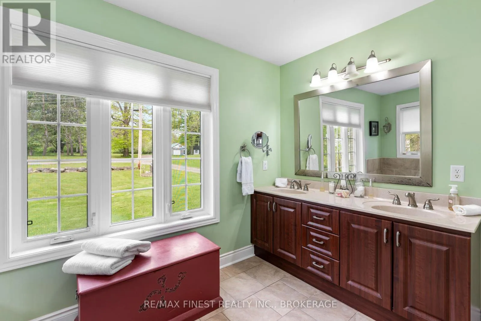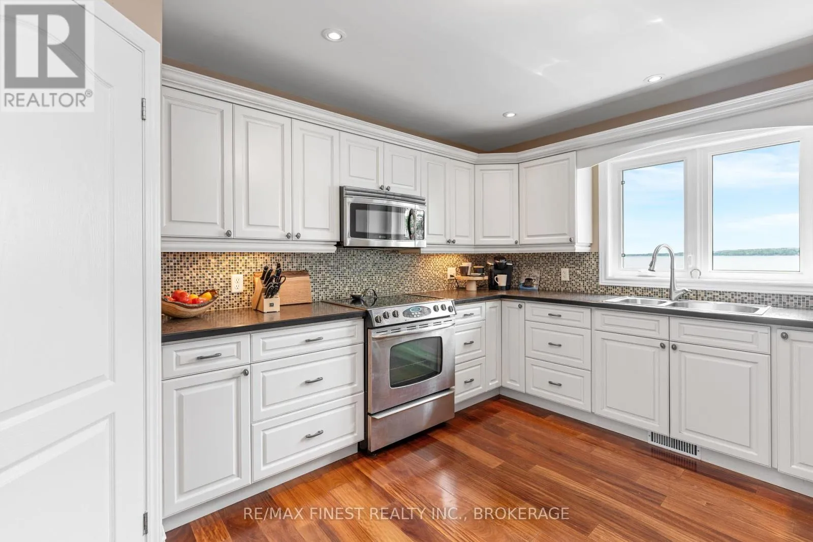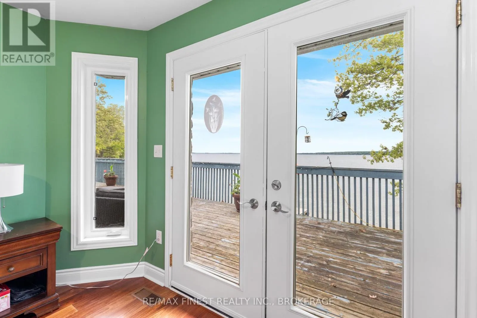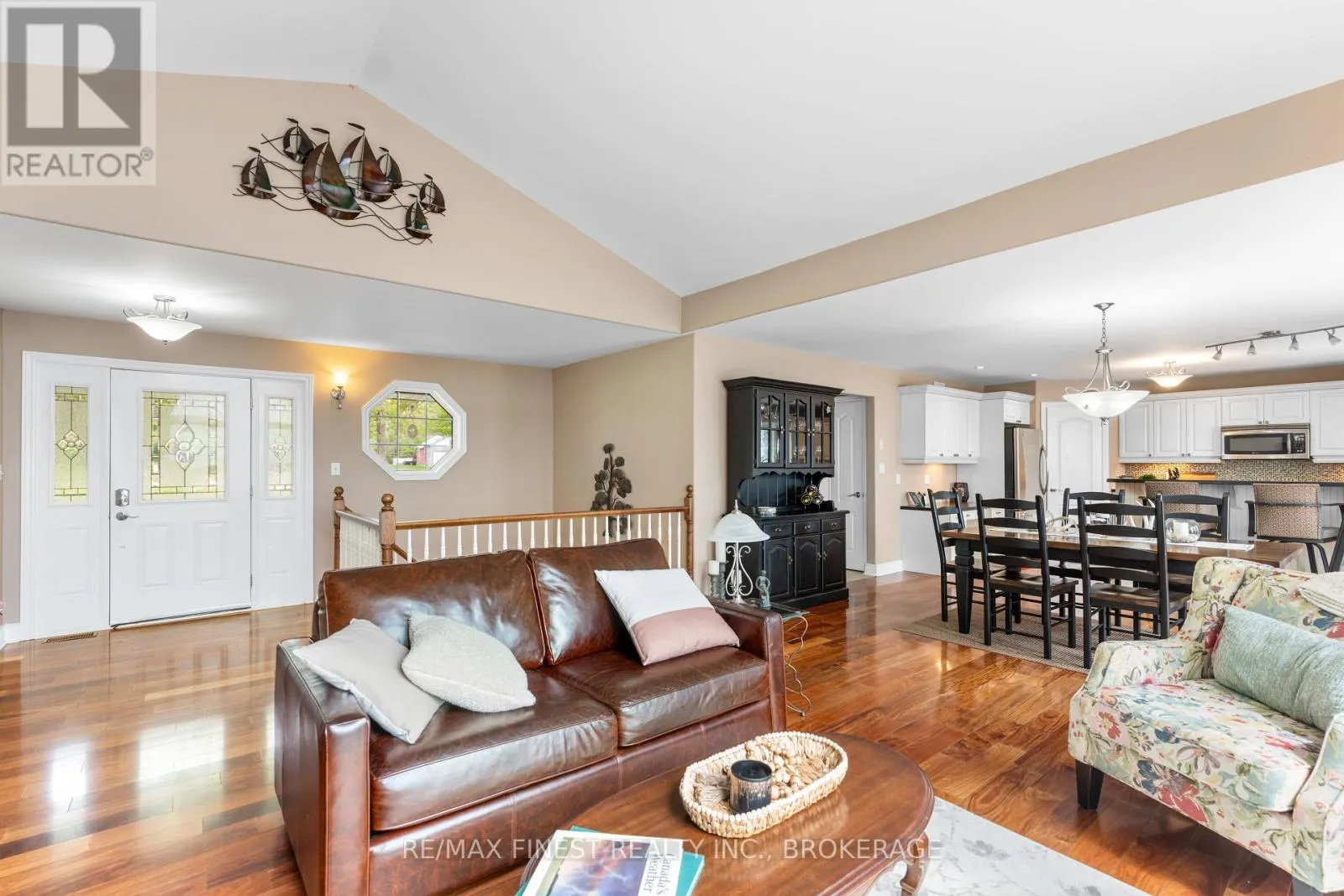 County Road 96 Welcome to 121 Hickory Lane Waterfront Living on Wolfe Island Discover peaceful waterfront living at this exceptional 3-bedroom, 2.5-bathroom home on Wolfe Island. Thoughtfully constructed on an ICF foundation with a full stone exterior, this home combines durability, energy efficiency, and timeless curb appeal in a stunning natural setting. Perched along the southern shores of the St. Lawrence River, the property offers expansive views where you can watch freighters glide by and enjoy tranquil moments by the water. Inside, soaring vaulted ceilings and oversized windows fill the home with natural light and showcase the breathtaking waterfront vistas. The open-concept layout features a finished walkout basement with radiant in-floor heating, offering cozy comfort through all seasons. Step out onto the full-length deck, ideal for entertaining or soaking in the views accessible directly from the primary bedroom, making morning coffee feel like a private retreat. The tiered outdoor living space includes a lower covered patio and a hot tub, surrounded by the serenity of nature. The home also includes an attached garage, a separate detached garage, a large shed, and a charming bunkie, providing versatile space for guests, hobbies, or additional storage. Whether you're relaxing in the hot tub, watching the ships pass by, or hosting friends and family, 121 Hickory Lane offers a rare opportunity to own a beautifully built, turn-key waterfront property in one of the regions most picturesque island settings. (id:27476)