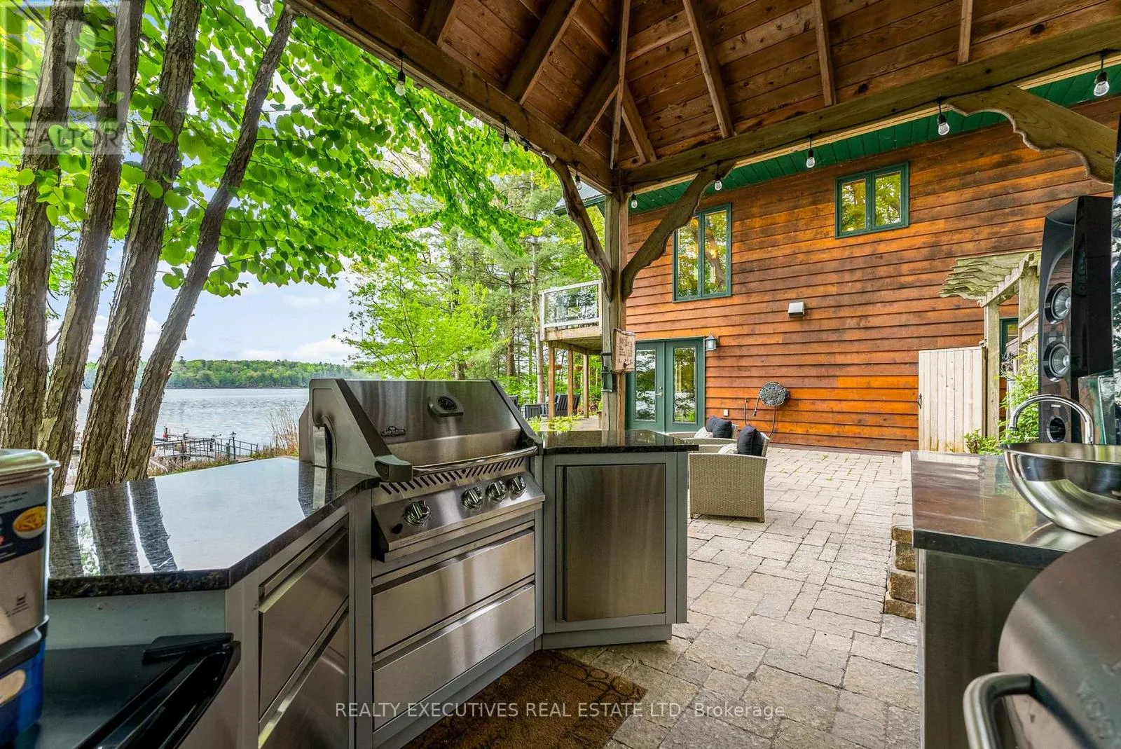 Cross Streets: Skydeck Rd. ** Directions: Highway 137 to Skydeck Rd to Black Snake Lane. Welcome to scenic Hill Island in the heart of the Thousands Islands. Fully Furnished - Executive Lakehouse with year round access by road. One of a kind show stopper backyard oasis, over-looking Lake of the Isles part of the historic St Lawrence Seaway. This home spares no expenses starting with a property that's professionally landscaped featuring many flowers, perennial gardens, river rock, flagstone walkways & driveway, interlock, large rock formations, in-ground heated salt water pool with cascading spa, outdoor kitchen with BBQ, smoker, black stone grill, granite counter tops, gazebo, pool shed, garden shed and outdoor security system. The waterfront offers impeccable views with a permanent floating dock, electric boat lift, and high density polyethylene floating 2 winch system dock for personal watercrafts. A large detached heated garage that accommodates 2 vehicles as well as a second living space that can be used as a games room or additional sleeping quarters. This post & beam home is perfect for large family gatherings with natural hardwood & softwood flooring throughout, open concept kitchen, walk in pantry, granite countertops, stainless steel appliances and all natural wood cabinets. The main level also features a great room with propane fireplace, dining room with cathedral ceilings, a guest bedroom and a 5 pc bathroom with laundry. The second level features a loft, primary bedroom, an additional bedroom/office & 3 pc bathroom. Fully finished walk out basement with beautiful views, plenty of natural lighting, an epic sized family room, wood burning fireplace, an additional bedroom and bathroom perfect for your guests. High speed fibre optic internet for fast & reliable service. Easily located off Highway 137 just before the US border and a short drive to Gananoque along the scenic Thousand Islands Parkway. The area boasts natural beauty, scenic landscapes, and rich cultural history, making it a popular destination for tourism and recreation. (id:27476)