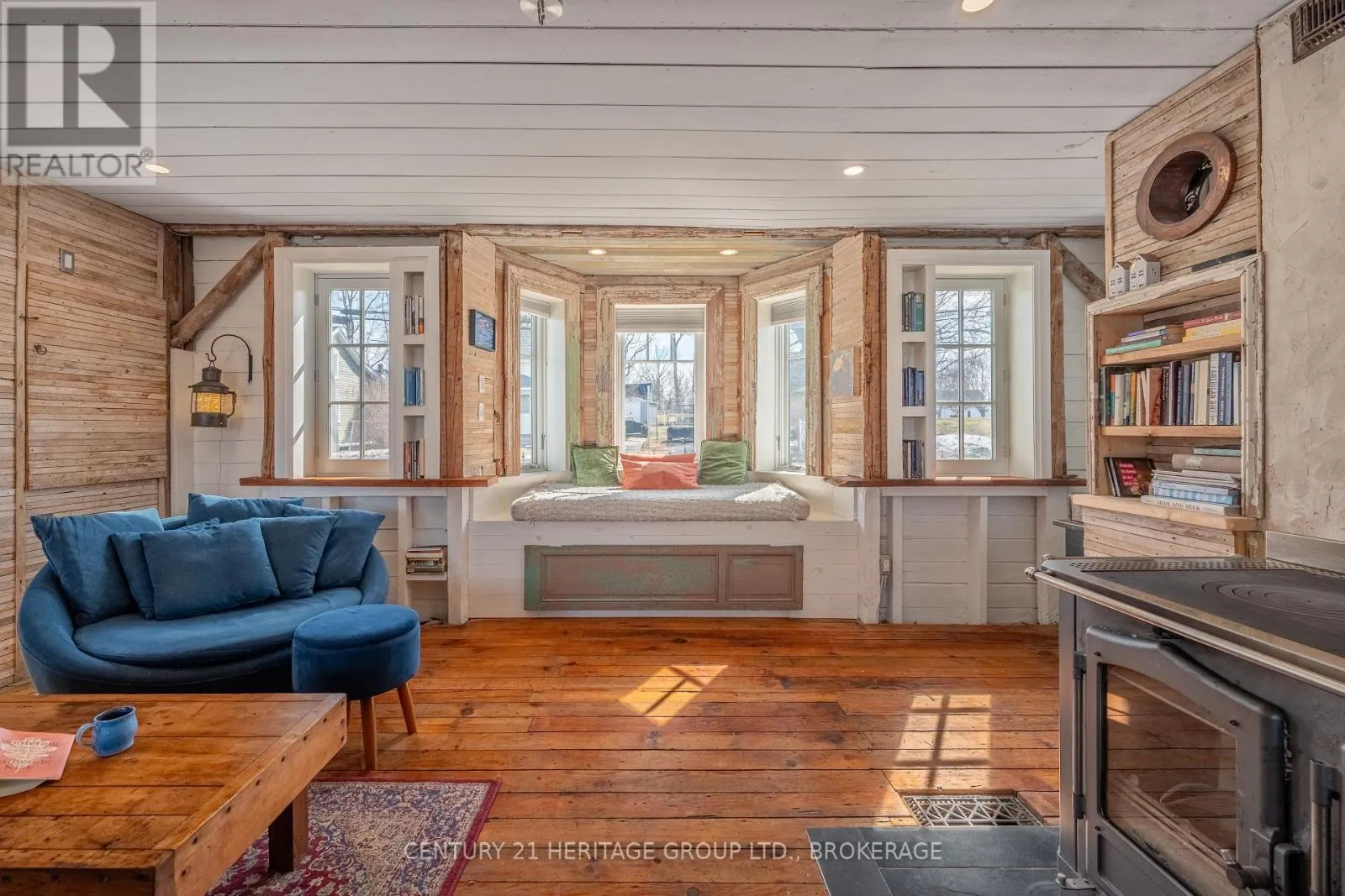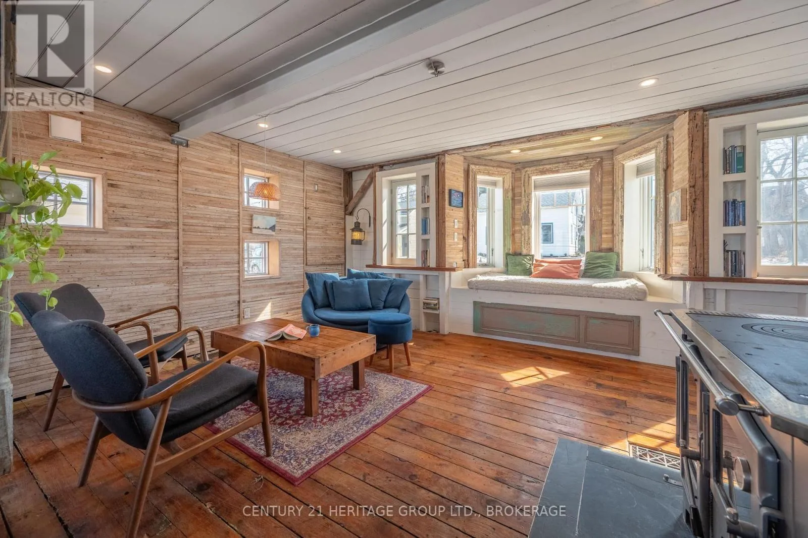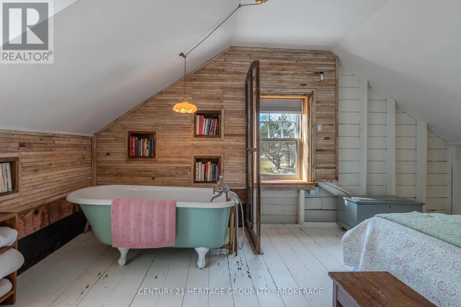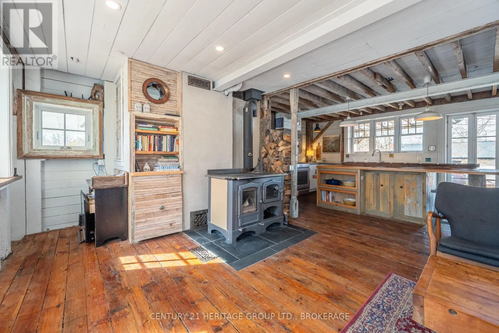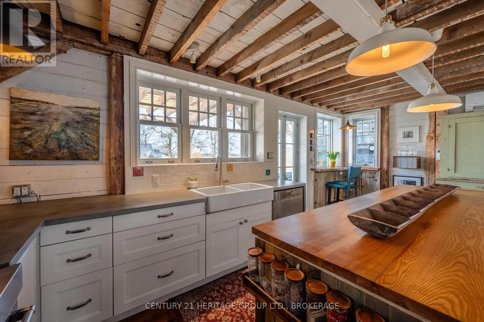 Cross Streets: Wolfe Island 95. ** Directions: Turn right off ferry onto Main St. The Unhurried House is a deeply sustainable 1745 sq. ft. Wolfe Island farmhouse, now at the back end of a meticulous six-year transformation. Used by Retrofit Canada as a case study, original and new materials have been blended in a remarkable and meticulous net-zero-ready, passive standard rebuild. The result lands like a salt-fresh oceanfront cottage married to a post and beam interior, and demonstrates a rare blend of remarkable patinas, wabi-sabi character and exquisite custom detail. A grand entrance leads to a bright, open-concept living space and a chef's kitchen with a 10-foot island and concrete countertops. Upstairs are two bedrooms (each with sinks), a clawfoot tub in the primary bedroom, a heated-floor bathroom, and a spacious loft that can serve as a third bedroom, studio, or creative space. Built under the direction of an energy engineer, this high performance house has a steely focus on both efficiency and aesthetics, the house features R35 continuous exterior insulation, airtight construction, German-engineered HRV ventilation, a rainwater harvesting system, two 12K low-temperature heat pumps, a 560-lb Italian cast iron cookstove, double-glazed LePage wood windows, brand new septic system, a new 12-foot shore well with endless water, and a 200 AMP panel. Phew! (And that's not even mentioning the hand carved wooden sinks with tiny Portuguese brass taps, or the 150-year-old windows installed in creative places). The property offers expansive Lake Ontario views, wraparound porches, a covered pergola with twinkle lights, a greenhouse and raised beds, flagstone walkways and rock walls, and all of it at the heart of a happening, community-minded island village just two blocks from the free 16 minute ferry to downtown Kingston. (id:27476)