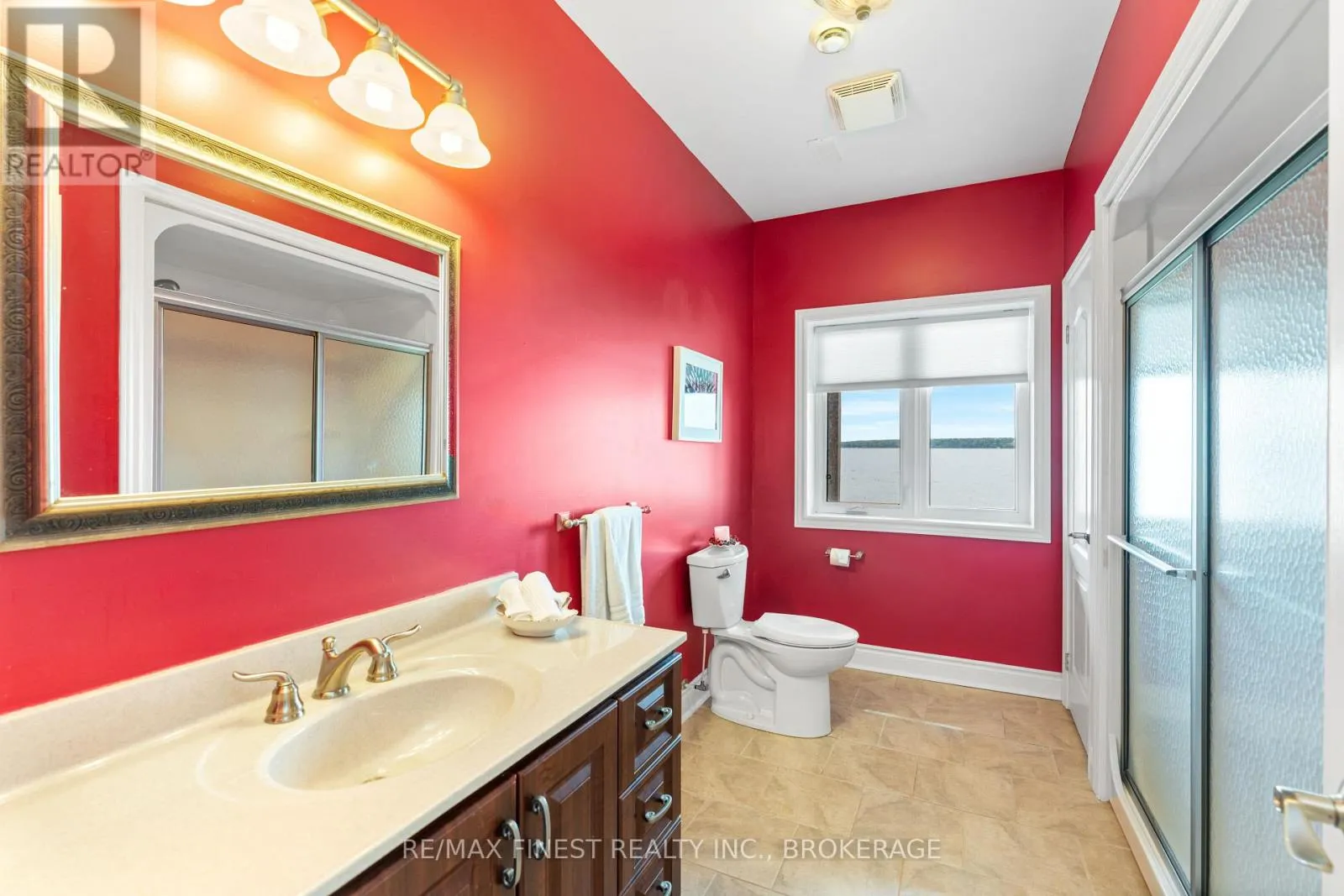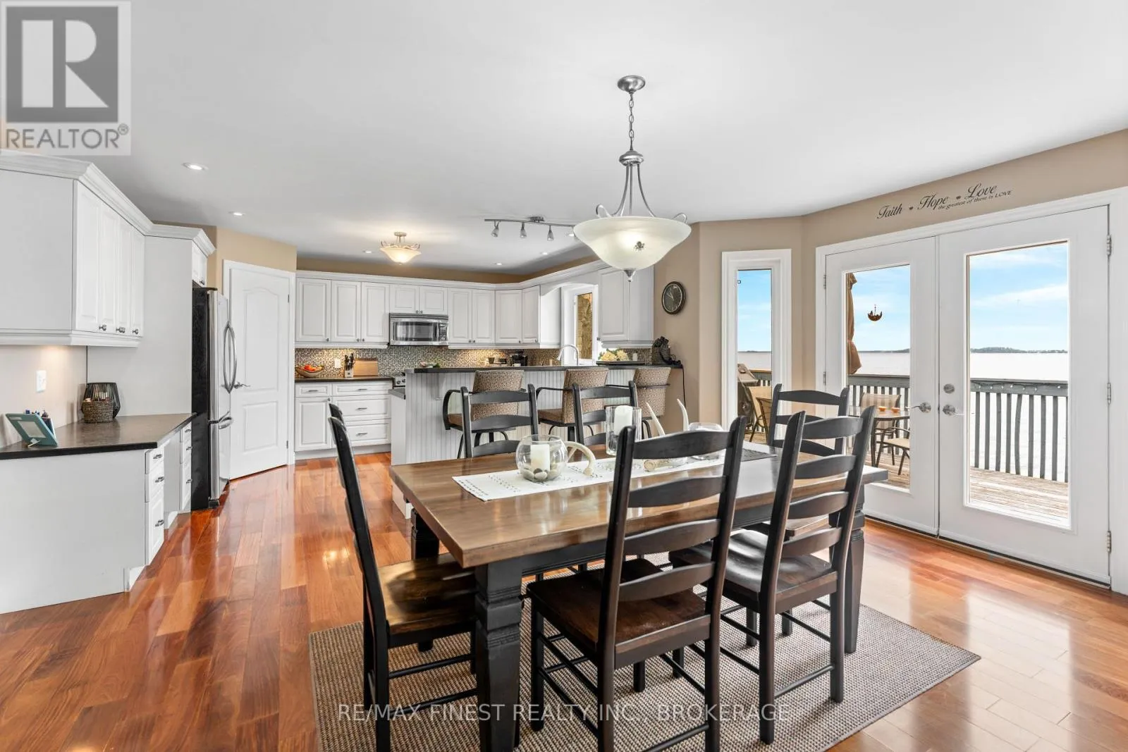 County Road 96 Welcome to 121 Hickory Lane Waterfront Living on Wolfe Island Discover peaceful waterfront living at this exceptional 3-bedroom, 2.5-bathroom home on Wolfe Island. Thoughtfully constructed on an ICF foundation with a full stone exterior, this home combines durability, energy efficiency, and timeless curb appeal in a stunning natural setting. Perched along the southern shores of the St. Lawrence River, the property offers expansive views where you can watch freighters glide by and enjoy tranquil moments by the water. Inside, soaring vaulted ceilings and oversized windows fill the home with natural light and showcase the breathtaking waterfront vistas. The open-concept layout features a finished walkout basement with radiant in-floor heating, offering cozy comfort through all seasons. Step out onto the full-length deck, ideal for entertaining or soaking in the views accessible directly from the primary bedroom, making morning coffee feel like a private retreat. The tiered outdoor living space includes a lower covered patio and a hot tub, surrounded by the serenity of nature. The home also includes an attached garage, a separate detached garage, a large shed, and a charming bunkie, providing versatile space for guests, hobbies, or additional storage. Whether you're relaxing in the hot tub, watching the ships pass by, or hosting friends and family, 121 Hickory Lane offers a rare opportunity to own a beautifully built, turn-key waterfront property in one of the regions most picturesque island settings. (id:27476)