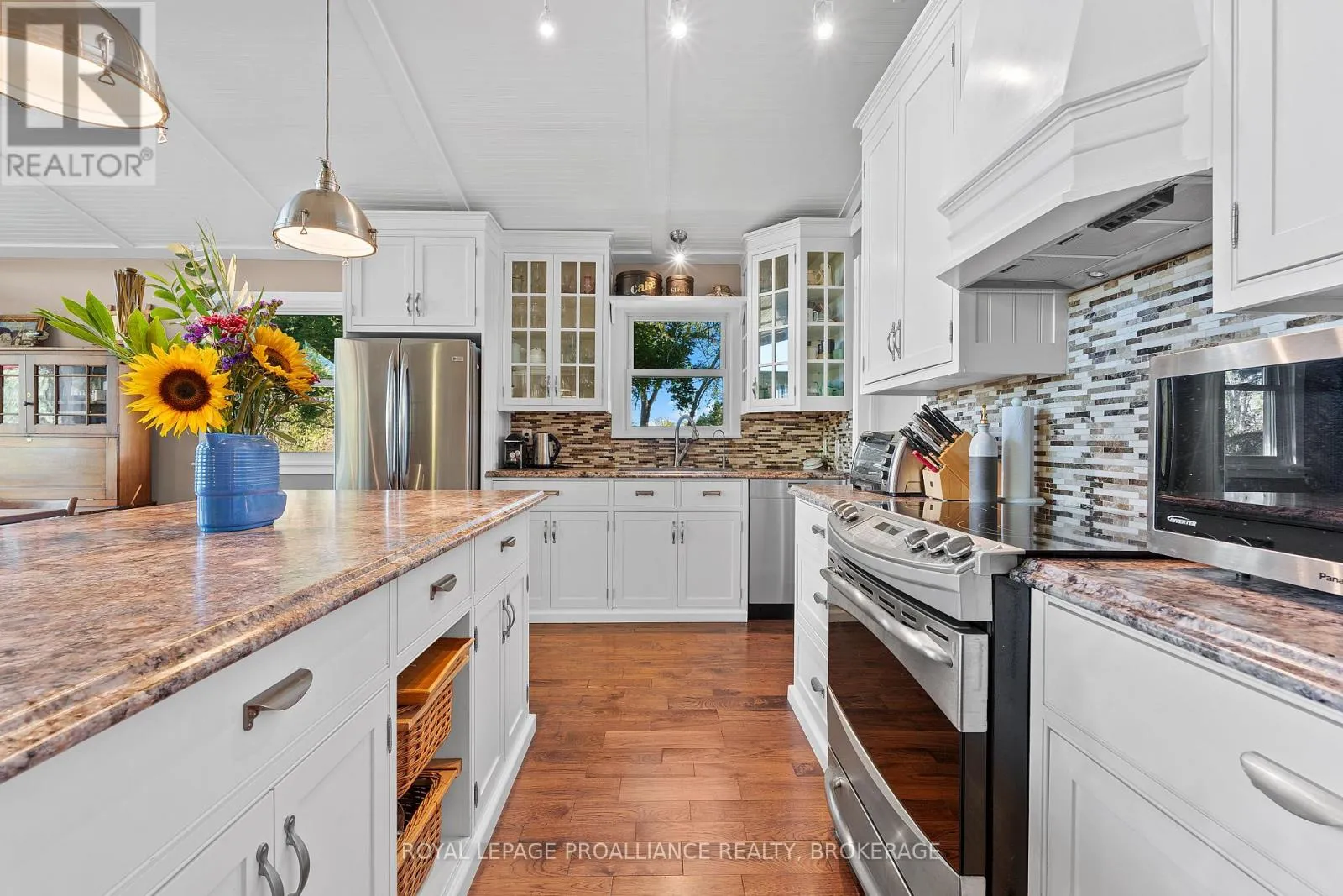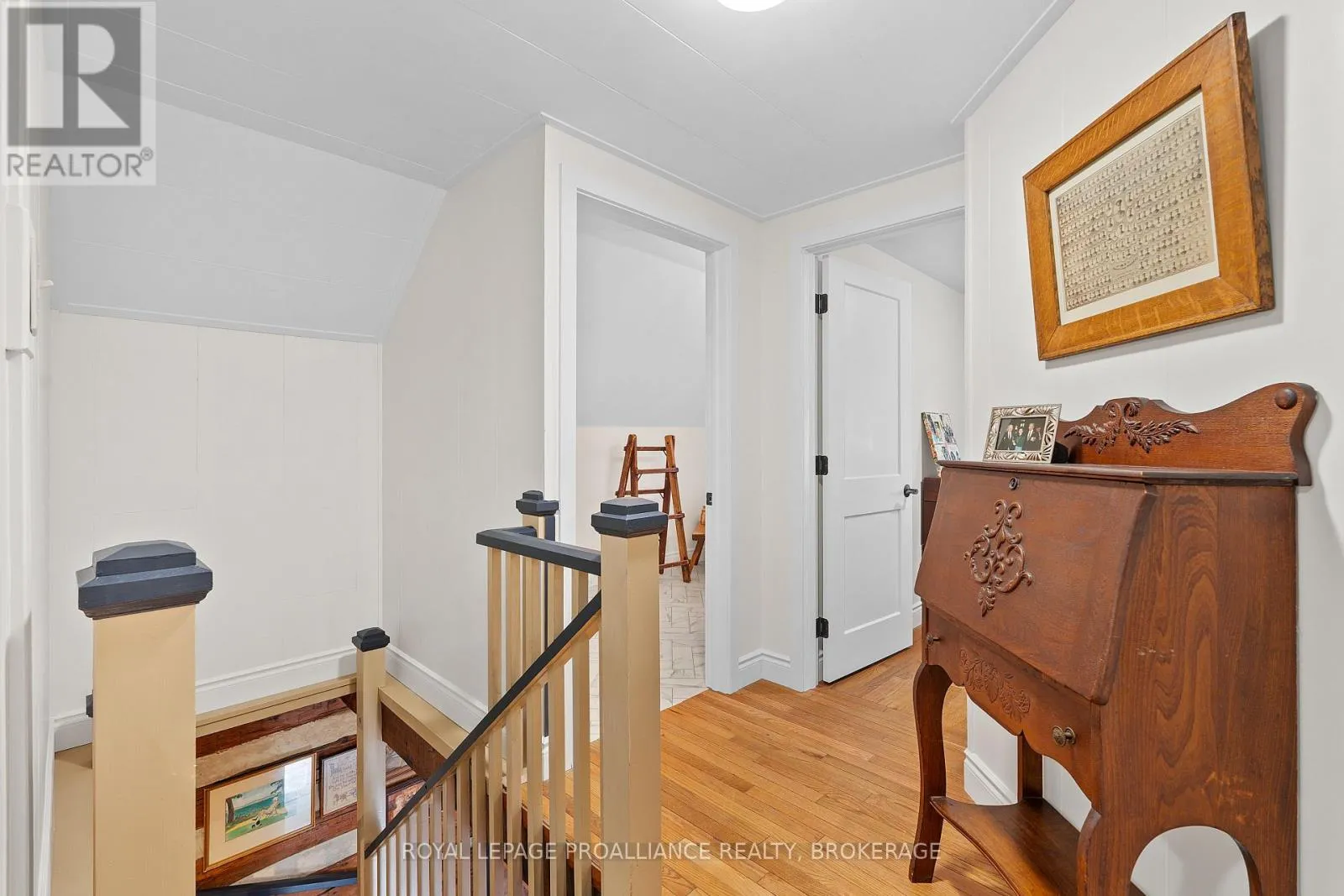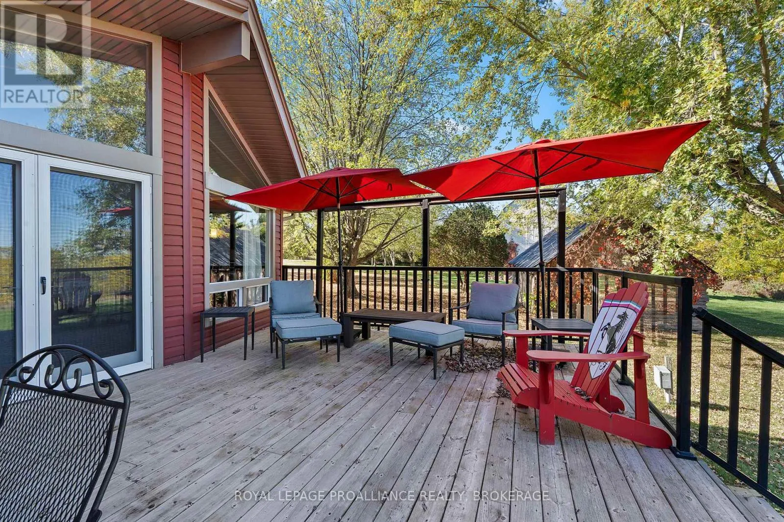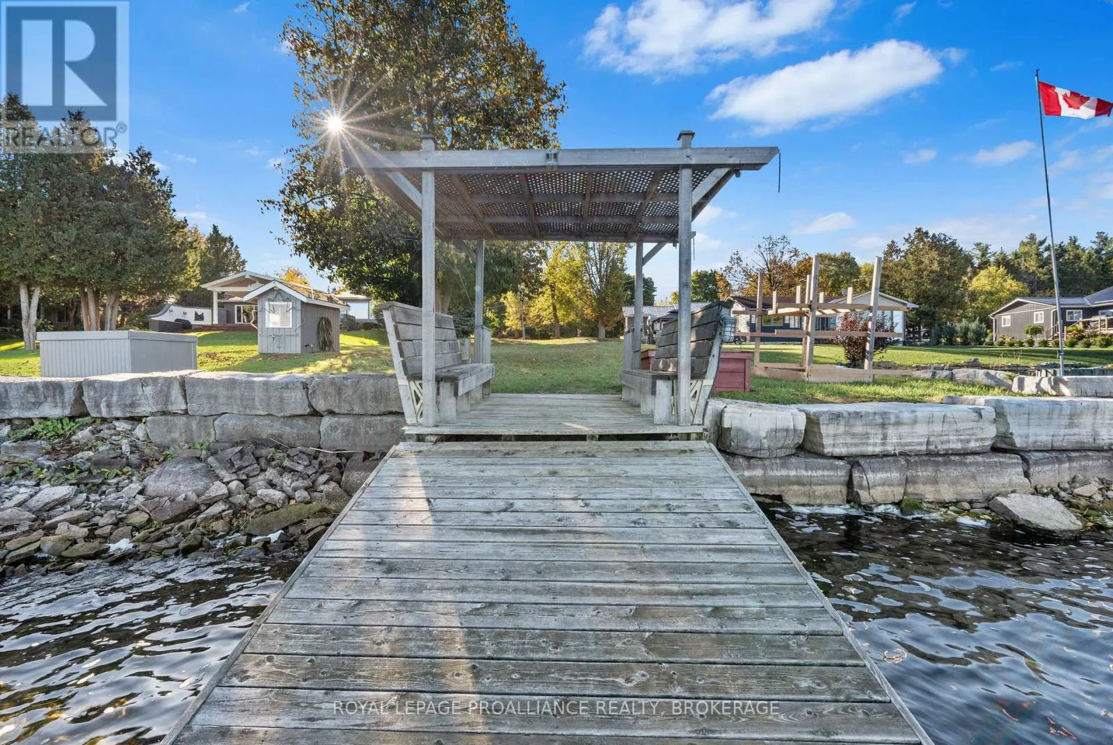 Cross Streets: Howe Island Drive. ** Directions: County Ferry to Howe Island, Straight off Ferry to North Shore Road, Turn Left. Rare offering! St. Lawrence River waterfront with a period home, barn and workshop set on six private acres, all under 900K. One of Howe Island's oldest residences is now offered for sale. This original 19th century hand-hewn square timber log cabin is nestled on 6.48 acres including 48 feet of waterfront on the Bateau Channel of the St. Lawrence River. The expansive grounds include a small pine forest, several early apple trees, limestone outcroppings, lawn areas and fire pit. The original log cabin was dated by the previous owners to be built between1830-1840. In 1972, the foundation was underpinned and a Viceroy addition with full basement was built to take advantage of the view of the river and the grounds. The log cabin hosts a study and dining room on the main floor, and two bedrooms and a new 3-pc bathroom on the upper level. The addition is a fabulous open concept Great Room with vaulted ceiling, custom kitchen and a second 3pc bathroom. The finished basement hosts two more rooms, perhaps a rec room and study, as well as storage room and laundry area. The outbuildings include an expansive barn, driveshed, insulated workshop and bunkie, all with hydro. The waterfront features a floating dock suitable for two boats, and a limestone retaining wall. This piece of paradise has something for everyone, a place to host memorable family events and fabulous river days, yet also a tranquil place of retreat from a busy world, now seeking a new family to continue its history. Out-buildings: Barn (hydro), 10' x 10' bunkie, workshop (hydro, insulated), driveshed(hydro).Waterfront: floating dock, dock pergola, limestone retaining wall. Suitable for docking 24' boat. (id:27476)