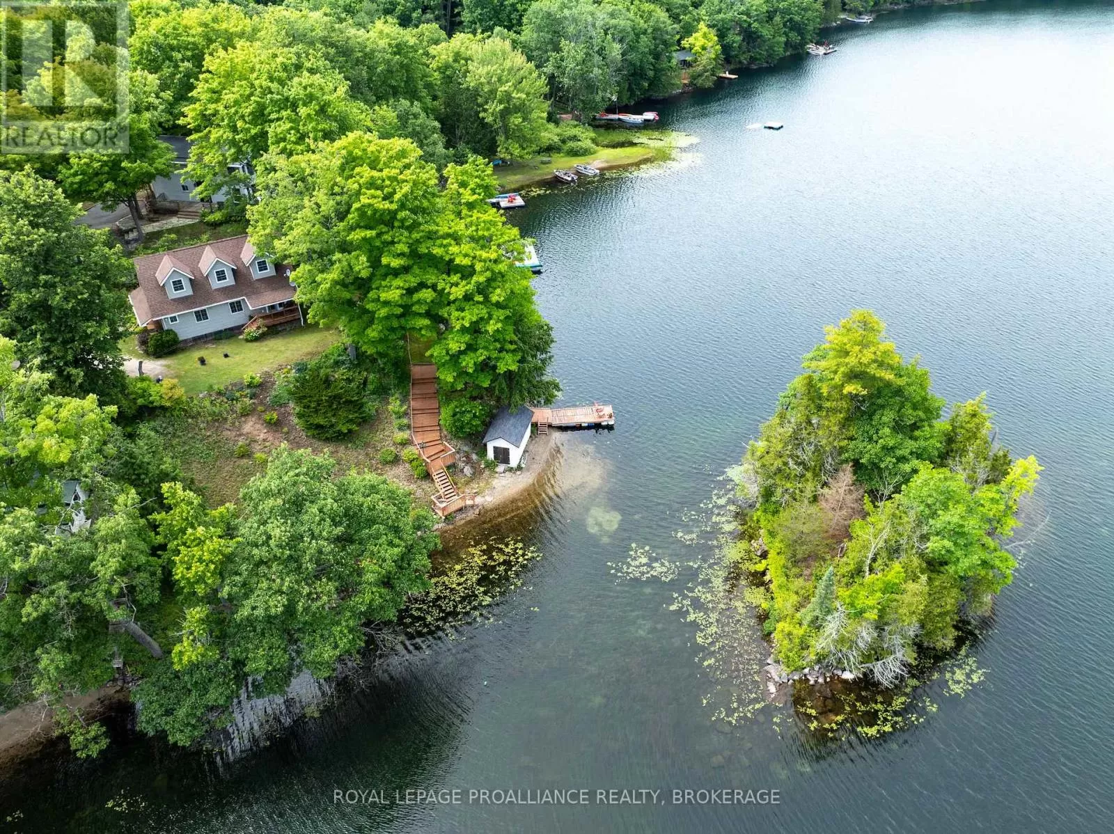 Cross Streets: Westport Road, Henry Lane. ** Directions: Westport Road to Henry Lane. Lakefront living awaits! Sitting nestled in the trees on a hill above beautiful Thirty island lake sits this charming property. A beautifully landscaped yard surrounds this 3-bedroom, 1-bathroom home. The main floor plan consists of a large open living room, dining area with propane stove and attached kitchen. There is also a main floor bedroom and a three-piece bathroom located on this level. Up the stairs, you will find two large bedrooms with dormers overlooking the beautiful yard and waterfront. The internet at this property is great for your work from home potential! The house sits on a spray foam insulated crawl space and has a heated waterline and UV system. Walk through the gardens and down the pathway to a gradual staircase that will take you to the waterfront. Once you are down at the lake, you will find a large storage shed, a sandy beach area and deeper water off the end of the dock. Located right out front is your very own island that you can access by walking from the beach area. Your kids or grand-kids will love this waterfront and be able to explore their island while playing and creating lasting lake memories. Thirty Island Lake is approximately 558 acres in size and has a maximum depth of 105' and an average depth of 37'. Fishing here is fantastic with large and small-mouth bass, black crappie and northern pike. This property is located only 24 minutes from the Village of Westport where you will find most amenities or about 45 minutes to Kingston. This waterfront home or cottage is warm and welcoming and ready for its new owner to make memories at the lake! (id:27476)