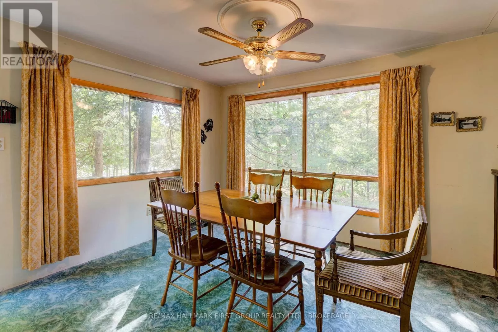 Cross Streets: Twilight Lane. ** Directions: Perth Road to Opinicon Road to Maple Leaf Road to Bill Green Road to Twilight Lane then Right on Tober lane. A Rare Opportunity on Buck Lake The Original Tober CottageWelcome to one of Buck Lakes most treasured gems the iconic Tober Cottage, the namesake of Tober Lane and offered for sale for the very first time. Built in 1973 and lovingly maintained by the same family for generations, this quintessential Canadian Shield retreat is steeped in cottage-country charm and ready for its next chapter.Set on over 2 acres with an astounding 750 feet of private waterfront, this three-bedroom, one-bathroom cottage is perched on a scenic, south-facing point just past the narrows on Buck Lakes south branch. Surrounded by mature trees and granite outcroppings, the views here are simply breathtaking.Inside, youll find 1,000+ sq ft of classic cottage space with a generous living room, separate dining room, full kitchen, and three spacious bedrooms perfect for hosting family and friends.Step outside to discover a charming bunkie with electricity, a dry boathouse with power, a covered deck, and a dock with deep, clean water perfect for swimming and boating. This is cottage life the way it was meant to be private, peaceful, and unforgettable.Whether youre looking to relax, explore, or create new family traditions, this property is a rare find. Legacy cottages like this are seldom offered dont miss your chance to own a piece of Buck Lake history. (id:27476)