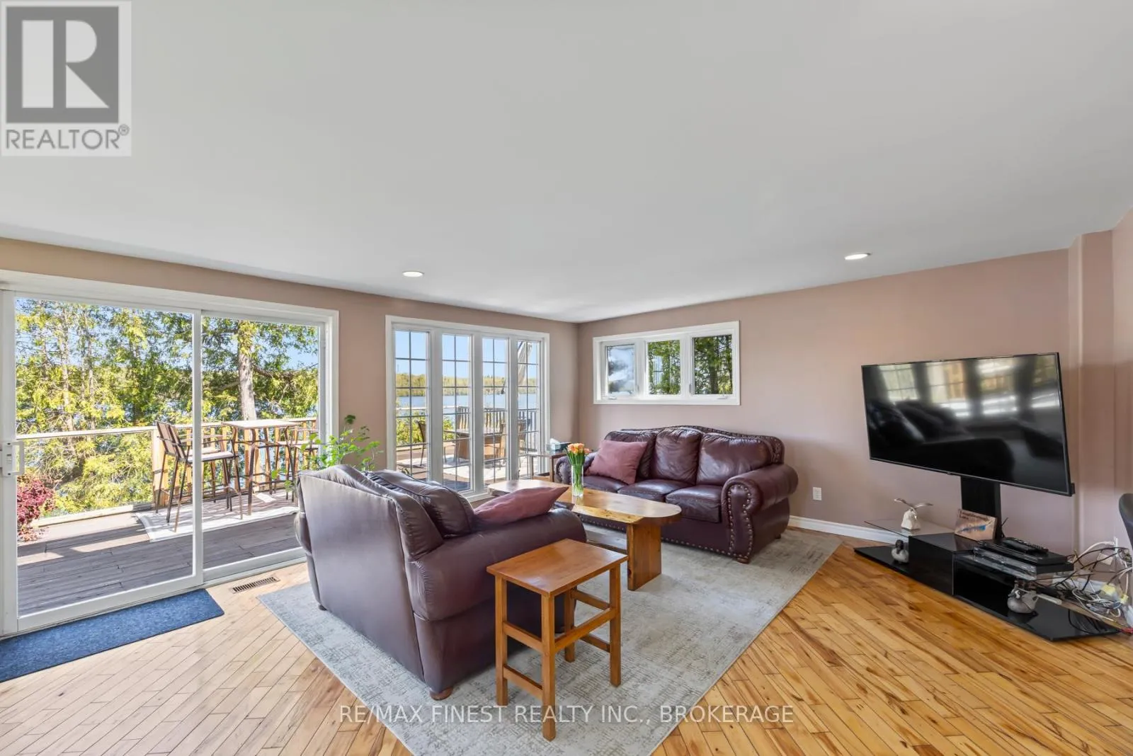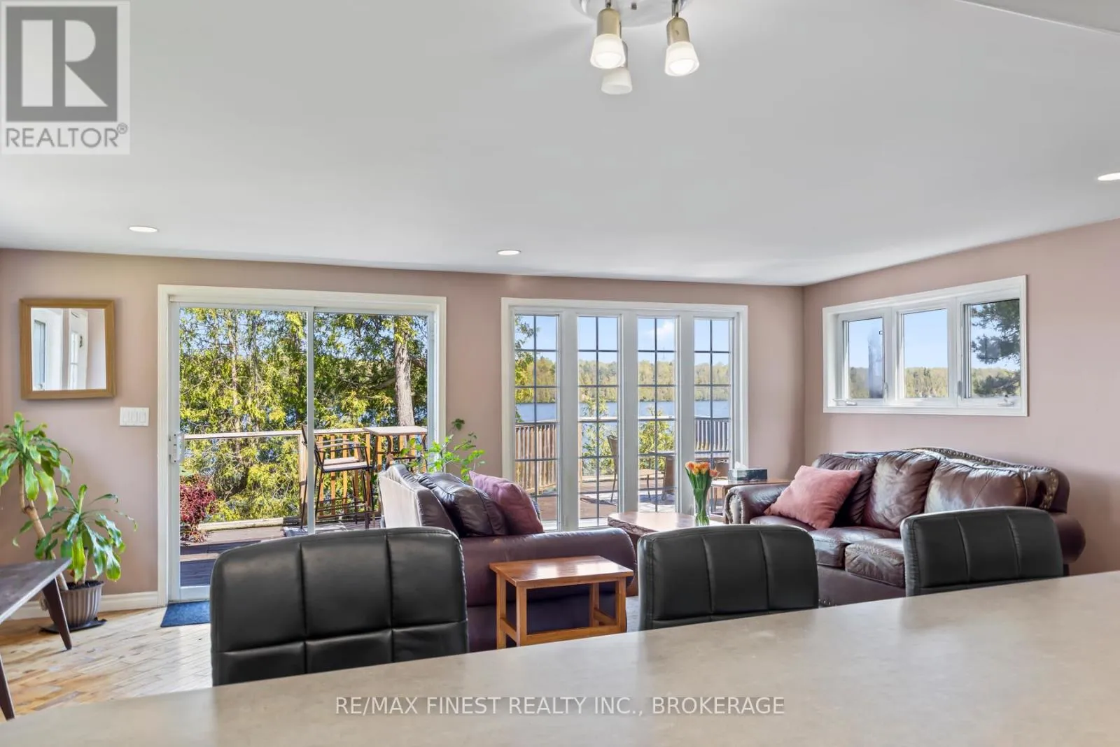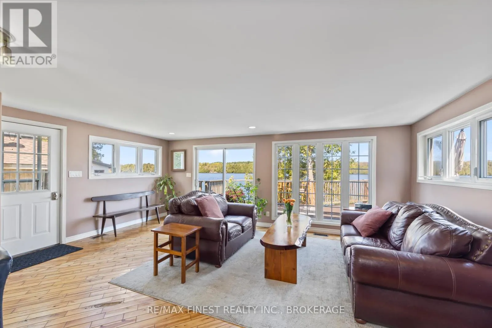Cross Streets: Cedar Ridges Rd. ** Directions: From Silverwood Dr take a left onto Cedar Ridges Dr and then a right on to Heron Ln, property is at the end of Heron Ln. Wake up to breathtaking water views in this charming 4-bedroom, lakefront home nestled on the serene, highly sought after Loughborough Lake. 0nly 15 minutes from the 401, Featuring only 20limestone steps to swim off in deep clear water. Enjoy the lake side sauna, an open-concept living and dining area filled with natural light, Sliding doors lead to a spacious deck overlooking the lake. A lovely space for dining or unwinding while enjoying panoramic views. This home is perfect for entertaining or quiet relaxation. Enjoy year-round activities like boating, fishing, and kayaking. This lake also boasts two restaurants a marina a corner store and many government islands to visit right from your backyard. With modern finishes, this property offers the ultimate blend of comfort, style, and natural beauty. Your lakeside dream home awaits! (id:27476)