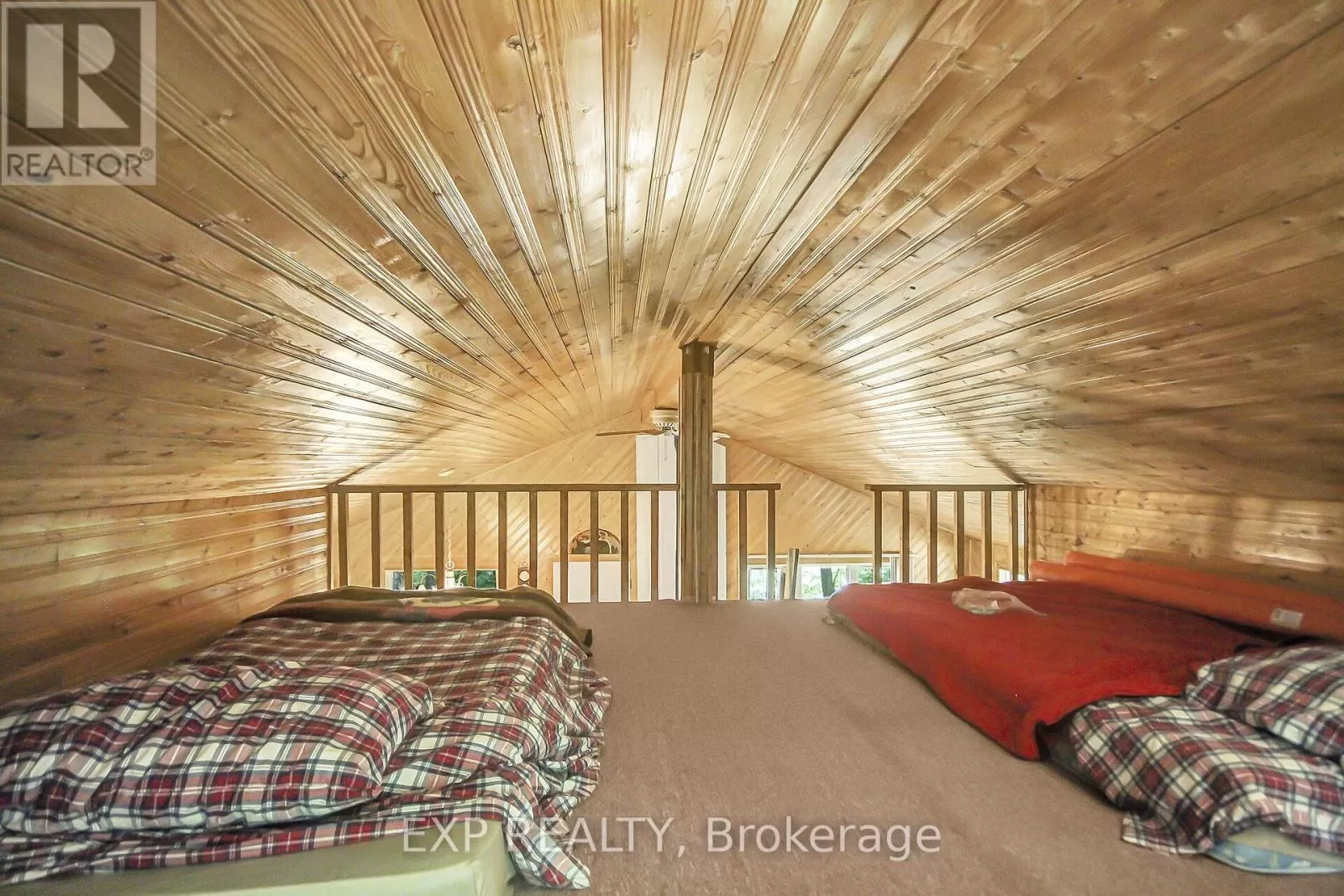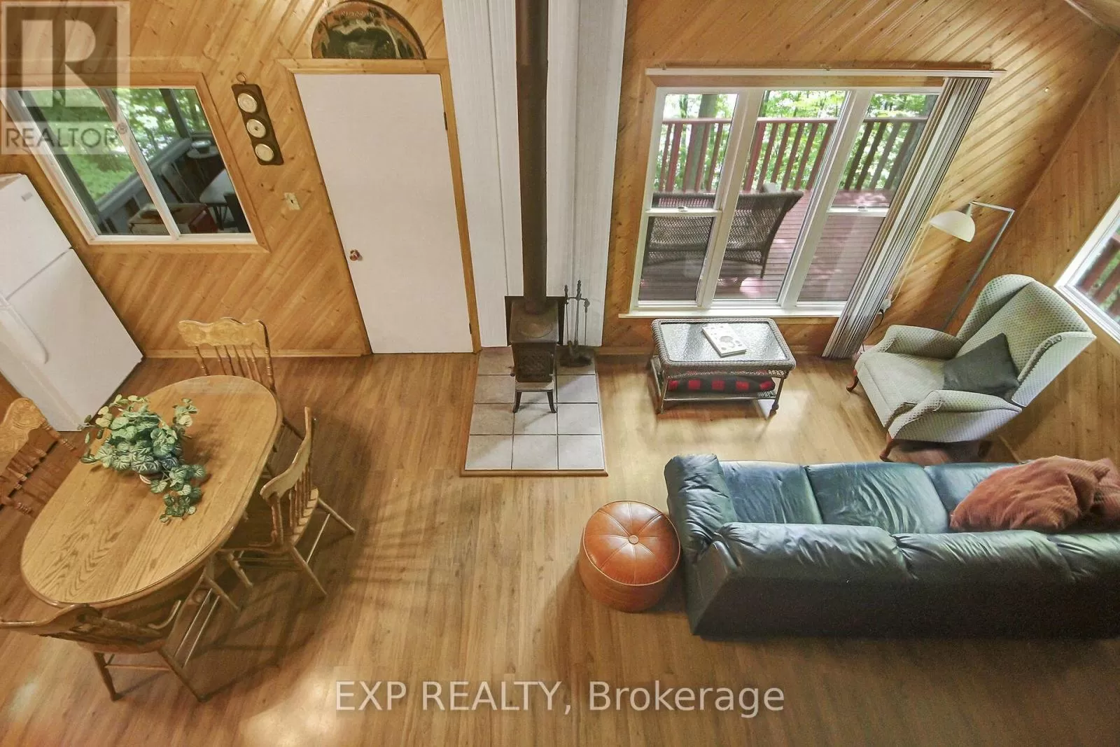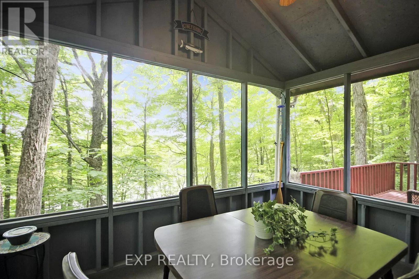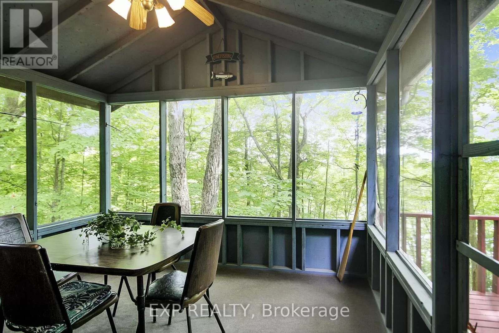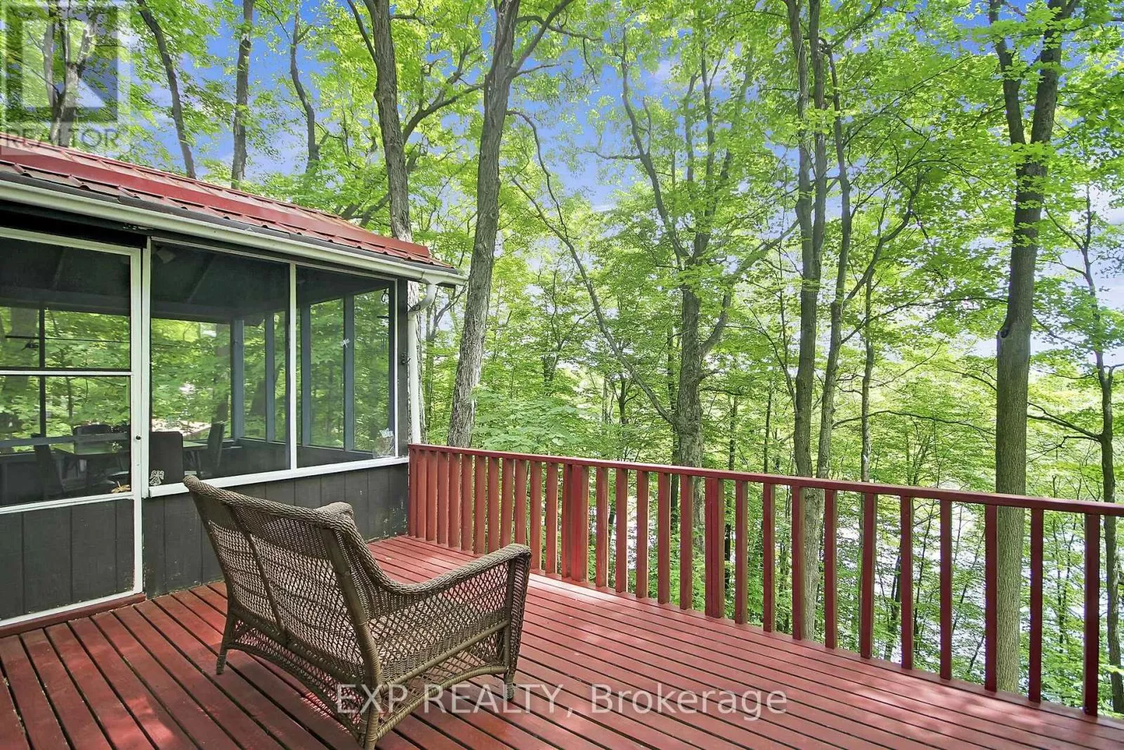 Cross Streets: Crow Lake Road and Badour Road. ** Directions: Crow Lake Rd. west to Badour Rd. south to Fairhaven Lane turn right or west. Charming Bobs Lake Waterfront Cottage: A Hidden Retreat Tucked beneath a canopy of towering oaks & beech trees, this enchanting cottage setting offers a true escape on the shores of one of Eastern Ontario's largest, lakes. Located an hour from Kingston and 1.5 hr. from Ottawa. It's an easy commute for weekend. The property carries a history of a previous mica exploration, the glimmering flakes are still visible in the forest floor. Now a more than 1.5 acres of secluded cottage heaven on located on a large rectangle with the cottage in the centre. A winding drive through the mature trees brings you to a spacious parking area ideal for your future garage or additional parking. You're welcomed by a cheerful red steel-roof building. Step out on the deck & take in the sweeping panorama of the lake, crystal clear waters framed by forest, untouched & serene. There is lots space between neighbours for privacy . Inside, rustic meets cozy. Vaulted ceilings & large newer windows bathe the open-concept kitchen with natural light. Two bedrooms plus an airy loft add room for guests or growing families, while the Jotul 910 wood stove cheers up autumn nights. The screened-in porch overlooks 93 feet of private shoreline ideal for summer dining, games, or evening glass of wine. Enjoy an outdoor bonfire roasting marshmallows with the kids. A newly terraced staircase leads to year round floating docks, perfect for boating, swimming, paddling, or simply soaking in the view. Great Bass fishing! The secluded south facing bay offers rare quiet, with minimal cross boat traffic. Modern updates include newer electrical (100-amp panel), a recently pumped septic, 2025. Offered turn key, fully furnished, with appliances as viewed. This getaway is ready for year-round use; ask for details. Just steps to nature & miles from stress, this is more than a cottage. Ideal for for the occasional cottage rental to pay the taxes. Its a story waiting for you. Hurry! (id:27476)