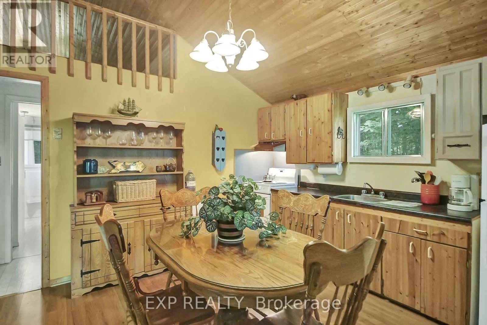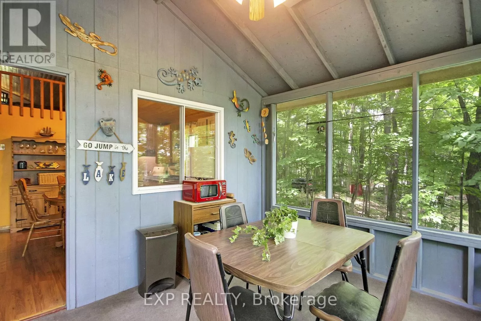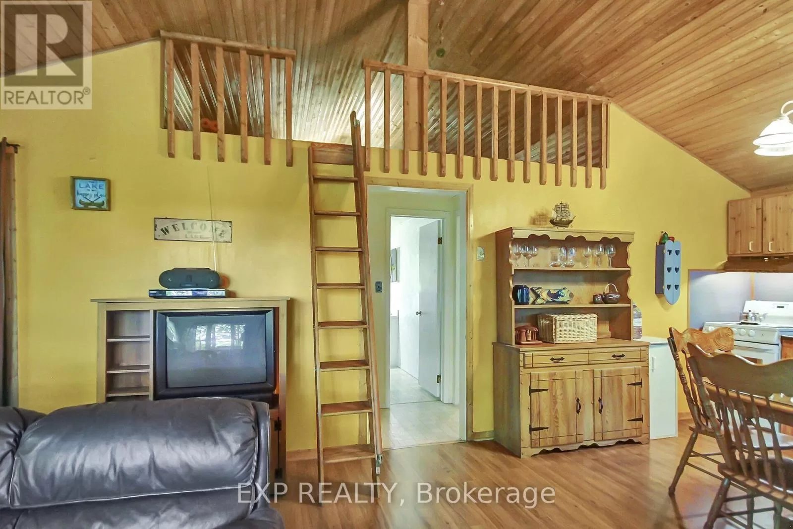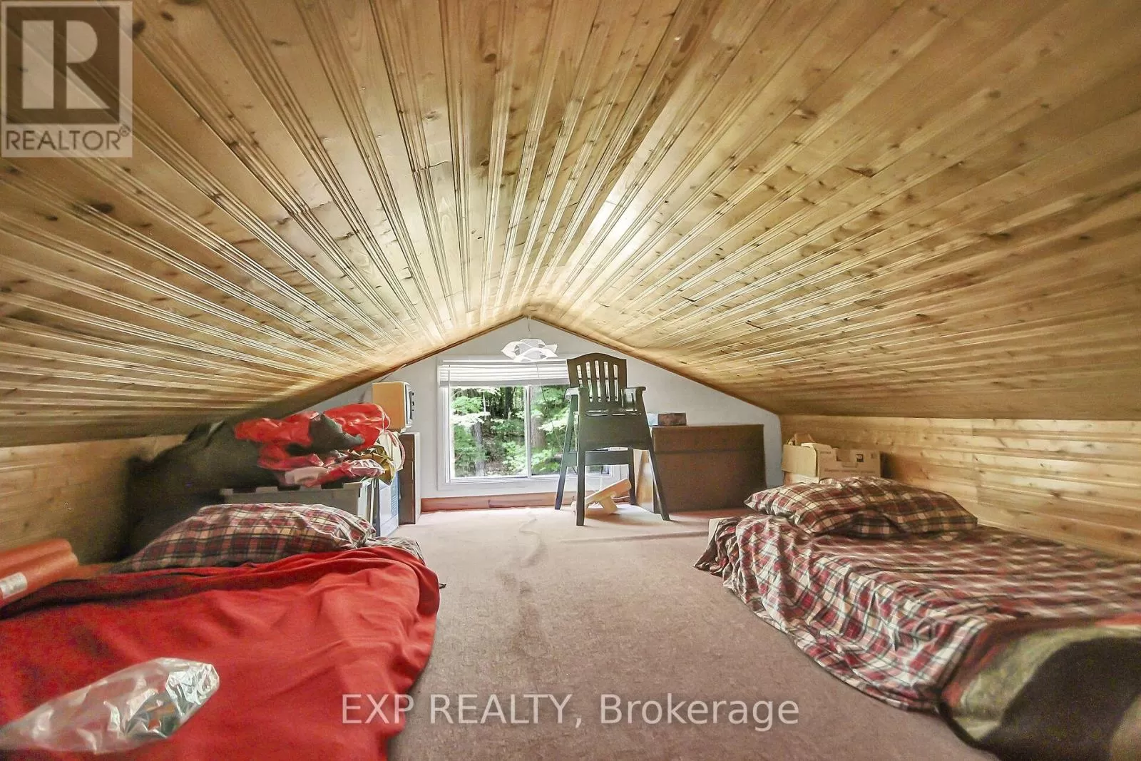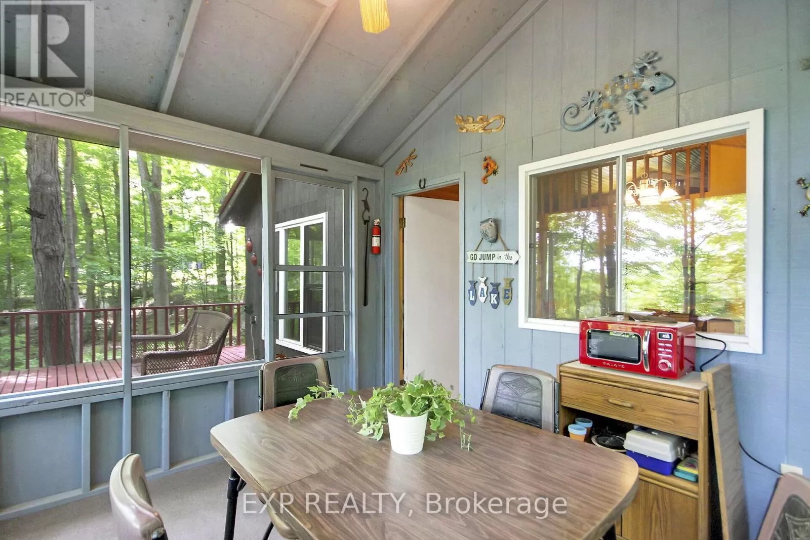 Cross Streets: Crow Lake Road and Badour Road. ** Directions: Crow Lake Rd. west to Badour Rd. south to Fairhaven Lane turn right or west. Charming Bobs Lake Waterfront Cottage: A Hidden Retreat Tucked beneath a canopy of towering oaks & beech trees, this enchanting cottage setting offers a true escape on the shores of one of Eastern Ontario's largest, lakes. Located an hour from Kingston and 1.5 hr. from Ottawa. It's an easy commute for weekend. The property carries a history of a previous mica exploration, the glimmering flakes are still visible in the forest floor. Now a more than 1.5 acres of secluded cottage heaven on located on a large rectangle with the cottage in the centre. A winding drive through the mature trees brings you to a spacious parking area ideal for your future garage or additional parking. You're welcomed by a cheerful red steel-roof building. Step out on the deck & take in the sweeping panorama of the lake, crystal clear waters framed by forest, untouched & serene. There is lots space between neighbours for privacy . Inside, rustic meets cozy. Vaulted ceilings & large newer windows bathe the open-concept kitchen with natural light. Two bedrooms plus an airy loft add room for guests or growing families, while the Jotul 910 wood stove cheers up autumn nights. The screened-in porch overlooks 93 feet of private shoreline ideal for summer dining, games, or evening glass of wine. Enjoy an outdoor bonfire roasting marshmallows with the kids. A newly terraced staircase leads to year round floating docks, perfect for boating, swimming, paddling, or simply soaking in the view. Great Bass fishing! The secluded south facing bay offers rare quiet, with minimal cross boat traffic. Modern updates include newer electrical (100-amp panel), a recently pumped septic, 2025. Offered turn key, fully furnished, with appliances as viewed. This getaway is ready for year-round use; ask for details. Just steps to nature & miles from stress, this is more than a cottage. Ideal for for the occasional cottage rental to pay the taxes. Its a story waiting for you. Hurry! (id:27476)
