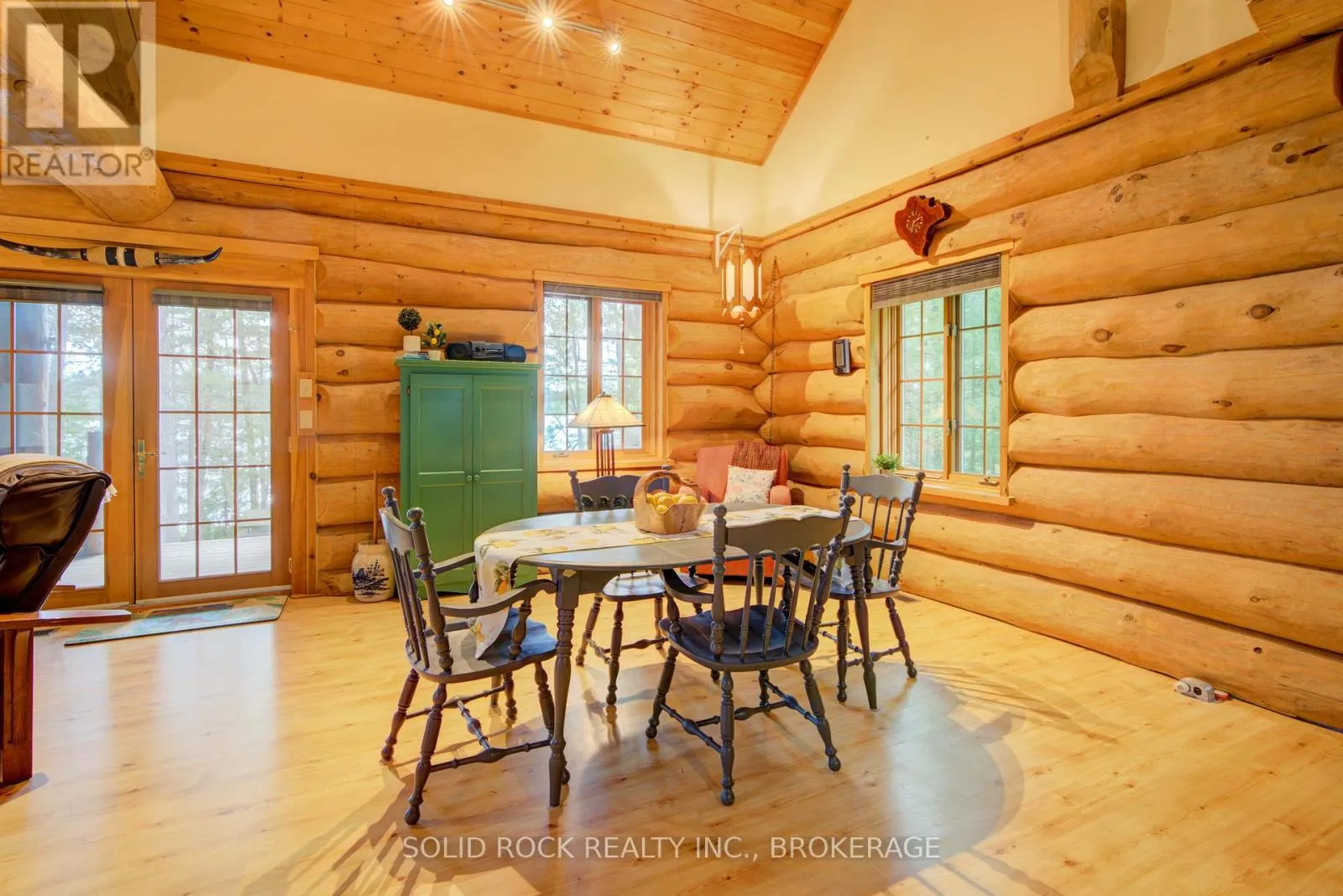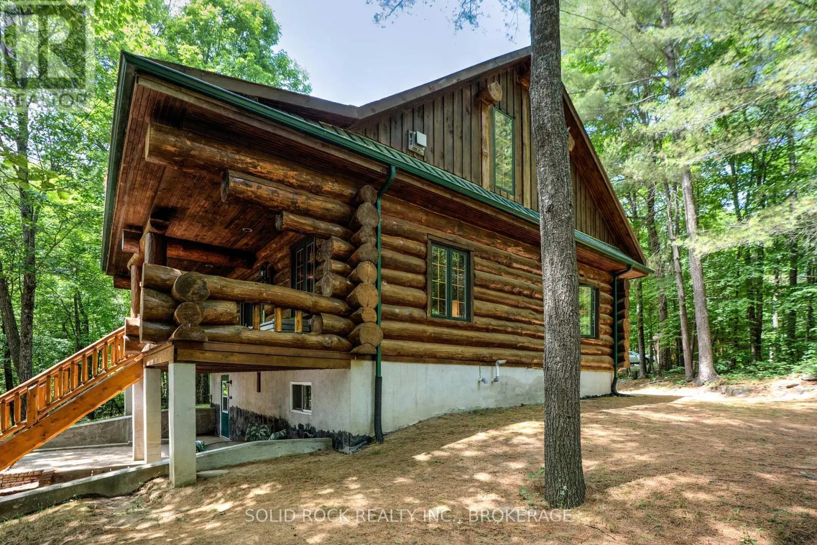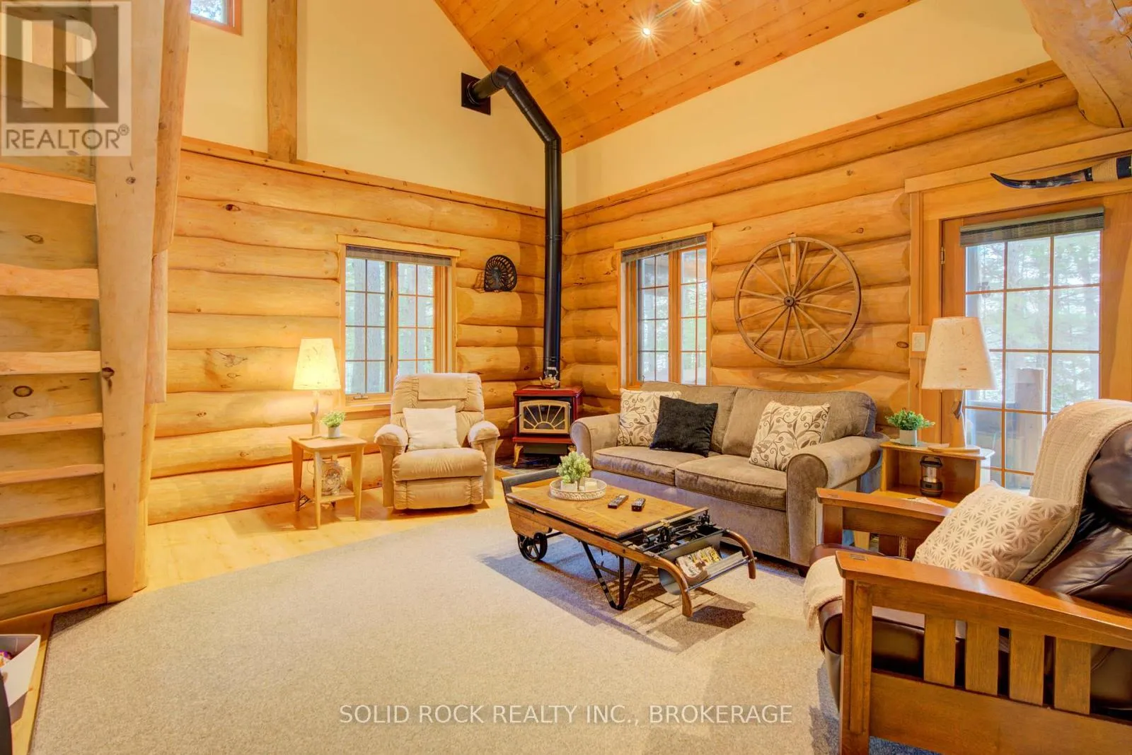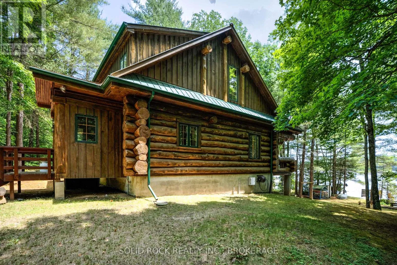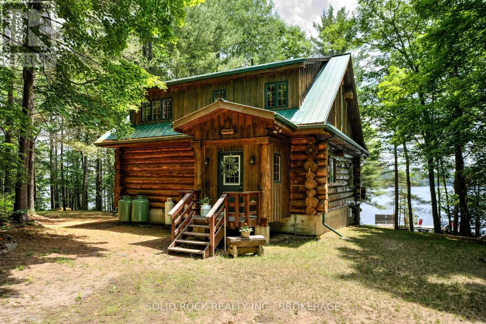 Cross Streets: Kashwakamak Lake Rd. ** Directions: North on Highway 38, left on Highway 37, right on Henderson Road, right on KASHWAKAMAK Lake Lane for approximately 5 km right on GULL Lake Estates Lane for approximately 5 km fire # 2091 is on the left. Welcome to your dream getaway on the tranquil shores of beautiful, clean, Big Gull Lake. This meticulously crafted 3-bedroom, 2 full bathroom, full scribe, pine log/board & batten, winterized home, (with a metal roof) built in 1999, sits on a private 1.49-acre lot with over 200 feet of natural shoreline, offering peace, privacy and endless waterfront enjoyment. The one of a kind home features warm wood finishes (nine logs high then its drywall ) with an inviting open-concept layout, large windows that invite the natural light in and breathtaking views of the Lake. The main living space is perfect for relaxing or entertaining with the primary bedroom and main floor bathroom located right off the family room. The modern kitchen adds a " punch of the past" with the old fashion look of the cast iron wood burning stove, but with the modern convenience of electricity! Climb the custom built log stairs to the 2 bedrooms and second full bathroom- all overlooking the main floor with a view of the incredible architecture of the interior of the home. The lower level is reached by outside entry at the bottom level - this is where you will find the laundry area, utility room and additional storage. There is a detached, double car garage/workshop (with a metal roof) equipped with 200 amp service, ideal for storing toys, tackling projects, or creating a hobby space. Phenomenal fishing of northern pike, walleye and largemouth bass. Whether you're boating, swimming, or simply soaking in the quiet from your deck, every part of this property is designed for lakeside living at its best. This is more than just a cottage, it's a lifestyle. Whether you're looking for a year-round home or a seasonal escape, this Big Gull Lake gem is ready to welcome you. Don't miss the opportunity to own your own piece of paradise! Located 3.5hrs east of Toronto, 2.5hrs West of Ottawa & 2hrs north of Kingston. PLEASE NOTE: fire/civic address is 2091 Gull Lake Estates Lane. (id:27476)