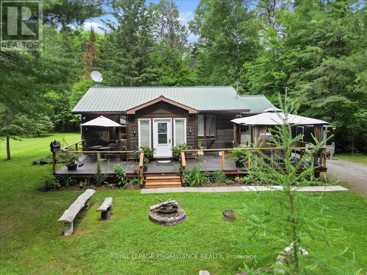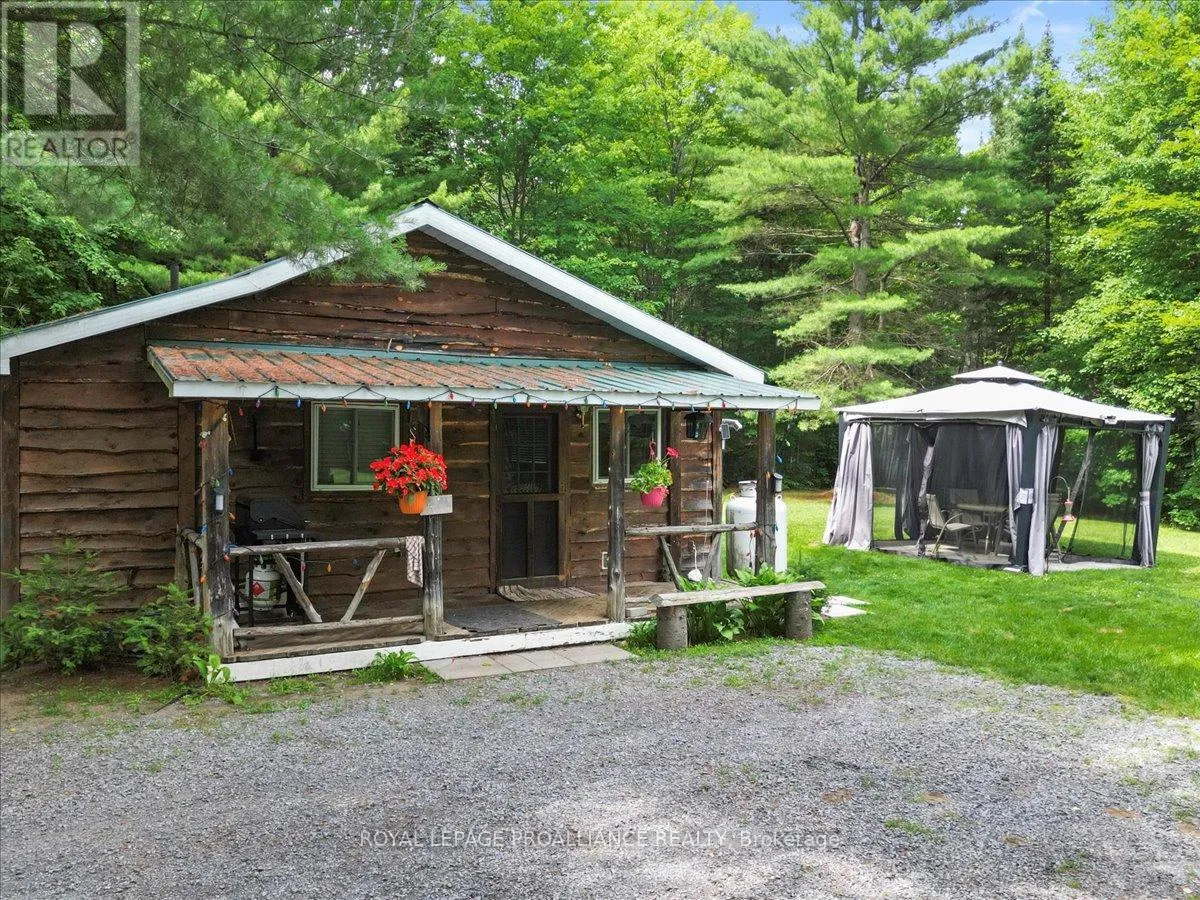 Cross Streets: Highway 7 & Highway 41. ** Directions: Take Hwy 7 to Hwy 41 North through Northbrook, Right onto Harlowe Road. Have you ever gone camping in a Provincial Park and thought Oh my goodness I could LIVE here??? That is what living at this property would feel like every day, with a few differences: 1. Ultimate Privacy. 2. No need to tent it when you have 2 cozy cabinlike homes + a bunkie on the property! AND you will love the miles of manicured walking trails with beautiful rest stops and vistas to enjoy on your hike or while cross-country skiing! Tucked away in a serene woodland setting, this 26-acre property offers a peaceful escape surrounded by nature. Wander along winding trails beneath mature trees, take in quiet pond views, and enjoy the sense of seclusion that only a forested retreat can provide. Whether you're seeking a place to unwind, explore, or create a multi-purpose homestead, this property delivers space, flexibility, and privacy in equal measure. The main residence is warm and inviting, with a functional layout that includes a generous mudroom, main floor laundry, and access to a large back deck, ideal for outdoor dining or quiet evenings under the stars. A second, self-contained dwelling on-site has its own hydro service, water source, and septic system. Set up as a one-bedroom unit, it could easily be adapted to include a second bedroom, currently rented as a long-term rental for $1,800 per month plus hydro. Also on the property is a detached outbuilding with heat, hydro, and a 2-piece bathroom. It is currently used as a hair salon and workshop, perfect for creative projects or a home-based business, but it could also make a great bunkie for guests. With two wells, two septic systems, and frontage on a year-round road, the property is both practical and full of potential. There's even the possibility for future severance of the land. Located in the heart of the Land O Lakes region, this is a rare opportunity to enjoy quiet country living with space to grow and explore. (id:27476)
