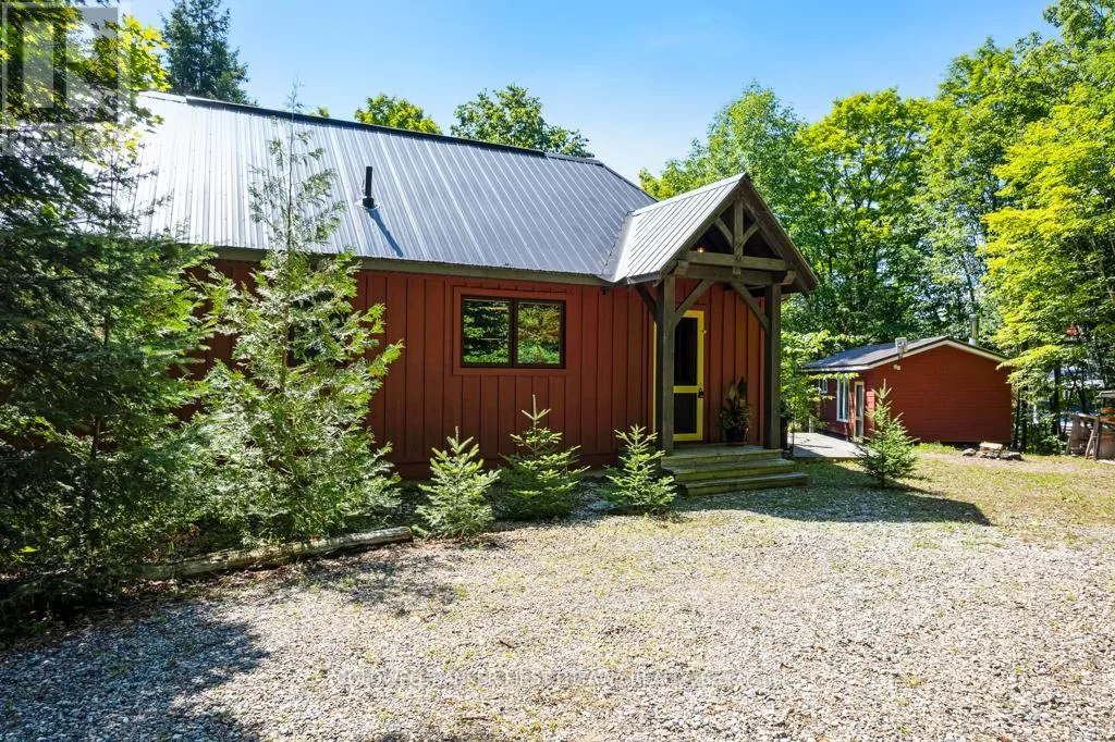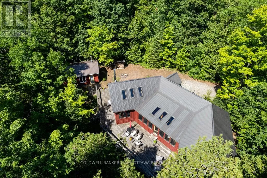 Cross Streets: North Shore Estates Lane & Arcol Rd. ** Directions: Hwy 509 to Canonto Rd to Arcol Rd to North Shore Estates Lane. Set on 0.64 acres along the pristine northern shore of Palmerston Lake, this well-built 3-season home offers comfort, charm, and the potential for year-round use. Constructed in 2007 and meticulously maintained ever since, the cottage sits on a walkout foundation and was built to a standard that makes future conversion to four-season living straightforward - just add insulation and drywall. With three bedrooms and one full bath in the main cottage, plus a separate one-bedroom bunkie with a composting toilet, there is plenty of space for family and guests. The open-concept kitchen, dining, and living area is perfect for gathering, while the screened-in porch provides a peaceful retreat on rainy days. The lower-level walkout remains unfinished, offering flexible space for storage or future living areas.Outside, an oversized deck looks out through the forest to the water below. Two docks and a diving platform invite long summer days in the deep, clean water that makes Palmerston one of the most sought-after lakes in North Frontenac. Located on a year-round privately maintained road, the property also benefits from a new Bell tower nearby, offering excellent internet and cell service. Much of the furniture is available for purchase, making it easy to step right into cottage life. Just under an hour to Perth and 1.5 hours to Kanata, this is a rare opportunity to own on one of the Ottawa Valley's most desirable lakes. Whether you're searching for a ready-to-enjoy seasonal retreat or a cottage with clear potential to become a year-round lakefront home, this property is well worth a look. (id:27476)