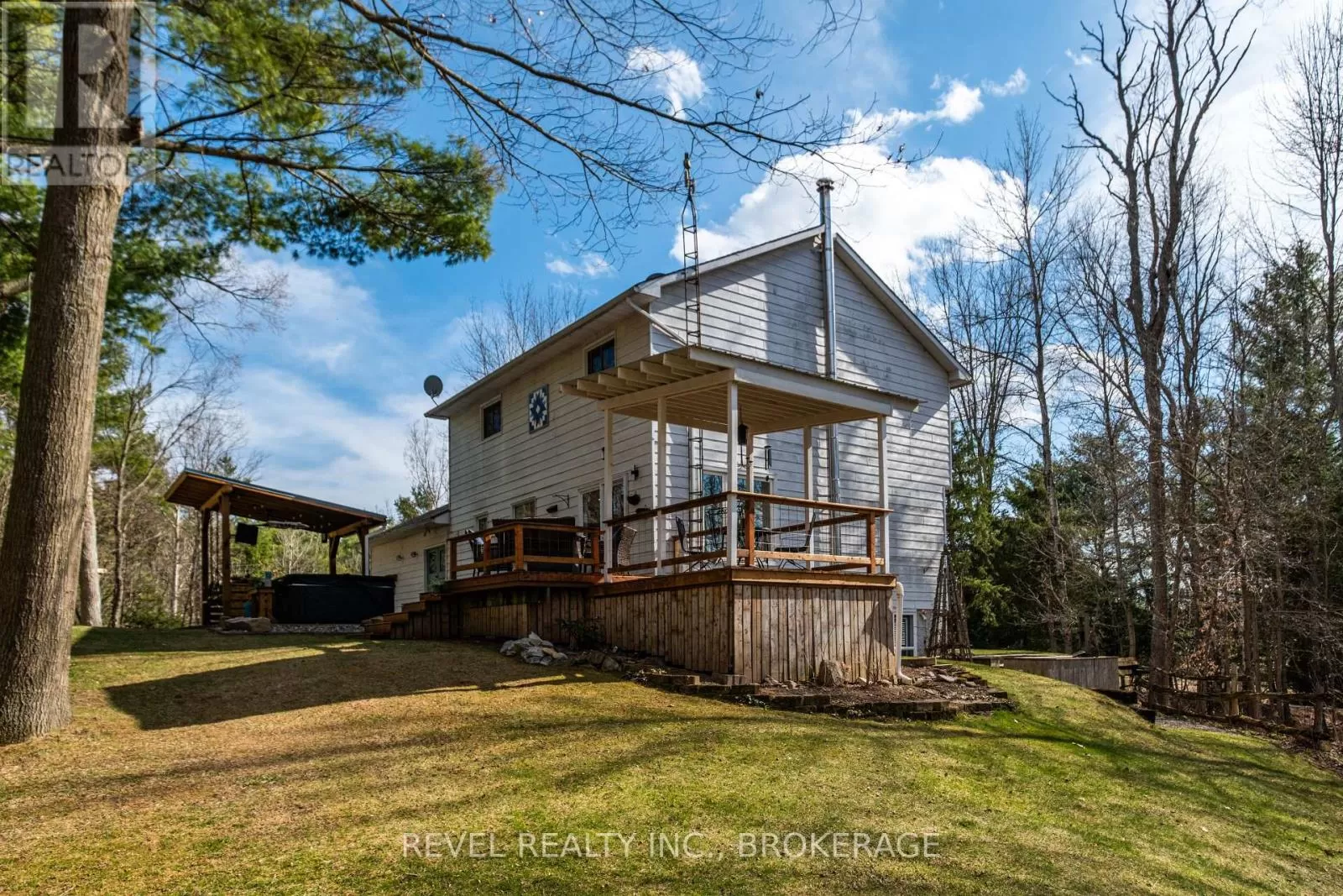 Cross Streets: Road 38. ** Directions: From 401 - North on Hwy 38. Welcome to 7772 Highway 38 where modern living meets country serenity. This beautifully renovated 2-storey home sits on nearly 4 acres of peaceful paradise, backing onto the KP Trail for endless outdoor adventures right from your backyard.With almost 2,000 sq ft of thoughtfully updated living space, this 4-bedroom, 2.5-bath home offers both comfort and style. The main level flows effortlessly with spacious, sun-filled rooms, a modern kitchen, and cozy gathering spaces that make entertaining a dream. Upstairs, you'll find four generous bedrooms, including a serene primary suite with ensuite bath. Step outside to your private oasis an entertainers dream! Enjoy evenings around the custom outdoor fireplace, cocktails at the sip & swing bar, or soak in the hot tub under the stars. The landscaped yard is as functional as it is stunning, and the spacious deck offers the perfect spot to relax and take in the view. With a double attached garage, a paved driveway, and direct access to the trail, this home checks every box. Whether you're hosting friends or unwinding in nature, 7772 Highway 38 is where memories are made. (id:27476)