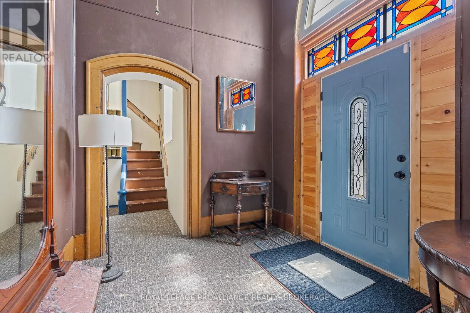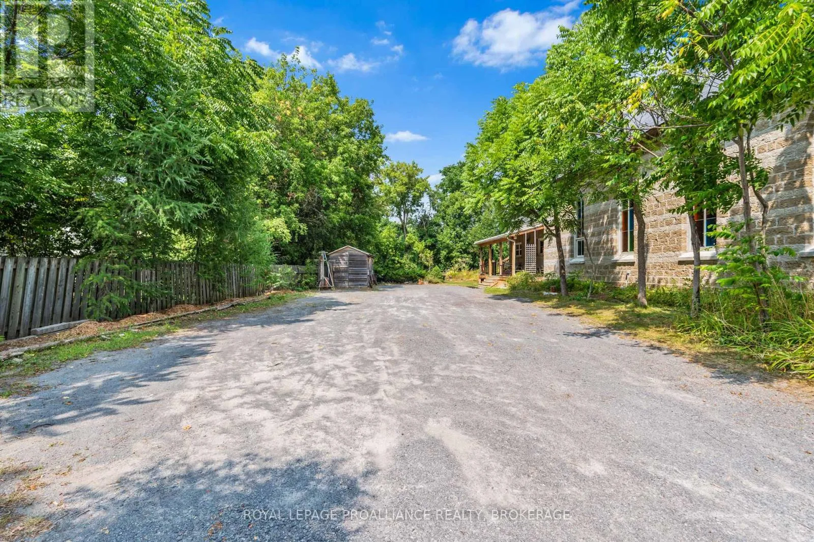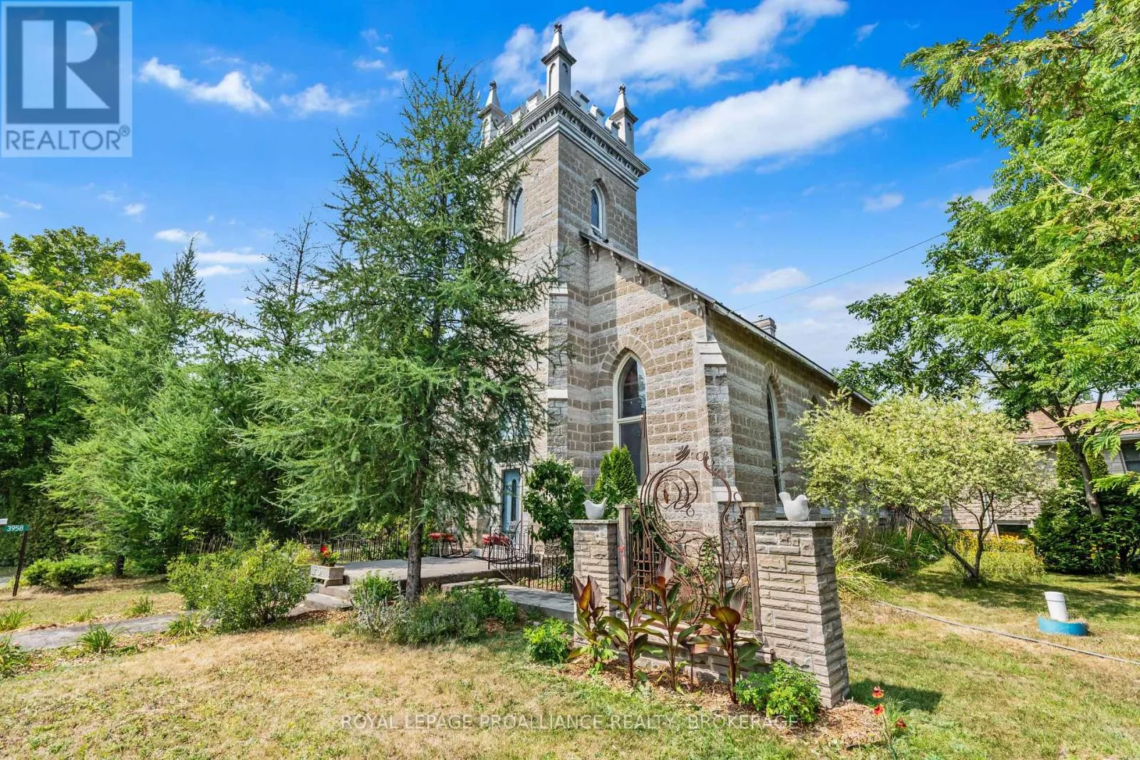 Highway 38 to Harrowsmith Road Welcome to 3958 Harrowsmith Road -- a truly unique property in the heart of the charming village of Harrowsmith. This former church with a spacious residential addition presents a rare opportunity for personal living, business potential, or both. Zoned UC-1 (commercial), its perfect for a home office or other venture! The original church showcases stunning limestone architecture, with a bright, open "Nave" featuring soaring ceilings and vibrant stained glass windows. The bell tower remains intact with stairs to the top offering potential to finish and a bathroom rough-in adds future flexibility. The upper balcony/gallery is in excellent condition and provides ample space for creative use. The rear addition offers a generous amount of living space, beginning with a large foyer and flowing into the main living area with a cozy wood-burning fireplace and walkout to a spacious deck. The kitchen features a unique split layout with ample cabinetry. Two bedrooms are on the main level, including a primary suite with a 4-piece ensuite, plus a large 2-piece bath. The lower level includes two more bedrooms, an office/den, a 4-piece bath, and a laundry area, perfect for families or in-law suite potential. Upstairs, a 600 sq. ft. loft is currently used as a workshop. The back section has a block foundation and is independently serviced by air, a furnace, a heat pump, and its own eco septic system. The front section of the home is on a stone foundation with a holding tank and is serviced by a hot water tank, a furnace, and a heat pump. Electric baseboards are also a source of heat. The property has ample parking for residential and commercial needs, an EV charger, and fibre-optic high-speed internet is available and is just a short walk from the K&P and Cataraqui Trails. Come see it for yourself! (id:27476)