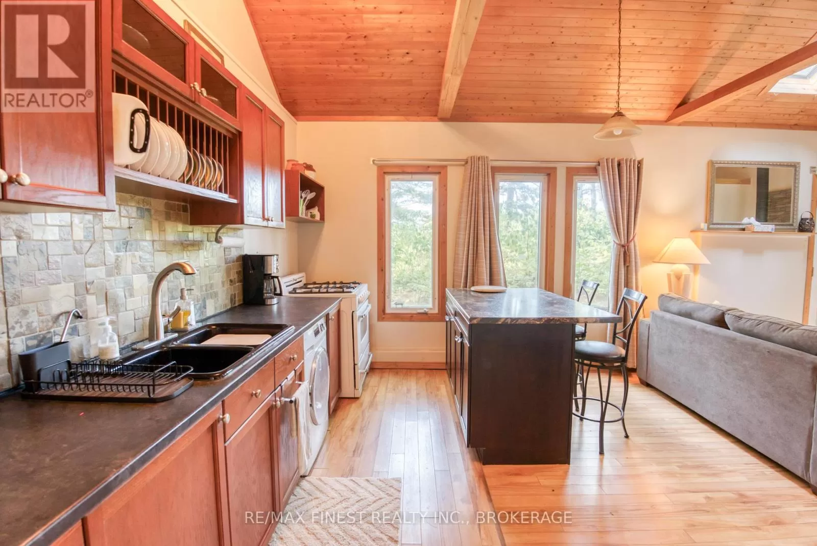 Cross Streets: Highway 7 and Cty Rd 509. ** Directions: On K&P Trail. Hwy #7 west from Cty Rd 38, turn N on 509, right at Round Lake Rd, right down gravel drive to underpass under Hwy 7, through tunnel to 1036 Sign. Set on peaceful Twin Lake along the historic K & P trail, this charming off-grid cottage promises tranquility and a true escape to nature just one hour from Kingston. The cottage features two bedrooms, a vaulted ceiling with a skylight that makes the open living area feel bright and spacious. The cottage has a propane fridge, propane fueled style woodstove, cooking stove, and hot water tank. The gray water leads to a French well under the driveway and the toilet is composting. Enjoy eco-friendly living with all the essentials, as the sale includes most furnishings and kitchen appliances for a turnkey move-in. There is even a newer 9 x 11 shed for bikes and water toys. Step outside to the hillside gazebo perfect for morning coffee or evening cocktails while the private dock invites you to fish, swim, or launch your kayak into waters renowned for excellent bass fishing. A paddle boat and small fishing boat are included. Alternately, the property's serene setting is ideal for outdoor trail enthusiasts, with direct access to hiking, cycling, and wildlife watching along the K & P trail. Here, you can embrace the simple pleasures of lakeside living, where days are shaped by the rhythms of nature and every sunset is an invitation to unwind. Whether you're seeking a quiet weekend retreat or a base for adventure, this ready-to-enjoy cottage offers comfort, character, and lasting memories by the water. Power equipment included in the price. Call, text, or email for additional details. (id:27476)