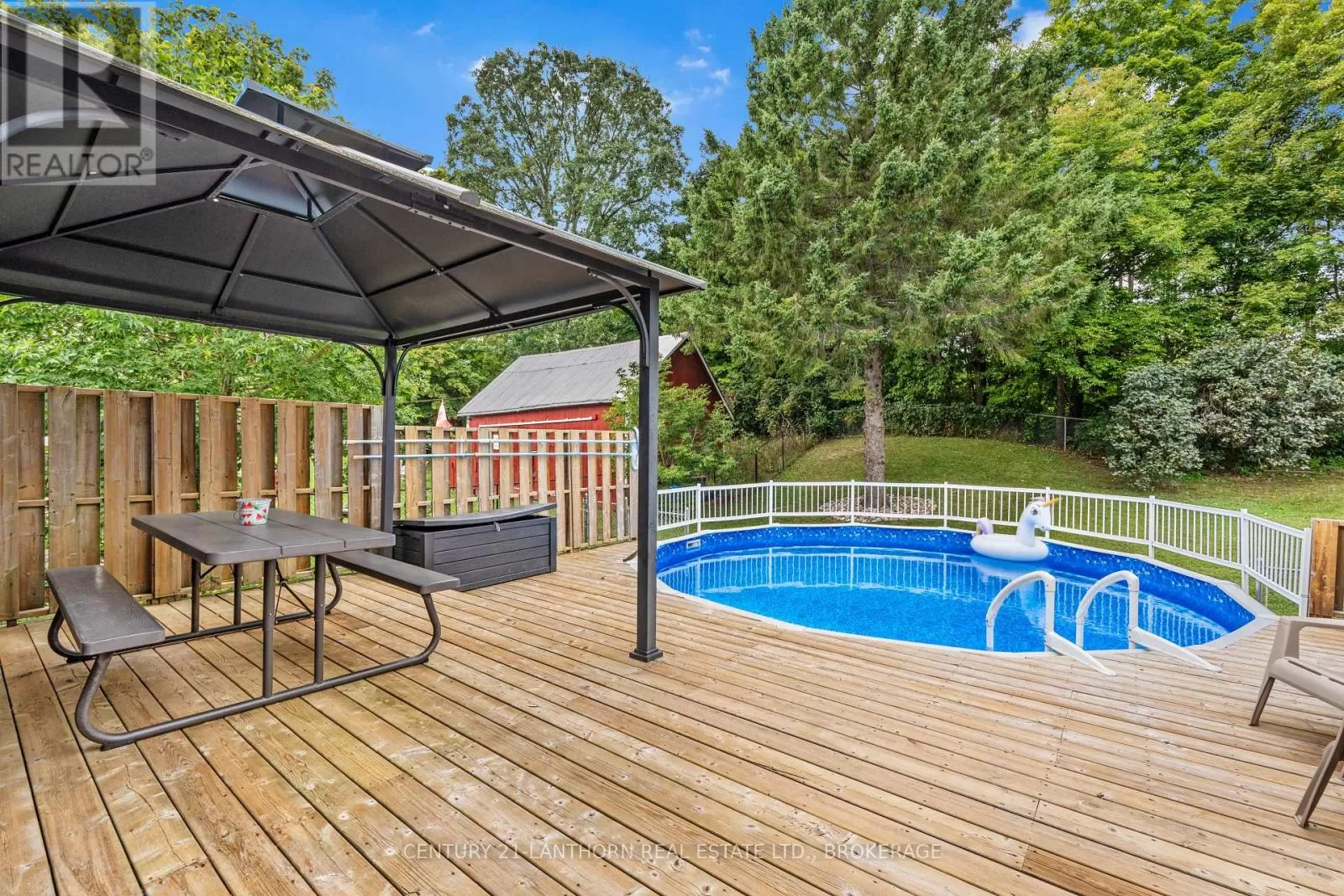 Cross Streets: Highway 38. ** Directions: Take Highway 38 North into Verona from Kingston and your destination will be on the left. Welcome to 6817 Highway 38! A beautifully maintained family home offering comfort, space, and charm just 20 minutes north of Kingston, in the town of Verona. Step inside and be greeted by a bright and inviting foyer /sunroom, leading into a spacious open-concept kitchen. The home features a separate dining area, ideal for family dinners and entertaining. A generously sized sun-filled family room at the back of the home ,complete with a cozy propane fireplace and patio doors that open to your own backyard oasis. Enjoy summers on the large deck overlooking a beautiful above ground pool fully fenced backyard, perfect for both relaxation and fun. The main floor includes one bedroom and full 4-piece bathroom. Upstairs, you'll find two more spacious bedrooms and a convenient 2-piece bath. This lovely 3-bedroom, 1.5 bath home combines functionality with warmth in a peaceful setting. This home is a must see. There has been some major repairs/upgrades done since 2020. Those include: Roof Windows (except basement) All exterior doors including the sliding patio door Siding Furnace & A/C Pool liner (June 2024) Pressure tank (August 2024) (id:27476)