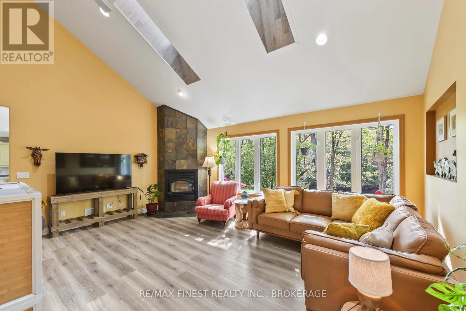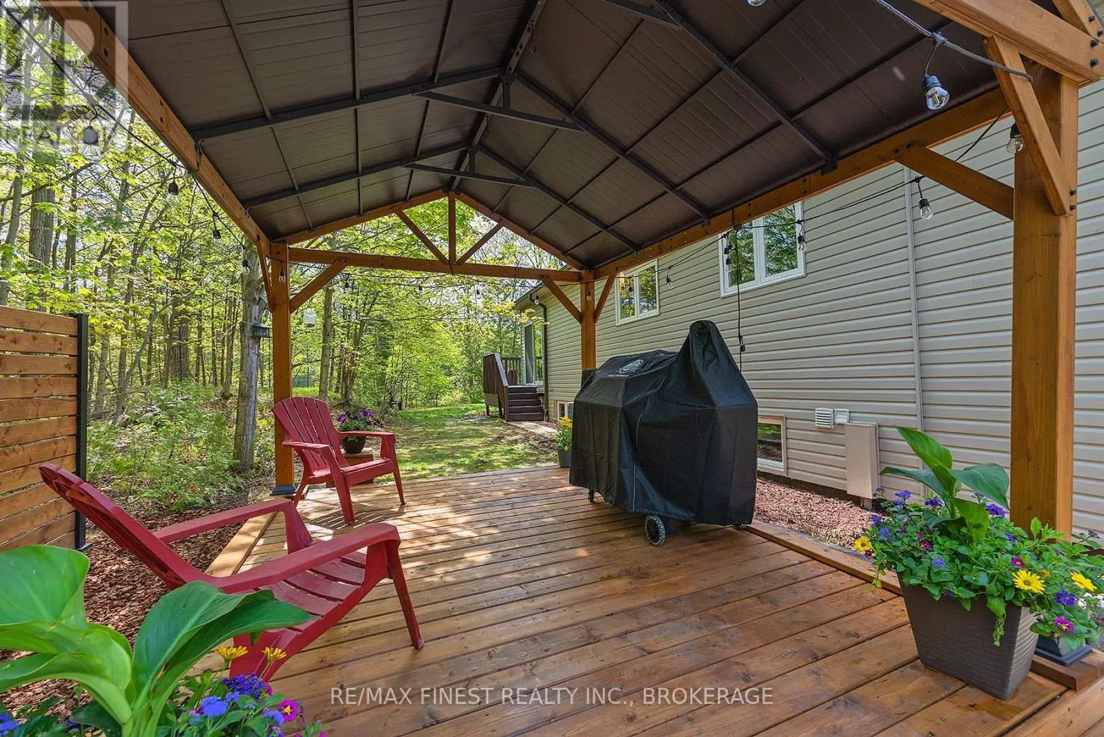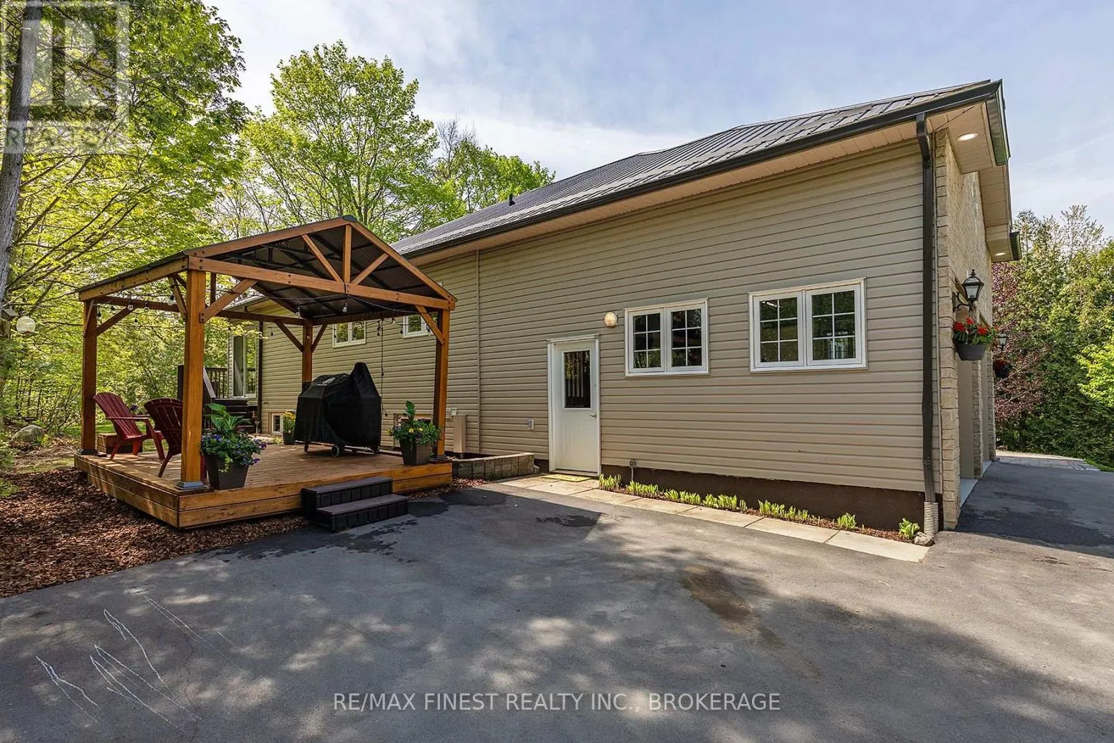 Cross Streets: Maple Drive. ** Directions: Highway 38 to Maple Drive to Davey Drive. Welcome home to 5885 Davey Drive - where your dream of waterfront living becomes a reality. This immaculately maintained, fully renovated bungalow sits on just under 3 acres along quiet Hardwood Creek. Offering 300 feet of private waterfront this property provides a quiet rural setting with access to Verona, Howes, and Hambly Lakes. Bright and inviting at every turn, this home is packed with updates offering you peace of mind from the moment you move in. The spacious main floor features vaulted ceilings in the living area and a cozy wood-burning fireplace. The kitchen was beautifully renovated in 2019, including new cabinets and granite countertops. Enjoy your morning coffee or nighttime stargazing from the solarium located off the dining room. Patio doors open to the deck for easy access to the hot tub, firepit, or waterfront. The primary suite has a walk-in closet and a private 3-piece ensuite bathroom. A lofted area overlooks the main floor providing ample room for a secluded office or reading space. The fully finished basement includes three bedrooms, two full bathrooms, and plenty of space for a recreation room, games area, home gym, and storage. This thoughtfully designed layout allows you to host guests with ease and offers room for teenagers to have their own space. Additional outdoor features include a gazebo with smoker, landscaped grounds, 2-car garage, walking/ATV trails, and 3600 sqft fenced space ideal for dog training or other outdoor uses of your liking. 25 minutes to Kingston and minutes from the amenities of Verona. Don't miss this wonderful property and all its rural charm. (id:27476)