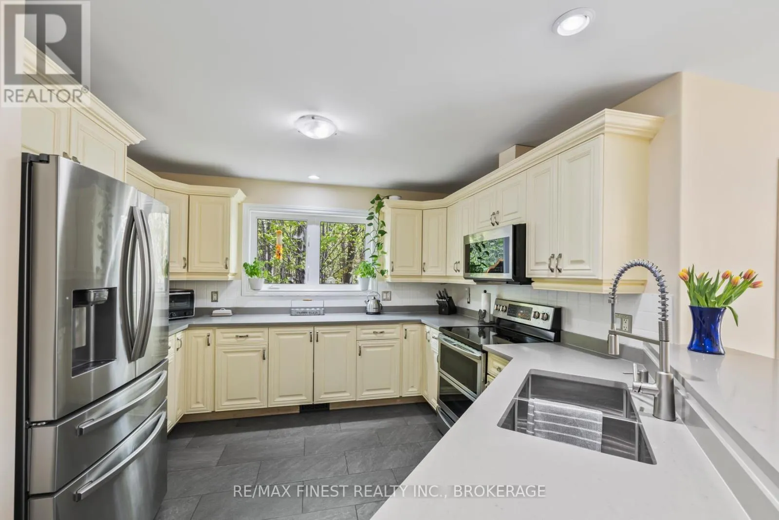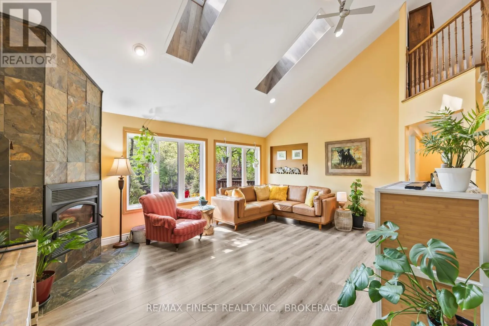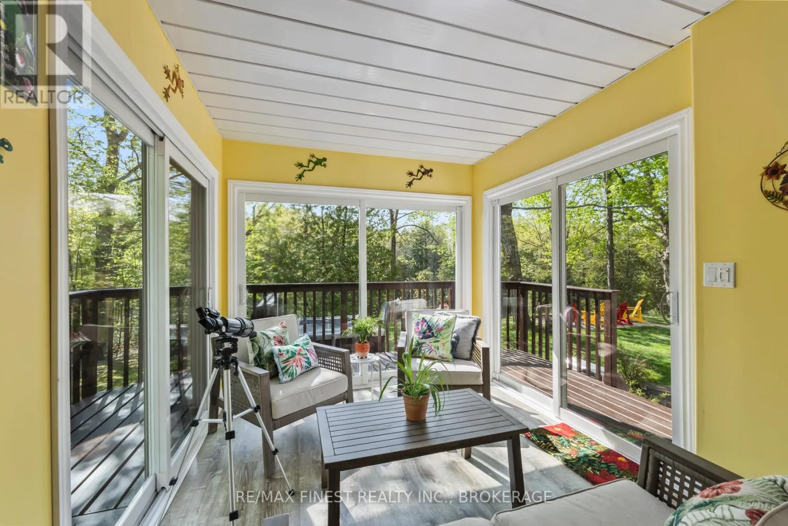 Cross Streets: Maple Drive. ** Directions: Highway 38 to Maple Drive to Davey Drive. Welcome home to 5885 Davey Drive - where your dream of waterfront living becomes a reality. This immaculately maintained, fully renovated bungalow sits on just under 3 acres along quiet Hardwood Creek. Offering 300 feet of private waterfront this property provides a quiet rural setting with access to Verona, Howes, and Hambly Lakes. Bright and inviting at every turn, this home is packed with updates offering you peace of mind from the moment you move in. The spacious main floor features vaulted ceilings in the living area and a cozy wood-burning fireplace. The kitchen was beautifully renovated in 2019, including new cabinets and granite countertops. Enjoy your morning coffee or nighttime stargazing from the solarium located off the dining room. Patio doors open to the deck for easy access to the hot tub, firepit, or waterfront. The primary suite has a walk-in closet and a private 3-piece ensuite bathroom. A lofted area overlooks the main floor providing ample room for a secluded office or reading space. The fully finished basement includes three bedrooms, two full bathrooms, and plenty of space for a recreation room, games area, home gym, and storage. This thoughtfully designed layout allows you to host guests with ease and offers room for teenagers to have their own space. Additional outdoor features include a gazebo with smoker, landscaped grounds, 2-car garage, walking/ATV trails, and 3600 sqft fenced space ideal for dog training or other outdoor uses of your liking. 25 minutes to Kingston and minutes from the amenities of Verona. Don't miss this wonderful property and all its rural charm. (id:27476)