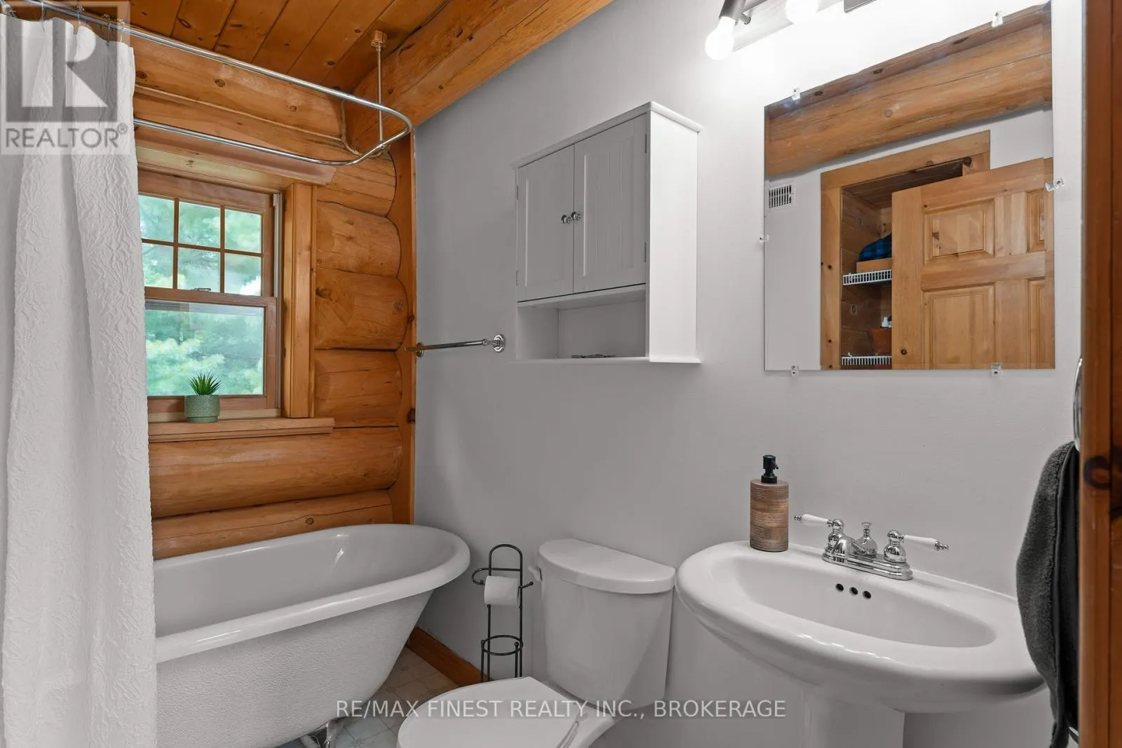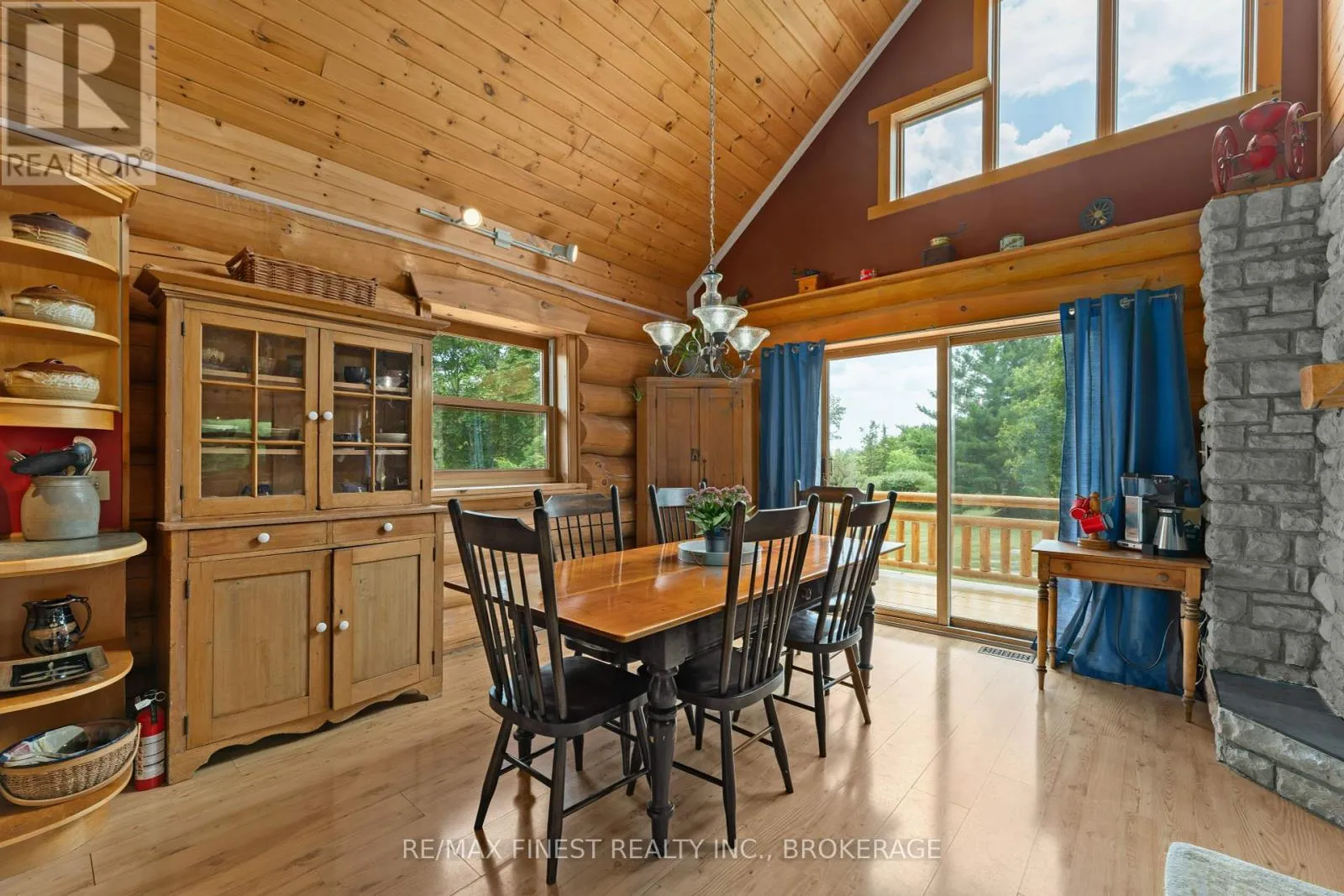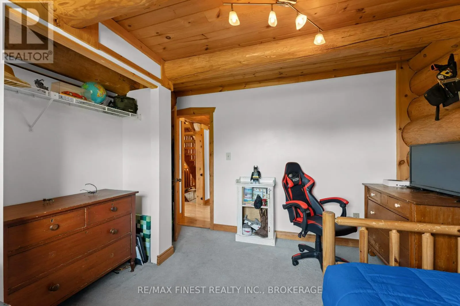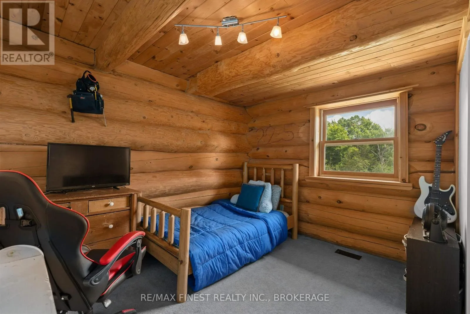 Cross Streets: Wallace and Camden-Portland Boundary Road. ** Directions: North on Highway 38. Left on Yarker Rd, Right on Camden-Portland Boundary Rd, Right on Wallace Rd. Nestled amongst mature trees on a quiet country road just 20 minutes to town, this stunning BC Fir Log home situated on a tranquil and private 4 acres is sure to impress. The home cannot bee seen from the road and features a turn around driveway lined by lilacs ideal for a trailer, boat, etc. with access to drive shed ideal for storing your toys. As you pull up to the front entrance you are immediately greeted by a large welcoming front porch spanning the entire front of the home ideal for morning coffees or unwinding after a long day at work. Once done enjoying the beautiful setting, as you head into the home you will appreciate the amazing wood work and log details spanning two storeys providing a warm open feeling easily integrating your Kitchen, dining, and living areas punctuated by a centrally located fireplace. Natural light floods the home in abundance, gracing the living area, country kitchen with island and spacious dining ideal for entertaining and family gatherings. The main floor also features two good sized bedrooms as well as a lovely 4 piece bathroom. As you ascend the skillfully crafted wood stairs, you arrive at the landing overlooking the main floor and enter into the large primary bedroom with balcony and 4 piece ensuite. The functionality and appeal of this already impressive home is further compounded by a bright walkout basement withnew carpet and easy access both from the side of the home through your attractive mudroom as well as the backyard leading out to the stamped concrete patio and hot tub overlooking the peaceful grounds . The basement features plenty of storage, a home office, a rec room as well as a family room with the possibility of creating another bedroom or in-law set up. While already impressed, let me leave you with a few additional conveniences; there is a poured pad ready for a garage if desired, the new front entry steps are sure to impress, many windows are newer, chicken ready set-up, and the fireplace is WETT cert! (id:27476)