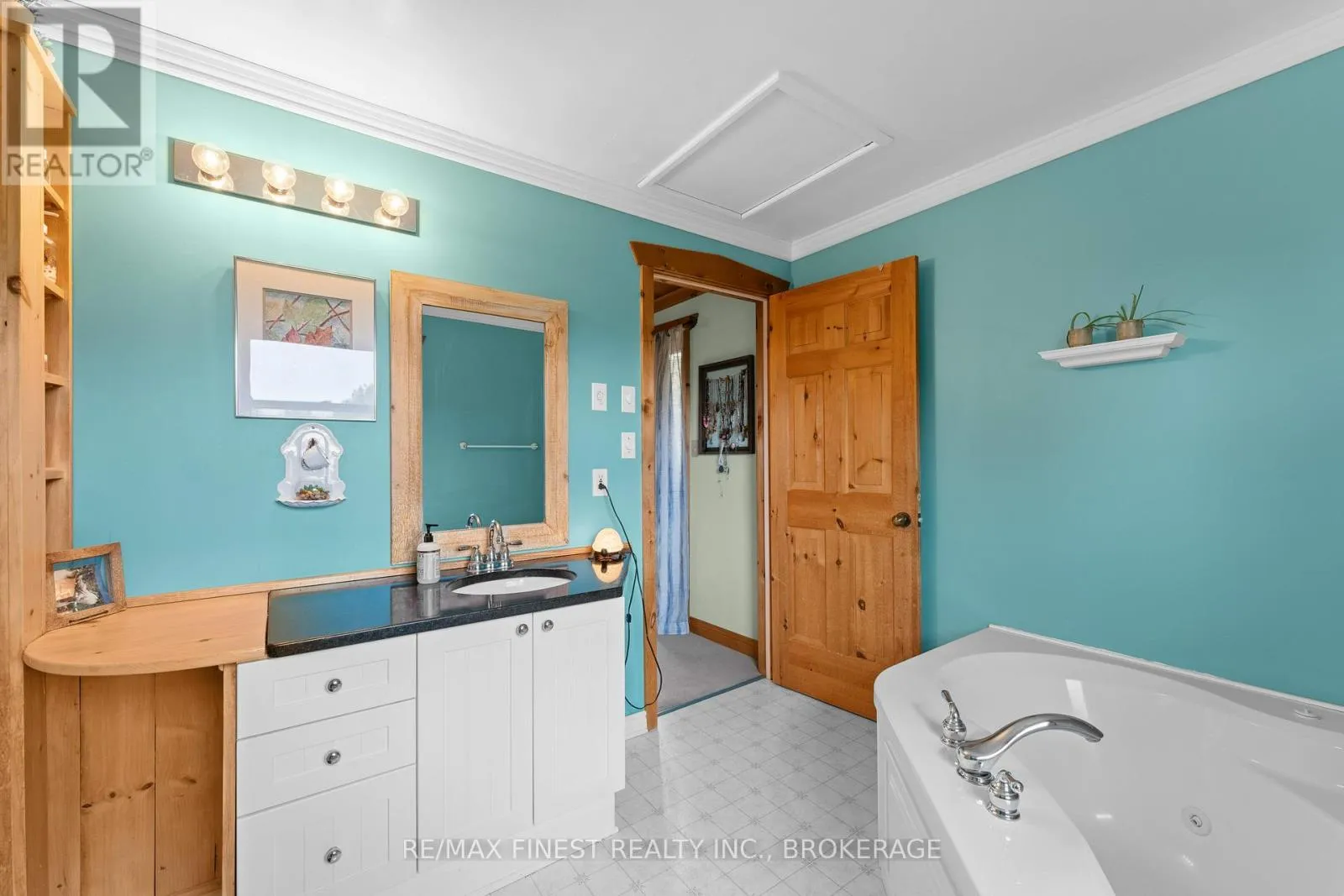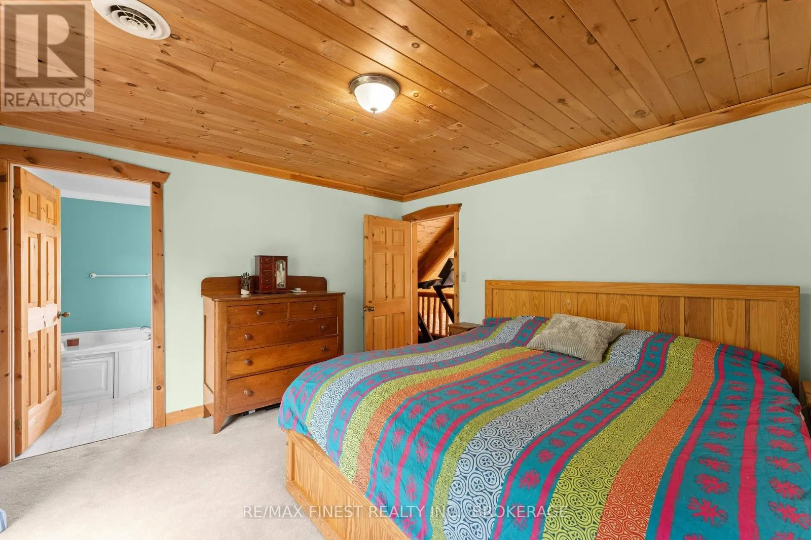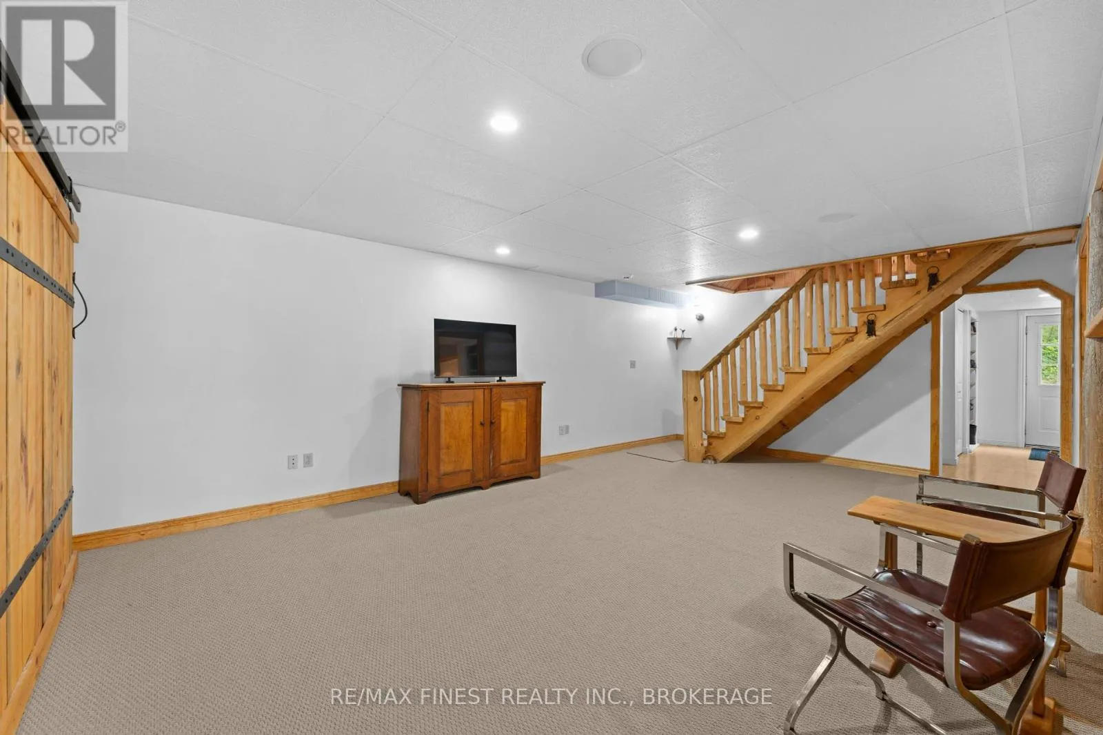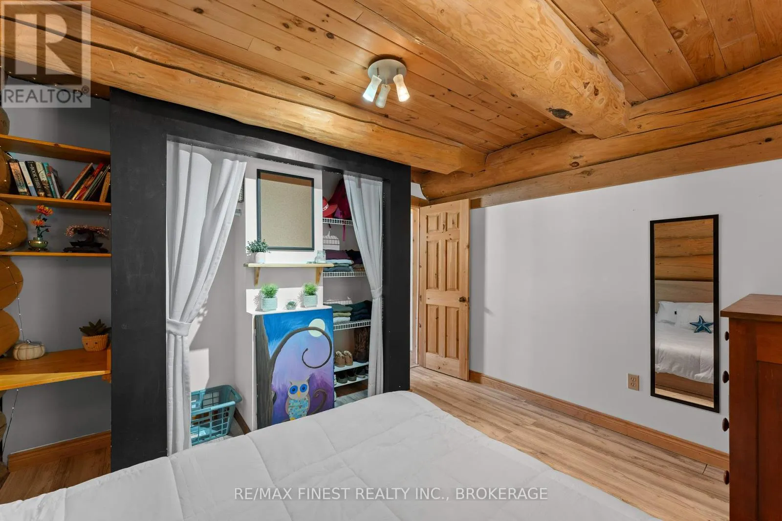 Cross Streets: Wallace and Camden-Portland Boundary Road. ** Directions: North on Highway 38. Left on Yarker Rd, Right on Camden-Portland Boundary Rd, Right on Wallace Rd. Nestled amongst mature trees on a quiet country road just 20 minutes to town, this stunning BC Fir Log home situated on a tranquil and private 4 acres is sure to impress. The home cannot bee seen from the road and features a turn around driveway lined by lilacs ideal for a trailer, boat, etc. with access to drive shed ideal for storing your toys. As you pull up to the front entrance you are immediately greeted by a large welcoming front porch spanning the entire front of the home ideal for morning coffees or unwinding after a long day at work. Once done enjoying the beautiful setting, as you head into the home you will appreciate the amazing wood work and log details spanning two storeys providing a warm open feeling easily integrating your Kitchen, dining, and living areas punctuated by a centrally located fireplace. Natural light floods the home in abundance, gracing the living area, country kitchen with island and spacious dining ideal for entertaining and family gatherings. The main floor also features two good sized bedrooms as well as a lovely 4 piece bathroom. As you ascend the skillfully crafted wood stairs, you arrive at the landing overlooking the main floor and enter into the large primary bedroom with balcony and 4 piece ensuite. The functionality and appeal of this already impressive home is further compounded by a bright walkout basement withnew carpet and easy access both from the side of the home through your attractive mudroom as well as the backyard leading out to the stamped concrete patio and hot tub overlooking the peaceful grounds . The basement features plenty of storage, a home office, a rec room as well as a family room with the possibility of creating another bedroom or in-law set up. While already impressed, let me leave you with a few additional conveniences; there is a poured pad ready for a garage if desired, the new front entry steps are sure to impress, many windows are newer, chicken ready set-up, and the fireplace is WETT cert! (id:27476)