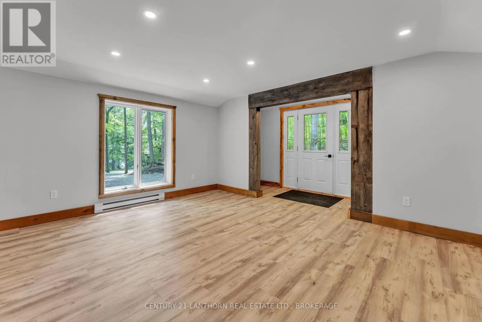Cross Streets: Guigue Road. ** Directions: From highway 7 take Fall River Rd. turn right on Guigue Rd, then left onto Warrington Rd. take a right at 1120A-B. 1120B is at the bottom of the hill to the right. Stunning Waterfront Retreat on desirable Sharbot Lake. This beautifully renovated to new, Log home offers the perfect blend of modern comfort and natural charm, nestled on a private 3.1-acre lot with mature trees, rocky shoreline, and tranquil views. Step inside the breathtaking entry and feel right at home, no detail has been overlooked from top to bottom, this 4 bedroom 2.5 bath home has all the luxury updates you could possibly want including an ensuite with in floor heat. Enjoy open-concept living, modern finishes, and large windows that frame the serene landscape. This unique property includes: A detached garage, with a car port and loft for additional storage. An additional 1080 sq ft Aux. Building with tons of versatility, on one side of the building you will find a cozy bunkie perfect for guests, kids, or quiet retreats and includes a new bathroom with in floor heat and luxury vinyl flooring throughout. On the other side there is a recreational space with a loft, ideal for a studio, workshop, games room, entertaining, or just use it to store all the toys you will need for life at the lake. Both the main house and the aux building have 200 amp service if desired. The garage does not currently have electrical service but it could easily be added. The natural, and mature landscaping offers peace, privacy, and the classic charm of the rugged Canadian Shield. Enjoy this property with your family and friends for generations to come or it would be an ideal vacation investment property, the possibilities are endless. Whether you're swimming from the rocky lake, kayaking at sunset, or enjoying starlit evenings on the dock, this property delivers the ultimate four-season lifestyle. Don't miss your chance to own this exceptional waterfront gem on a sought after lake. Move-in ready just waiting for you to call it home! Book your private showing today. (id:27476)