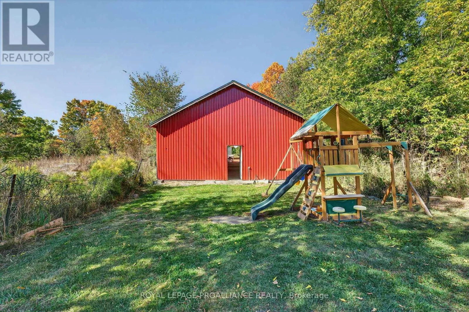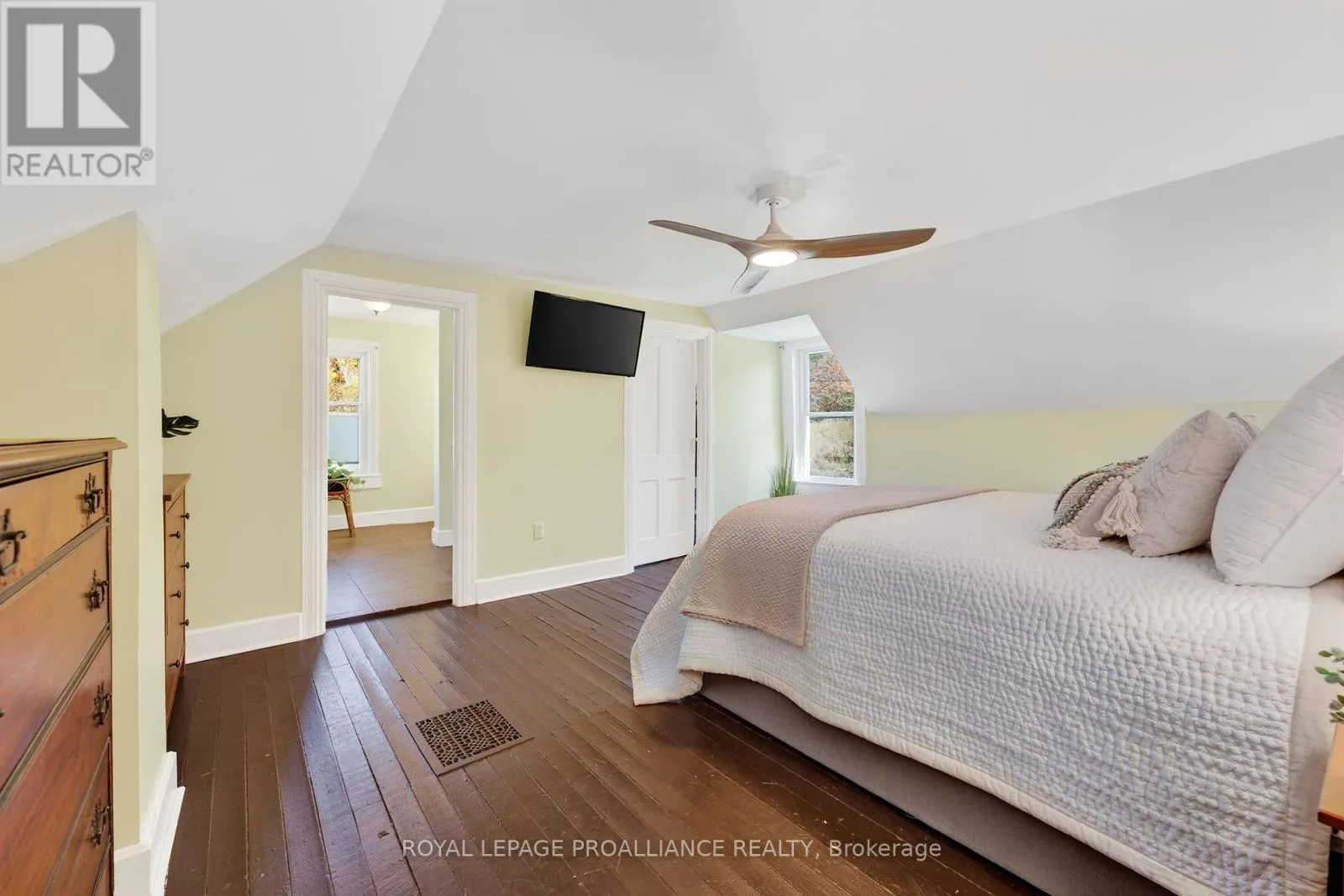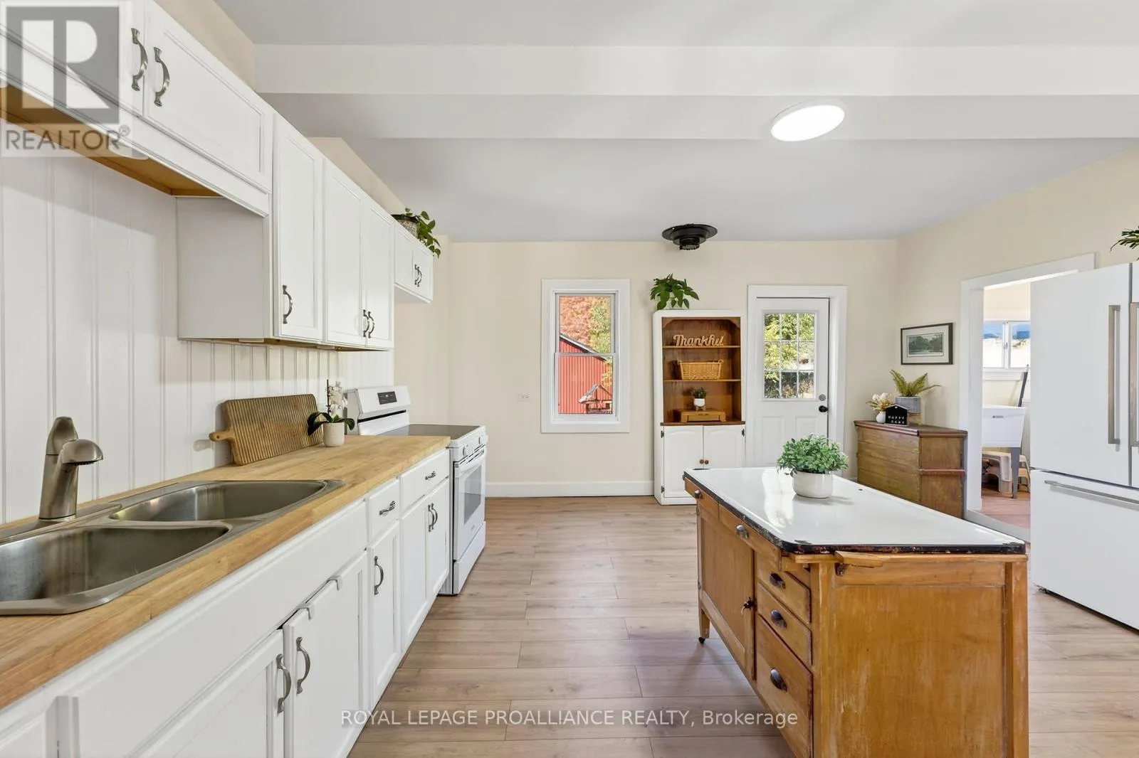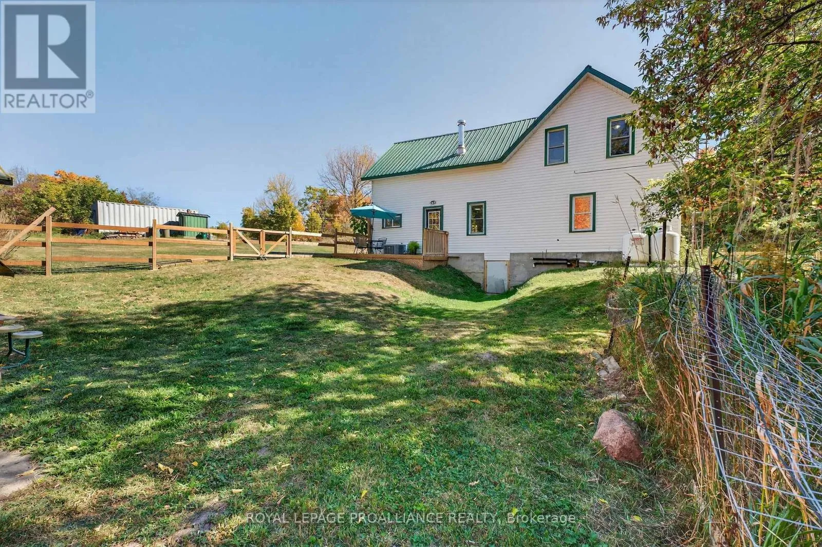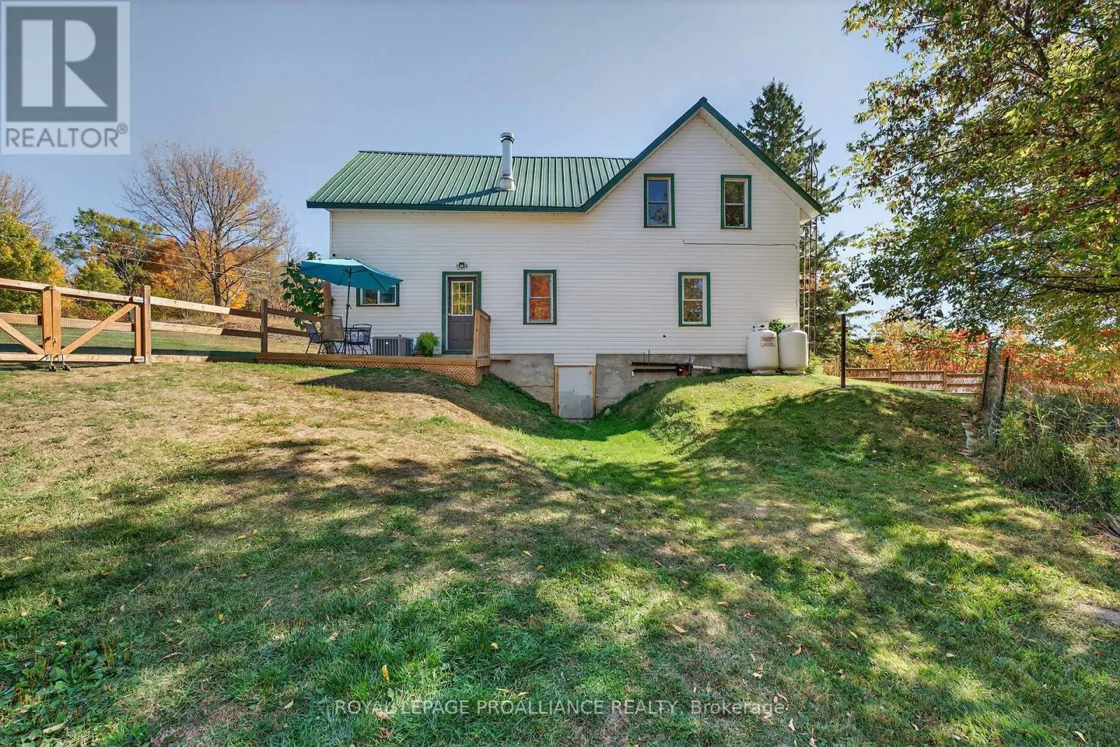 Cross Streets: Wagerville Rd/Cronk Rd. ** Directions: From Belleville: East on 401, North on Hwy 41, East on County Rd 4 through Tamworth. East on Mountain Rd, North onto Cronk Rd. Welcome to this charming Century Farmhouse set on 22+ acres of picturesque countryside. A rare opportunity for those dreaming of a hobby farm, outdoor adventure or peaceful rural living. This well maintained property combines timeless character with thoughtful updates. The land offers open fields, hardwood bush, scenic trails, and abundant wildlife, while the new 30' x 80 barn with power, concrete floors and six stalls ready for livestock. A 3-bay shelter is perfect for hay, equipment or animals and additional outbuildings add versatility to the farms use. The farmhouse features a bright eat-in country kitchen with classic white cabinetry, a bight dining/living room with stone fireplace and a recently gutted and rebuilt 3- piece bathroom and main floor laundry room offering plenty of storage. Freshly painted through-out in a tasteful neutral palette, along with original painted floors on the upper level, preserved the homes century -old charm. Upstairs, the primary suite includes a large walk-in closet and 4 -piece ensuite, white spacious additional bedrooms provide comfort for family or guests. Practical updates make country living easy, including new main level flooring throughout, an efficient outdoor wood furnace with backup propane forced air furnace for ease of use. Central A/C (2020), 200 - amp service, and high-speed internet. Set on a quiet , year round road. This property is ideal for hobby farming, hunting, recreation or simply enjoying a serene rural lifestyle surrounded by nature. A truly special place where history meets modern convenience. (id:27476)