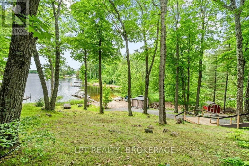 Cross Streets: Oak Shores Lane. ** Directions: Bobs lake road to Oak Shores Lane to Acorn Lane. Welcome to your lakeside retreat on Bobs Lake! Impeccably updated 3 + 2-bedroom, 2 + 1-bathroom bungalow nestled on private sandy shoreline in Tichborne. From the moment you arrive, the landscaped grounds and striking metal roof set the tone for refined yet relaxed living.Step inside to discover a spacious interior finished with hardwood floors and oversized windows framing water views. The chefs kitchen is a showpiece, featuring granite countertops, stainless steel appliances and a convenient breakfast island. Adjacent, the sunlit dining area opens through sliding glass to a generous deck with clear-pane railing ideal for entertaining.Retreat to the primary suite, complete with ensuite bath and lake vistas. Two additional main-level bedrooms share a modern full bath, while a lower-level wing offers two more bedrooms, a full bath and versatile family room perfect for guests or home office.Outside, the fun continues at the waters edge: new stairs lead to your private sand beach, where a custom dock and powered gazebo (complete with satellite TV and hydro) await summer gatherings. A private road down to the lake ensures easy access. Back at the home, a heated two-car garage, generator plug at the hydro meter. With every detail thoughtfully curated from the granite counters to the gazebo amenities this bungalow embodies vacation at home. Embrace lakeside living in style. Schedule your private tour today. (id:27476)