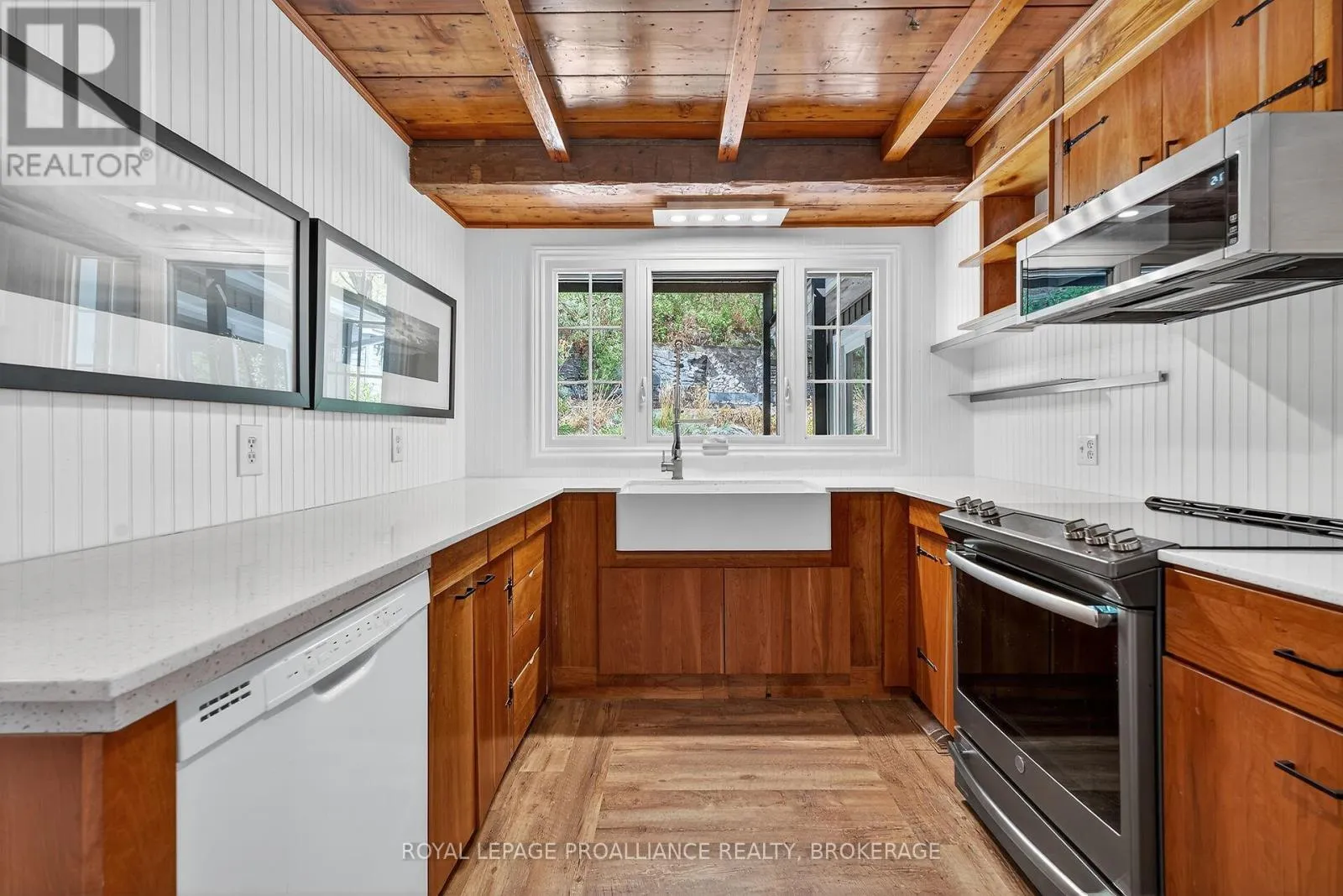 Cross Streets: George Street Sydenham. ** Directions: Sydenham Rd. North to Rutledge Rd. West to George St. Turn Right travel to Portland Ave. Make a left at the Foodland onto Portland Ave. Pride of ownership shines in this beautifully restored 2.5-storey limestone home in the heart of Sydenham. Rich in history, this home was originally the Switzer Hotel in the 1850s and even served as a meeting place for council before the town hall was built. Today, its a fully renovated, move-in-ready home offering a perfect blend of heritage charm and modern updates. Situated on a quiet street, this spacious home features 3 bedrooms, 2 full bathrooms, and large principal rooms throughout. The main floor offers a bright living room with a propane fireplace (2019), a completely renovated kitchen (2021) with included appliances, and an updated 4-pc bath. The second floor includes a 3-pc bath (gut-renovated in 2021), two generous bedrooms, and access to the 2-storey annex, which houses the third bedroom - currently used as an artist studio/office with three walls of windows. The home sits on a beautifully landscaped lot with municipal water service, and includes a detached garage and garden shed, both with power. Exterior features include the original limestone construction, a brand-new metal roof (2024), updated vinyl windows, and low-maintenance finishes. The annex was fully re-insulated and re-sided in 2018, with new windows throughout. Other updates: electrical panel, new flooring, doors, paint, and laundry/mudroom (2020). Upper patio at the back of the property has water and electricity access - perfect for future outdoor entertaining. Located just a short walk to schools, parks, trails, and Sydenham Lake Beach ("The Point"), this property offers the rare opportunity to own a piece of local history with all the modern conveniences already in place. Nothing left to do - just move in and enjoy everything this special home and community have to offer! (id:27476)