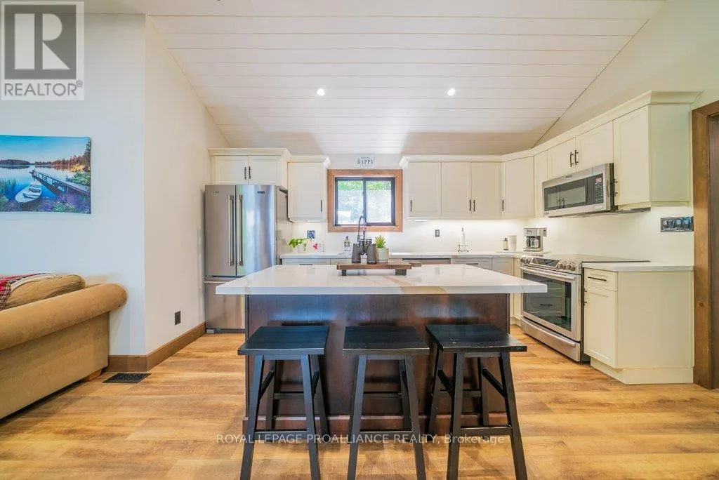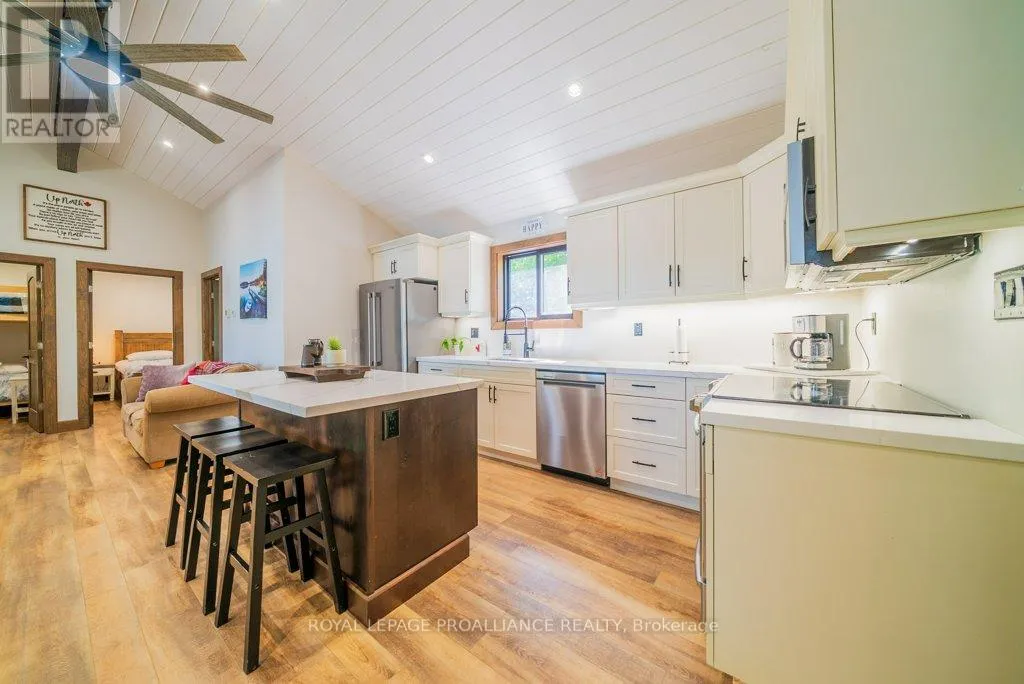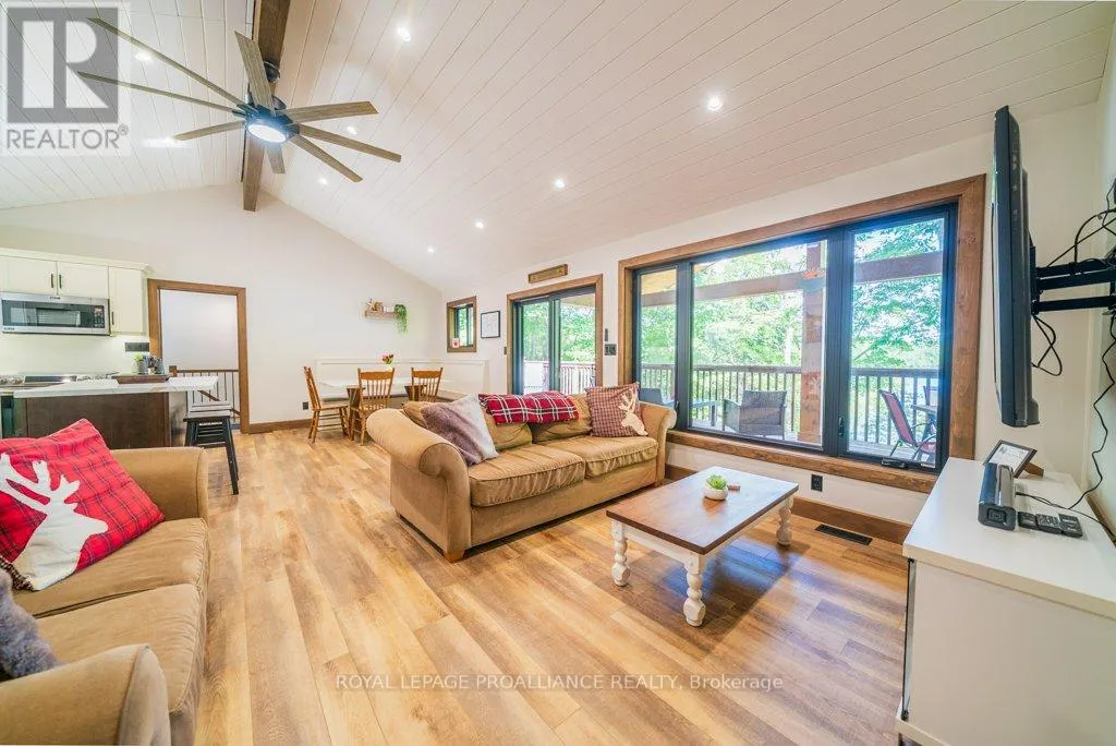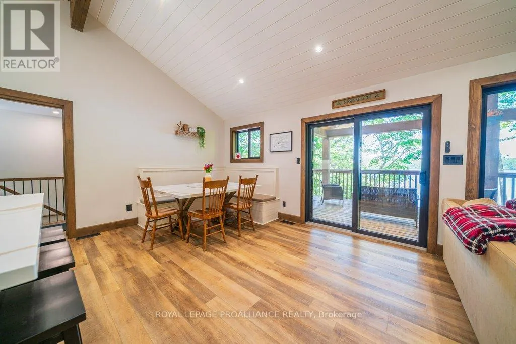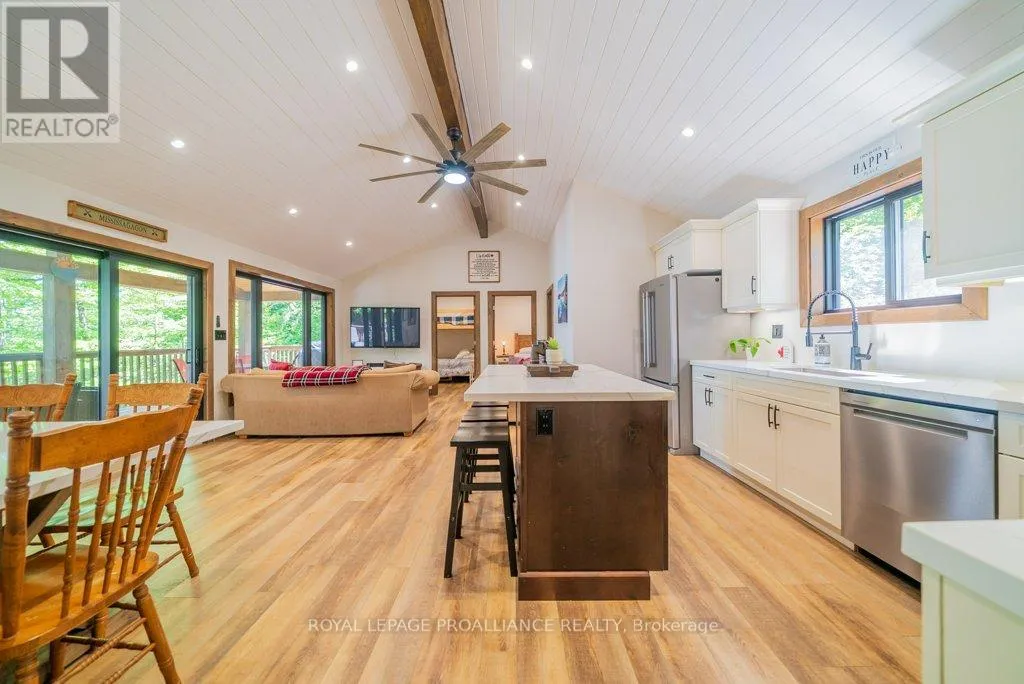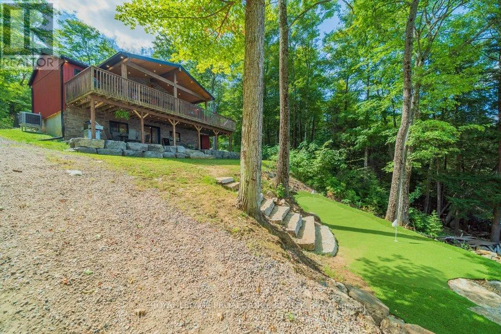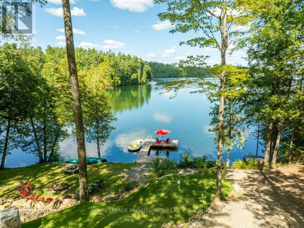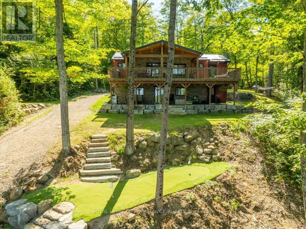 Cross Streets: Rd 5060 & Perry Rd. ** Directions: From Rd 506 to Perry Lane & Sunrise Beach Ln. East on Rocky Lane. Welcome to Mississagaon , a spring water lake with its unique blue / green waters recognised for its quality features an unspoiled shorelines and a tranquil setting that is true Canadiana. Enjoy quiet paddleboarding or show off your wakeboarding skills. The deep waters offer will intrigue anglers and the swimming is second to none. Tucked into a quiet bay with panoramic views you will take it all in from 1202 Rocky Lane. A naturally landscaped setting opens up to a completely renovated cottage home completed between 2022-2024 with a walkout basement and and expansive covered deck with vaulted ceilings that you won't ever want to leave. Perfect for families, the space is arranged both indoors and out for families to enjoy. Attention to a large family room and kitchen area to the lower walkout out and its rec room are easy gathering spots for friends and family at all ages to gather. Four convenient bedrooms and bathrooms on each level provide privacy and utility. The outdoor space is unique and designed for family fun amongst mature trees and unique rock formations. Get the group together and enjoy the sandy beach volley court, or the grassy area for your favorite outdoor games. Pick up your putter as you head toward the water and challenge your golf skills on this tiered putting green that will surely be a source of stories and fun. At the water a large fire pit is a positioned to take in panoramic views as you look down the lake, At night the stars are spectacular and yours to enjoy in a private setting. Back to the dock where you can dip your toes in and appreciate your accomplishments. An additional lot a short walk from the property is included - a great spot to consider a build for extended families or that workshop you have always wanted. Convenient access to to local amenities, trail systems this is a must see property. Welcome to the Land O' Lakes and this unique property on a spectacular lake. (id:27476)