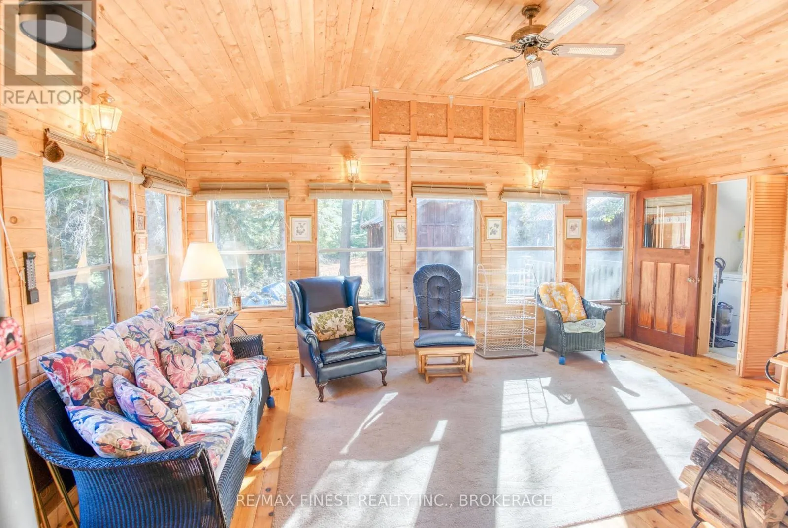 Cross Streets: Green Point Lane. ** Directions: From Sharbot Lake, Hwy 7 west to Road 509.Take Road 509 then left on Ardoch Rd, to Mountain Rd,(at the Corner of the Home Hardware) 35 min (43.7 km), left on Brule Lake Rd 12 min (8.6km)1778 Brule Lake Rd. North Frontenac. Turnkey 3-Season Cottage on Brule Lake Rare opportunity to own a 3-season, 3-bedroom, 1-bathroom cottage on sought-after Brule Lake in North Frontenac Township. Offering approx. 840 sq. ft. of living space, this property includes hydro, septic system, lake water intake, and comes fully furnished and turnkey with all contents included. Two additional outbuildings (10' x 10' and 12' x 20') provide excellent storage or flexible use. Pump house at the waterfront for Lake intake water, with hydro that also doubles as a waterfront storage for fishing equipment and lakeside toys. Dock with crib system. Additional work has been completed to restore the area in front of the cottage by adding topsoil and grass seed. Trail to waterfront has also been improved since photos were taken. Brule Lake is a pristine, low-density lake spanning 571 hectares with a maximum depth of 185 feet. Known for its clear, clean waters and excellent fishing for lake trout, bass, and walleye, Brule is valued for its peace, natural beauty, and dark skies. With only about 85 cottages and approximately 75% of the shoreline protected as Crown land, this is a rare and private setting where properties seldom come to market. A unique chance to enjoy cottage living on one of North Frontenacs most treasured lakes. Cottages on Brule Lake are rarely offered for sale, making this a unique chance to join a close-knit community that treasures its natural surroundings. Whether you're looking to fish for lake trout, paddle along towering rock cliffs, or simply unwind on a quiet shoreline, this property provides the perfect setting. (id:27476)