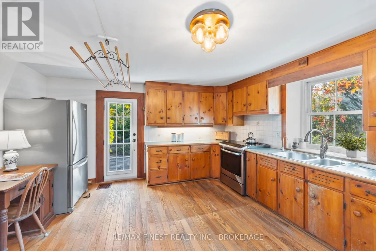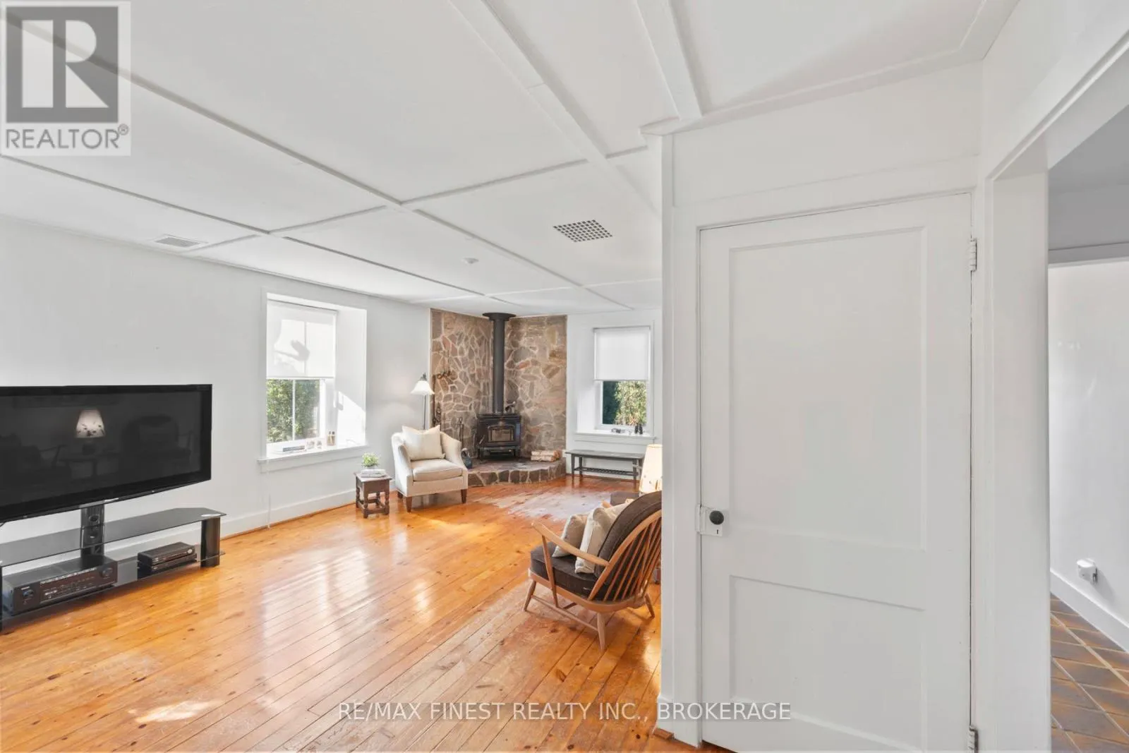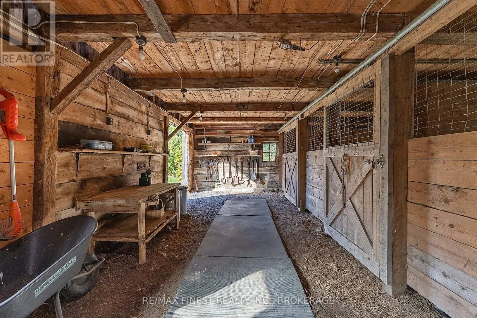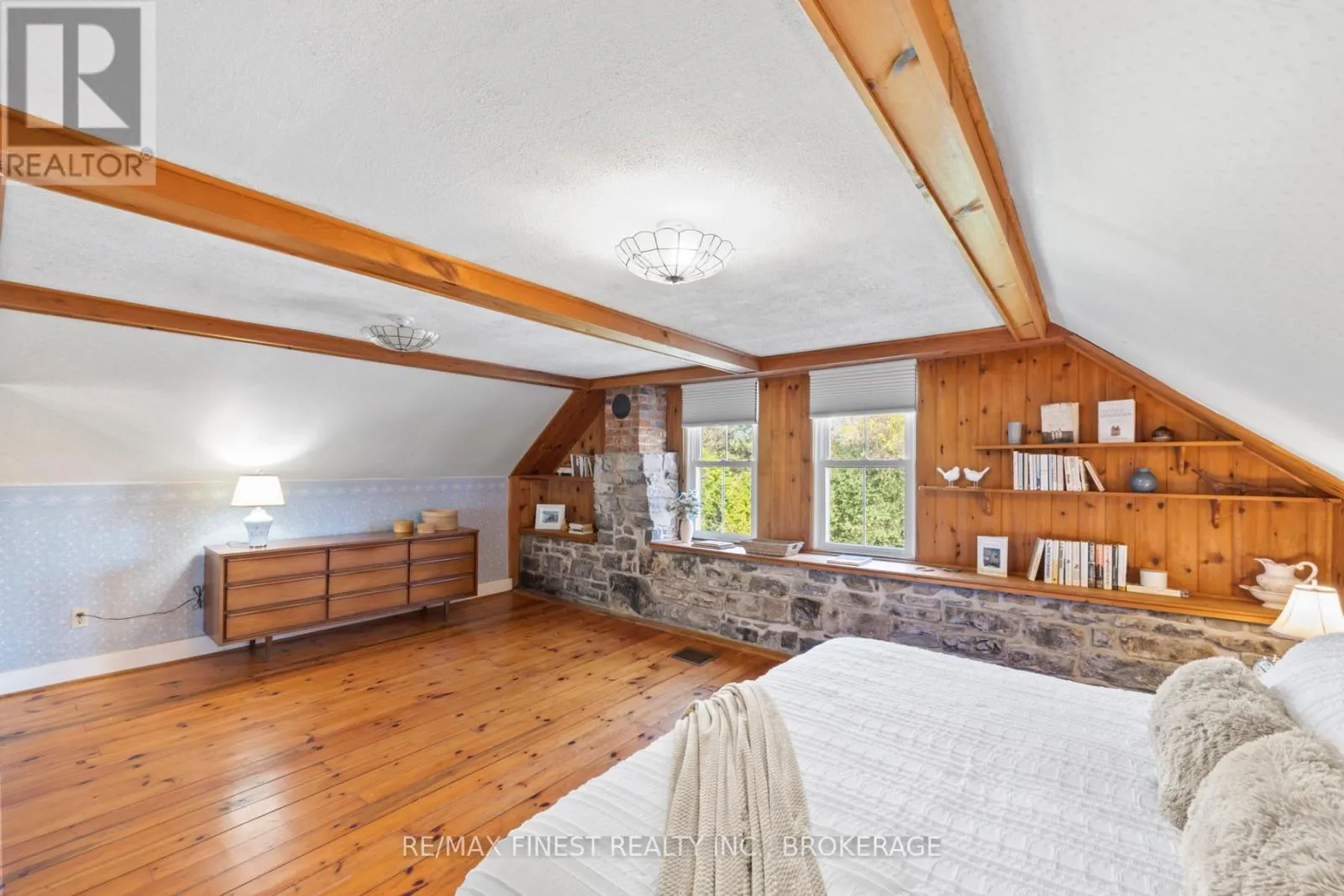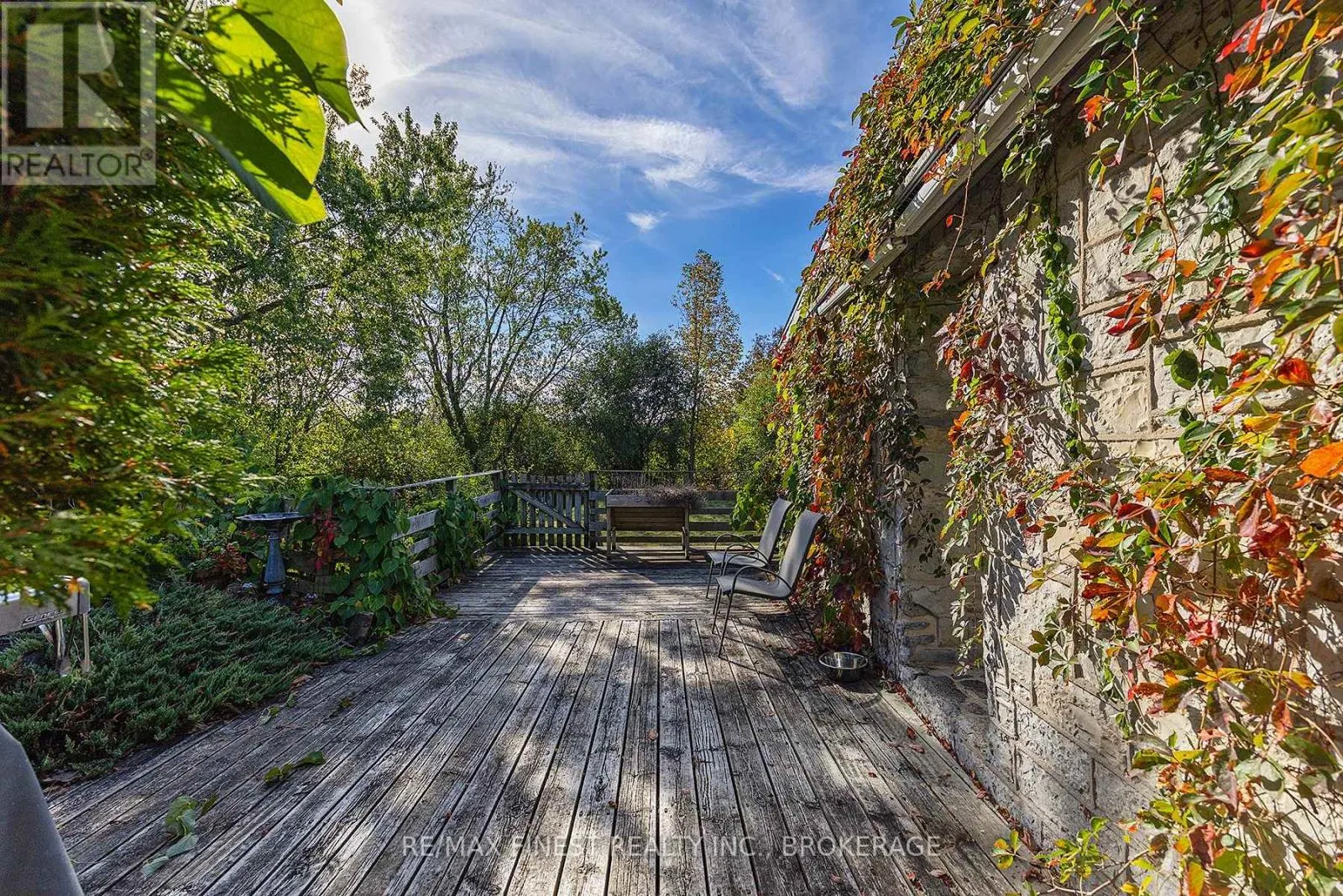 Cross Streets: Sydenham Rd. ** Directions: 7 minutes north of 401 on Sydenham Rd- Right turn and stay right. Welcome to this charming 1 1/2- Storey limestone homestead set on over 26 acres of beautifully maintained property with manicured trails. This picturesque setting offers the perfect blend of country living and outdoor adventure. The property is well-equipped with a 4-stall barn. limestone garden shed, fenced paddock, and fenced dog run-ideal for hobby farmers, nature lovers, or those seeking privacy and tranquility. Inside, the home features a traditional formal layout highlighted by solid pine floors and the timeless character of deep window sills. Sit in your favorite chair and warm yourself by the freestanding stove. The spacious, country-style eat-in kitchen with cupboard space to spare, opens to a deck with a retractable awning-perfect for enjoying peaceful morning coffee or evening sunsets. Although now overgrown, with some TLC to clear bush, the deck opens up to a second deck surrounding a once beautiful water garden. Large windows fill the home with natural light, and the exposed limestone wall in the primary bedroom adds a touch of rustic elegance. A true country retreat, just a short drive to city convenience- this unique property offers the best of both worlds (id:27476)