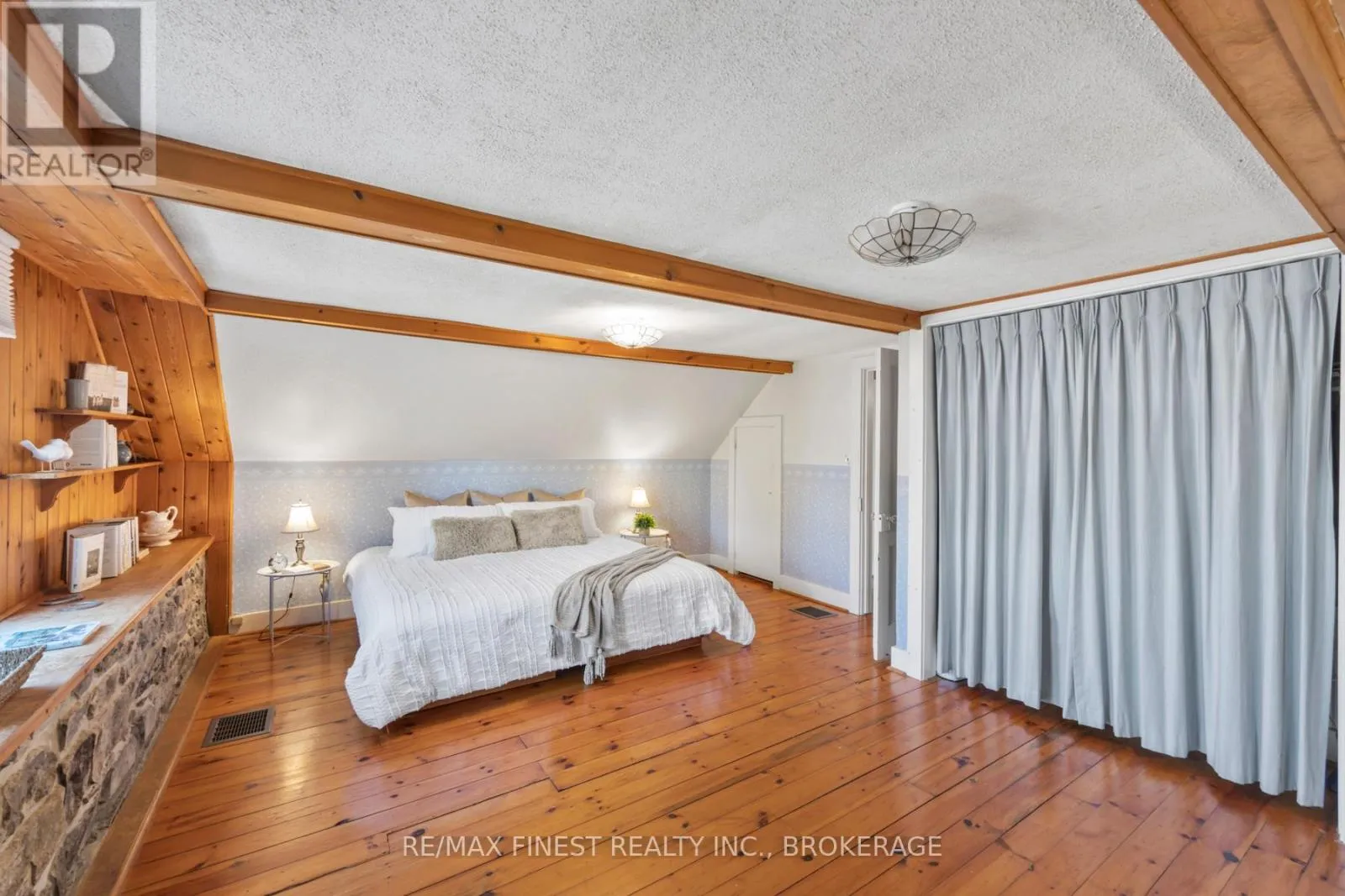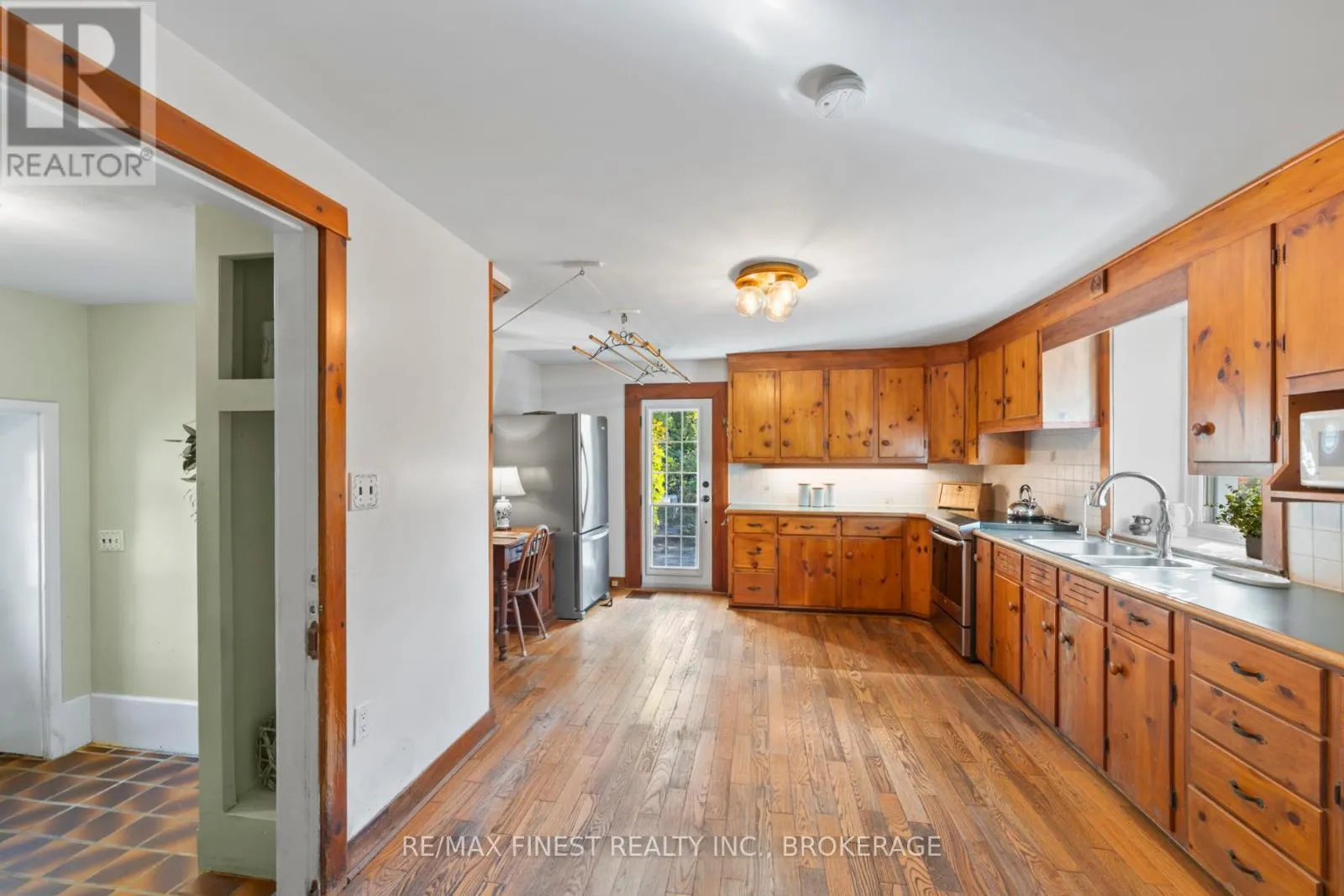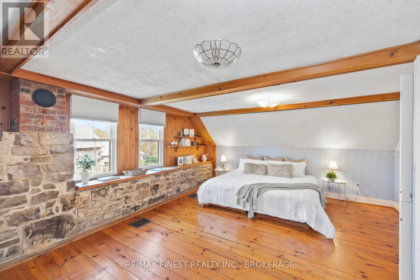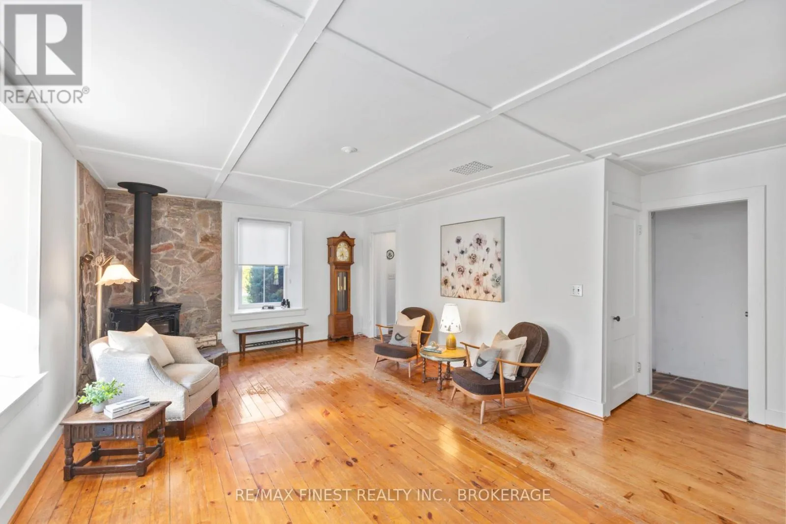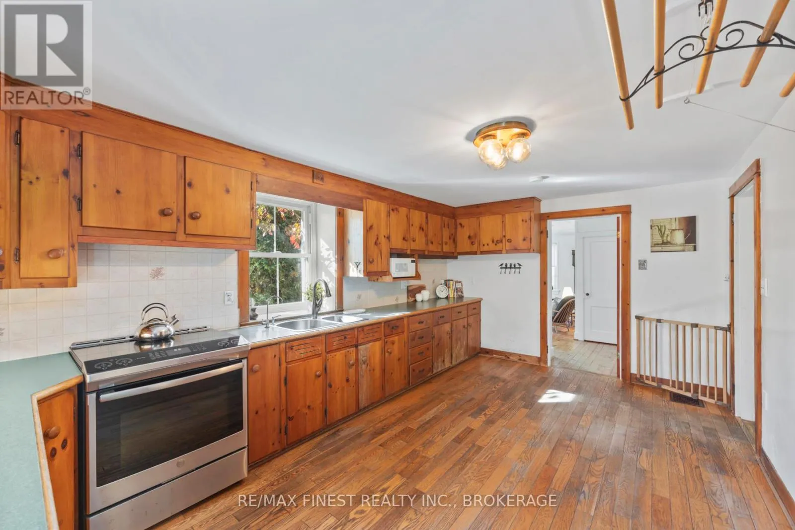 Cross Streets: Sydenham Rd. ** Directions: 7 minutes north of 401 on Sydenham Rd- Right turn and stay right. Welcome to this charming 1 1/2- Storey limestone homestead set on over 26 acres of beautifully maintained property with manicured trails. This picturesque setting offers the perfect blend of country living and outdoor adventure. The property is well-equipped with a 4-stall barn. limestone garden shed, fenced paddock, and fenced dog run-ideal for hobby farmers, nature lovers, or those seeking privacy and tranquility. Inside, the home features a traditional formal layout highlighted by solid pine floors and the timeless character of deep window sills. Sit in your favorite chair and warm yourself by the freestanding stove. The spacious, country-style eat-in kitchen with cupboard space to spare, opens to a deck with a retractable awning-perfect for enjoying peaceful morning coffee or evening sunsets. Although now overgrown, with some TLC to clear bush, the deck opens up to a second deck surrounding a once beautiful water garden. Large windows fill the home with natural light, and the exposed limestone wall in the primary bedroom adds a touch of rustic elegance. A true country retreat, just a short drive to city convenience- this unique property offers the best of both worlds (id:27476)