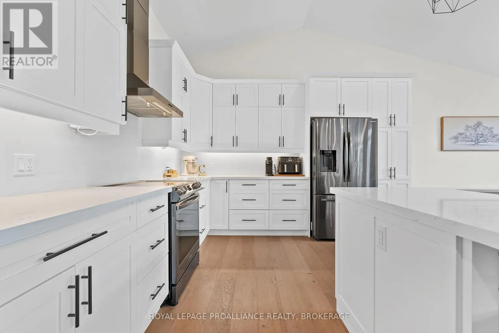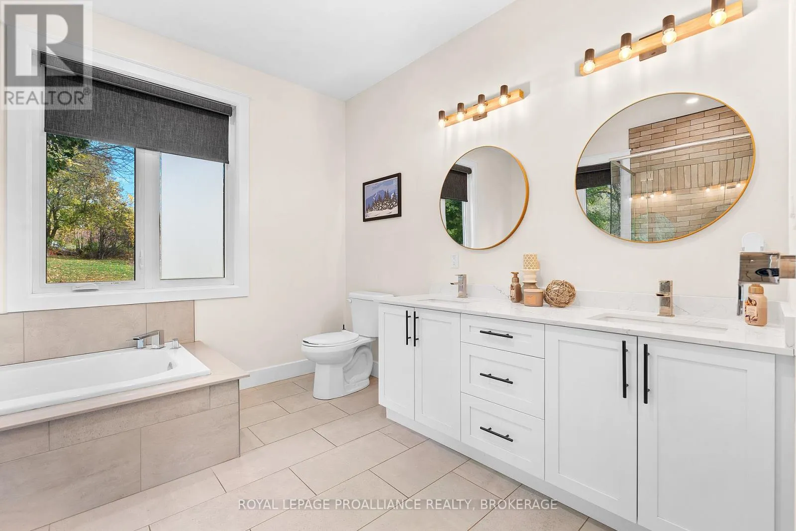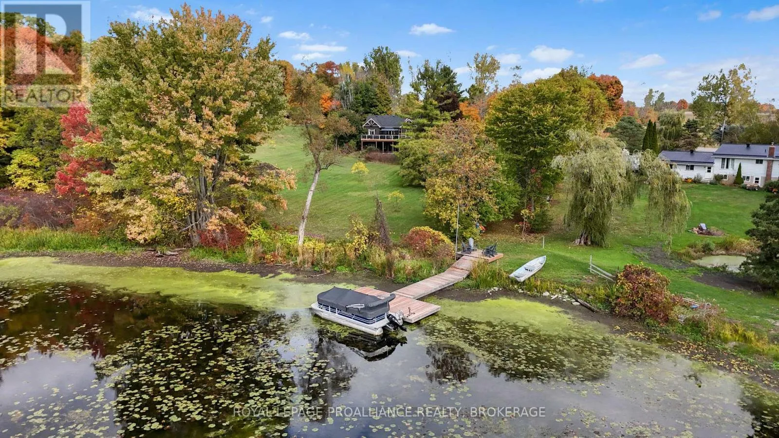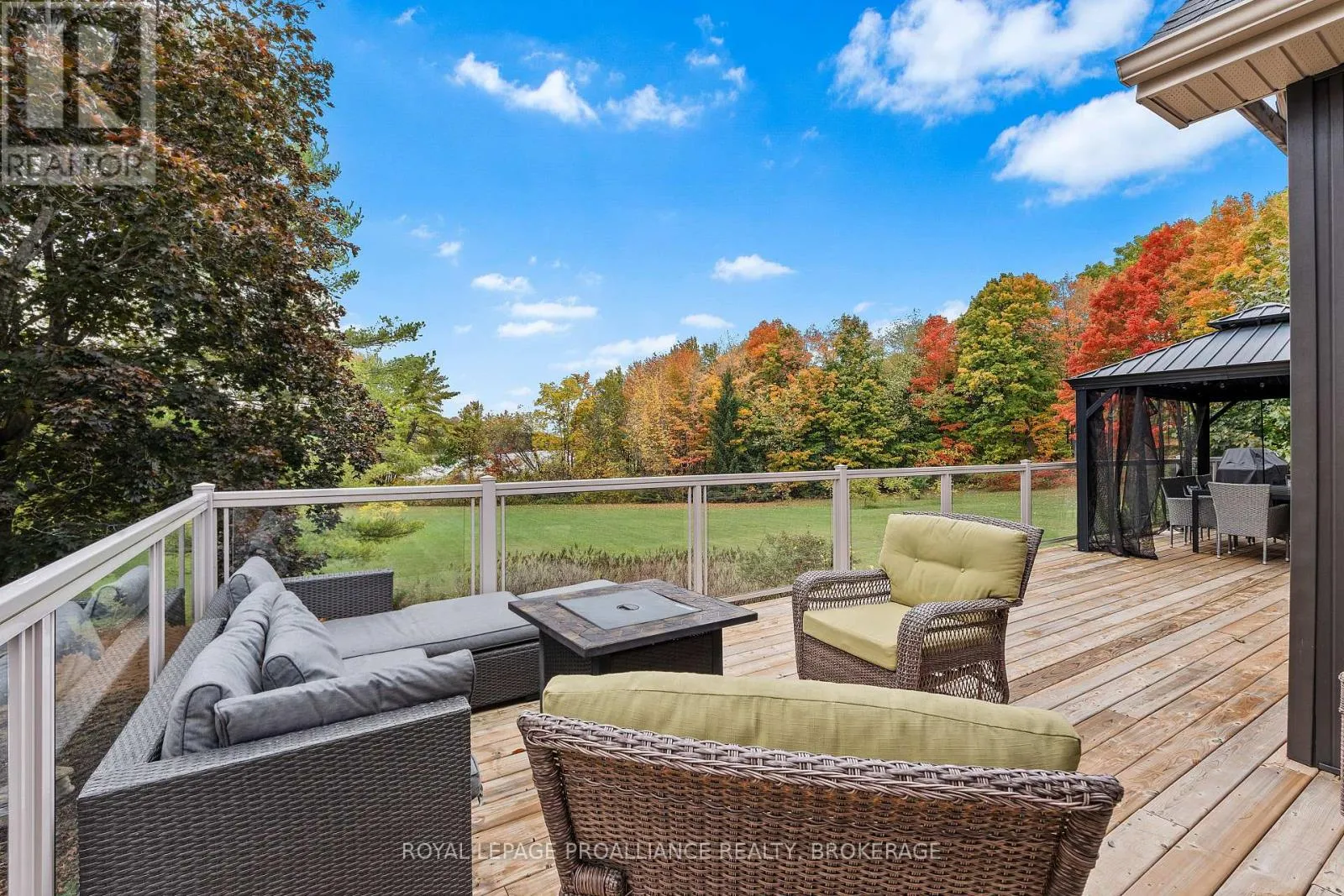 Cross Streets: Highway 15/Sunbury Rd. ** Directions: Highway 15 to Sunbury Road. Discover lakeside living at its best with this stunning custom-built bungalow, offering over 2,000 sq. ft. of main floor living space and nearly 60' of shoreline on Dog Lake. Crafted with both quality and comfort in mind, this home features an ICF foundation, soaring 10' ceilings, a vast partially finished walk-out lower level, and engineered hardwood & tile flooring throughout. The open concept impresses, with the bright kitchen featuring quartz countertops, premium cabinetry and large separate dining area open to the spacious living room - highlighted by a gas fireplace and 12-foot patio doors leading to a 650 sq. ft. deck with glass and aluminum railings providing breathtaking panoramic views of the area. The primary suite is tucked away at one end of the home offering privacy, and finished with cove ceilings and a spa inspired 5-piece ensuite with glass-enclosed shower and soaker tub. Two other bedrooms and a full bath are also here on the main level. The walk-out lower level provides extra flex space and finds in-floor heating roughed-in, and the attached SIX-car garage with epoxy flooring is incredible. This one is a beauty - with wonderful curb appeal from the stamped concrete front porch all the way around the yard space right to the waterfront with a new floating dock. Packed with upgrades and with high end finishes throughout, this one should not be missed. Survey, floor plans and supporting documents are available upon request. (id:27476)
