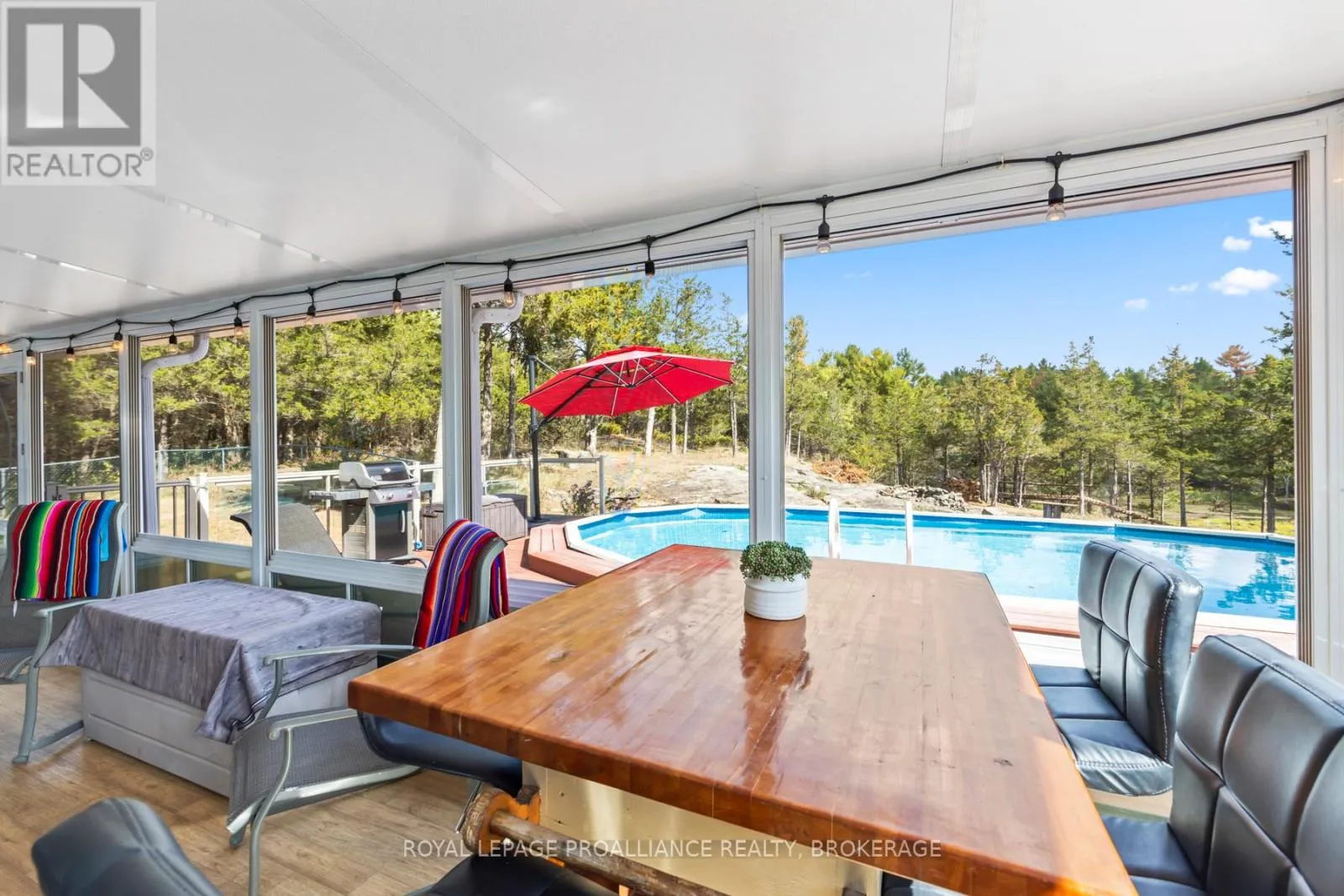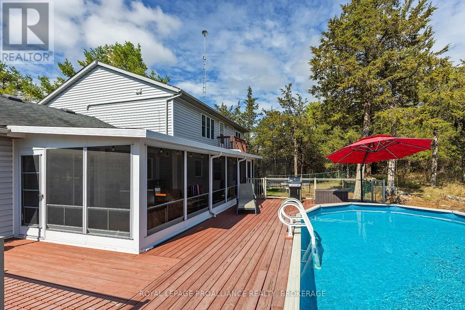 Cross Streets: North Shore Crescent and Perth Road. ** Directions: Perth Road to North Shore Cres (opposite of Rutledge Road). What a find! 4890 North Shore Crescent - a 2 storey 2,700 square foot home with oversized double car garage, two acres overlooking a pond, rugged Canadian shield, and only 15 minutes to Kingston. Life doesn't just happen at this beautiful home it unfolds across the entire property. Step past the Douglas-Fir timber-framed porch and into the spacious front entry with custom built-ins. From here, the main floor opens in two parts. To the right is where you'll find the open concept kitchen, dining and living room with pellet stove. It's all been recently renovated to take full advantage of the large floor plan. A little further still and you're in a sitting nook that connects to the sun-room and a refreshed half bath. Back to the more private end of the home is an office with views to the front and a flexible bonus room. There are three bedrooms upstairs. The primary, with its bright and expansive walk-in closet and new 4-piece bath, is spectacular. The kids bathroom is just as big and even comes with separate sinks for the little ones. The laundry is in the middle of all the action and has a door to the exterior for direct access to a clothes line. Light, proportion, and utility are the quiet luxuries here. Outside, the lot is both retreat and launch point: a pool set into the yard, a deck for entertaining, a screened porch for rainy nights, and an insulated bunkie (named Faraday) overlooking the pond ideal for guests, art, or quiet retreat. There are bike paths, out-buildings, and a veggie garden with raised beds. The edge of the pond is the perfect place to nature watch or just unwind and when the weather turns cold the pond becomes a massive backyard skating rink. 4890 North Shore Crescent is big, and that alone makes it a great option as a family home. Include the workshop-like garage, the bunkie, the pond, the trails, the pool, the exposed granite and its proximity to Kingston and you've just found yourself something very special indeed! (id:27476)