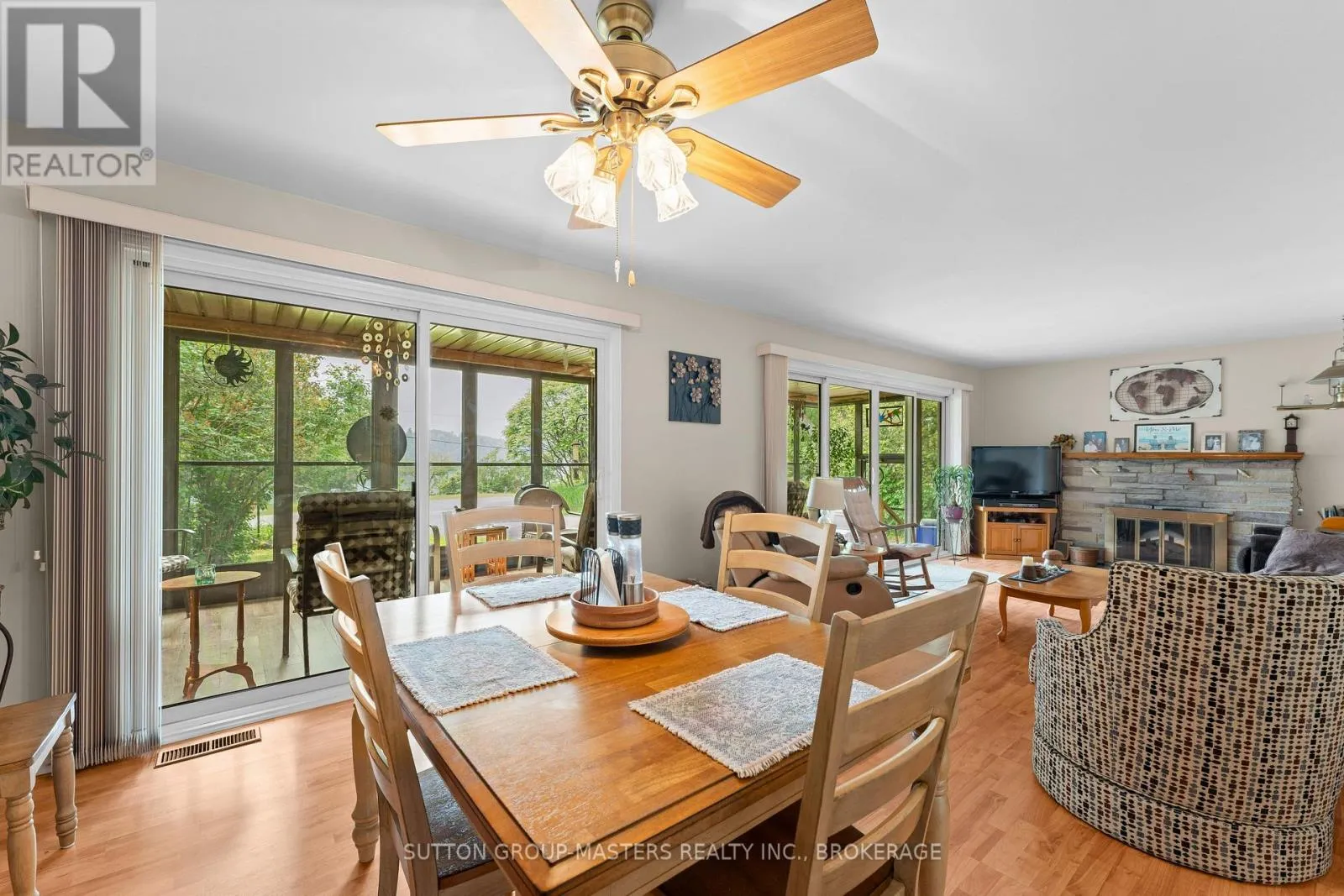 Cross Streets: Bedford and Clearwater. ** Directions: Bedford Rd to Clearwater Rd. Nestled on a combined 1.08-acre lot at 4667 Clearwater Road, this property offers a prime lakeside lifestyle just minutes from Sydenham. The unique setup includes an interior lot and a waterfront lot across the lane, featuring 121 feet of natural, south-facing shoreline with deep water (8+ ft) perfect for swimming and large boats.The main home provides 2,279 sq. ft. of comfortable living space with 3 bedrooms and1.5 bathrooms. Highlights include a combined living/dining room with a fireplace, a bright 3-season porch with stunning lake views, a rear deck, and a bonus family room above the attached double garage. Outdoor amenities are exceptional, with dockage for 5 boats, a power boat lift, and powered dock lifts. A key feature of the property is a heated, insulated bunkie located near the waters edge; prospective buyers are advised to conduct their own due diligence regarding any structures near the shoreline, including verification of permits, surveys, and land ownership with the Township of South Frontenac and MNR. Additional assets include a brand new, insulated, and heated 24 x 30 detached garage/workshop. Recent updates feature a new steel roof (2023), forced air propane furnace, central A/C, and an optional airtight wood furnace (2022). This is a rare opportunity to own a versatile property, sold as-is, where location meets potential. (id:27476)