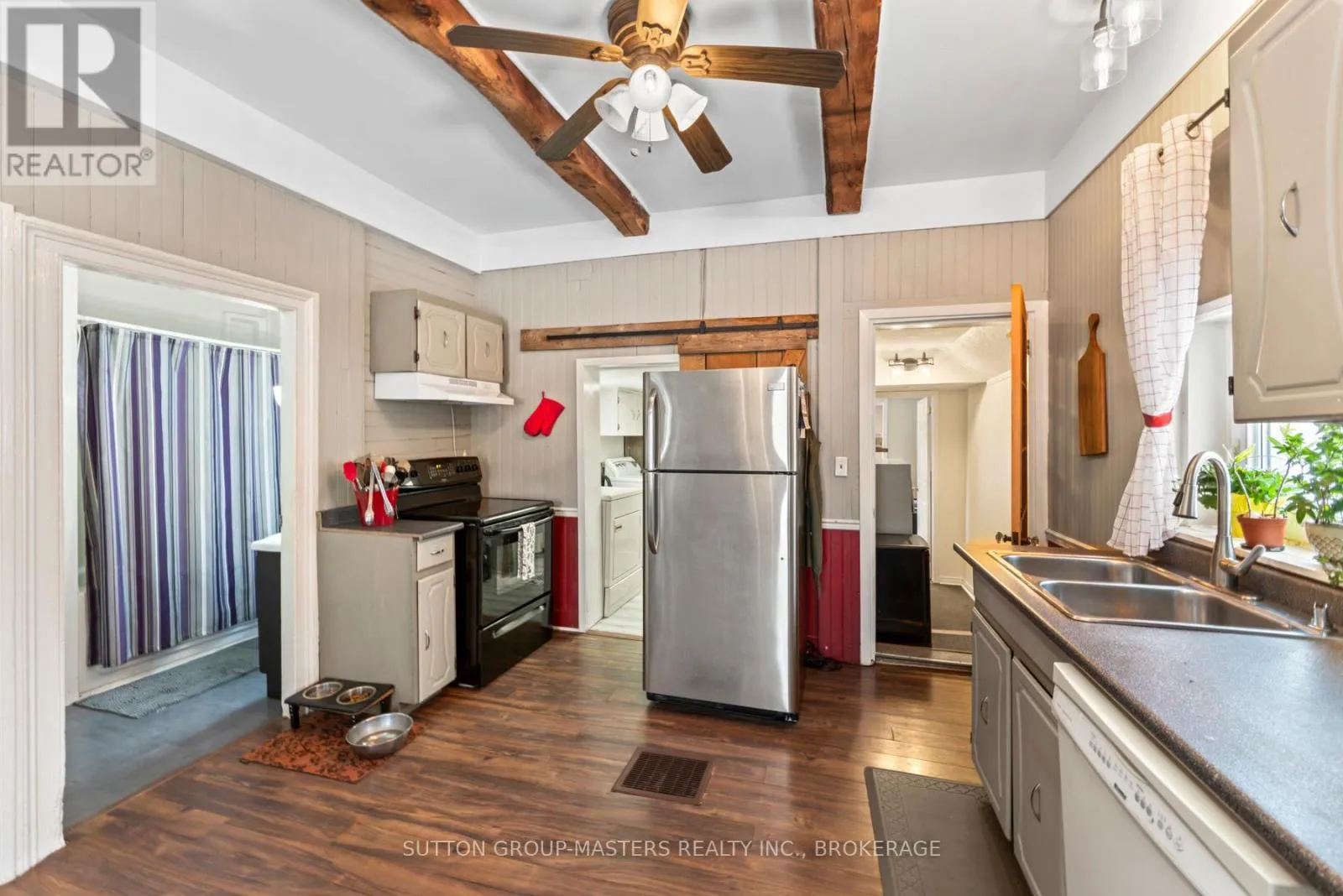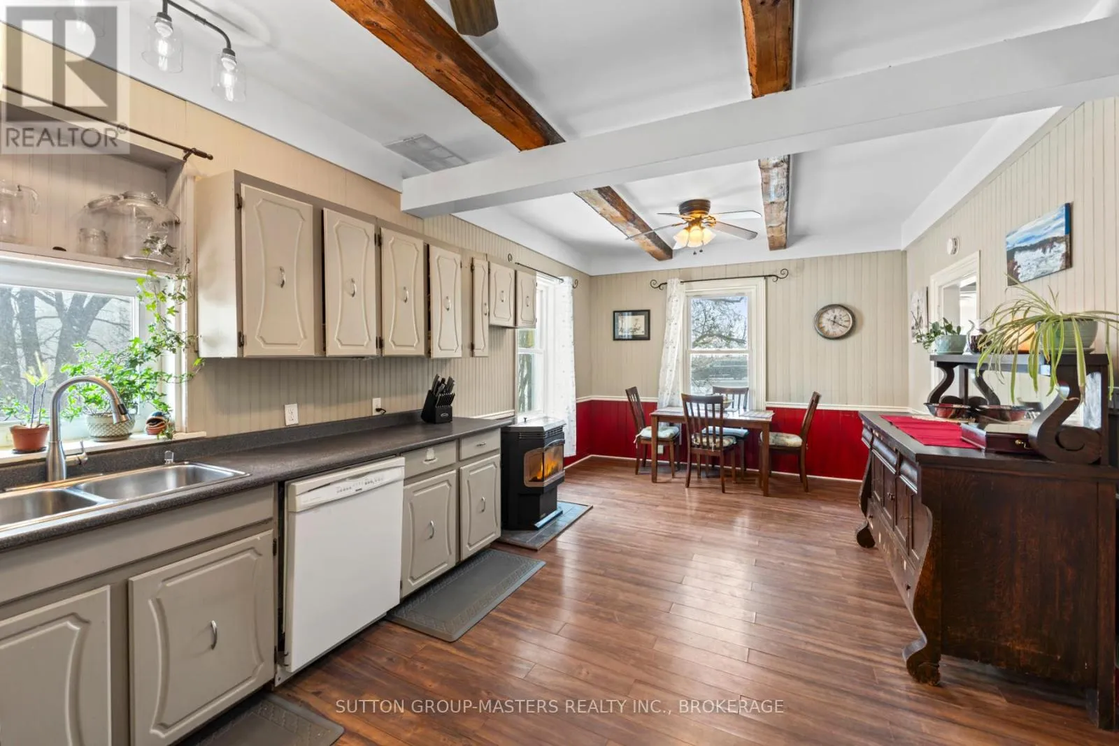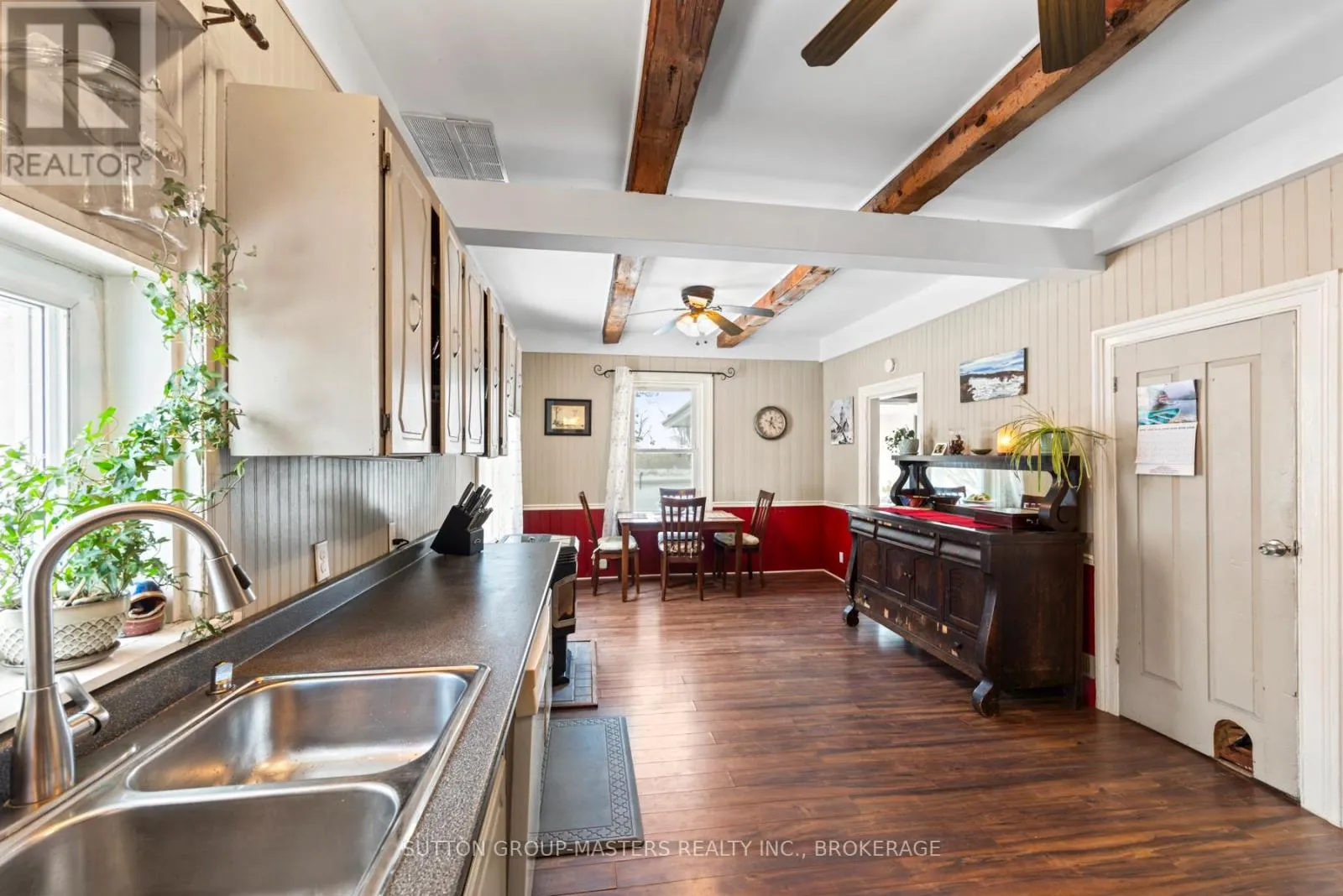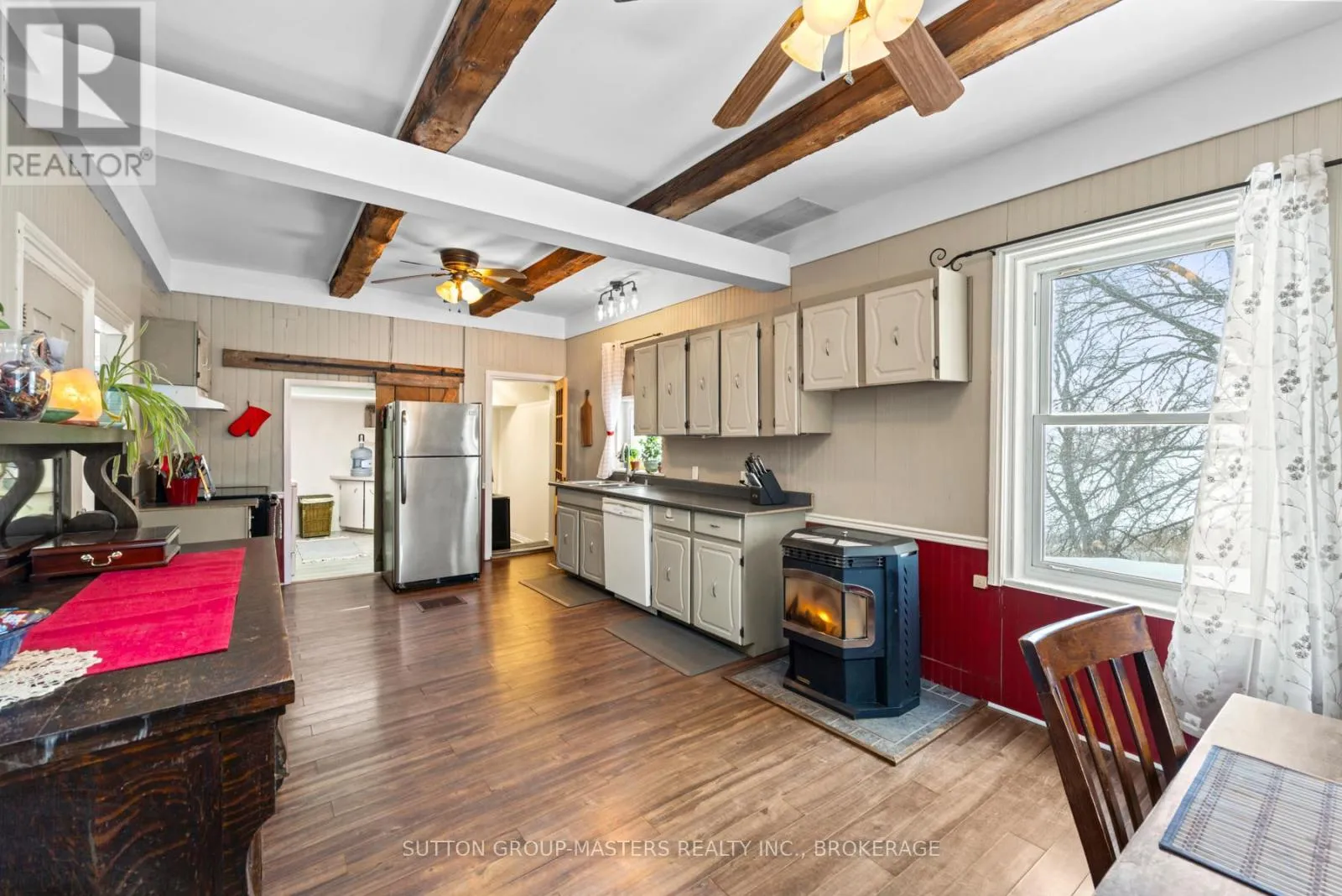 Cross Streets: Wilton road and Henderson. ** Directions: North on Hwy 38, left on Henderson, right on Wilton. This peaceful rural setting of almost 2 acres is bordered by the tree line of a farm field to the north and backs onto forest to the rear with a pond which offers the tranquility of country life, with everything Kingston has to offer less than 20 minutes away. Just down the road is Harrowsmith and a public school. Built in 1875, this charming farmhouse blends rustic character with thoughtful modern updates for a comfortable country lifestyle. The outbuildings and essentials to country living are ready for you to enjoy including a detached garage, older barn, chicken coop, garden shed, raised garden beds, greenhouse, and even a roadside stand. Farm fields greet you from the front entrance. Step inside through the enclosed porch to a classic centre hall plan. The charm of the spacious country kitchen is in the exposed beams, high ceilings, painted wood walls and warmth from the pellet stove. Adjacent is a convenient bathroom with updated tub, toilet, sink, and vanity, as well as a main floor laundry room and a pantry. The living room features wide-plank pine floors, original tin ceiling, and french doors to a cozy den. Tucked in the back is a bright office space with a separate back entrance leading to a patio, paved drive, and detached garage. Upstairs, the landing offers a charming reading nook/office area. Large master plus two bedrooms have wide plank pine floors in keeping with its heritage, but don't let the old style concern you! This home is built to last and fortified with updates to ensure its efficiency - steel roof and eavestroughs(2025), new septic tank and plumbing (2025), field bed replaced approx.15 years ago, new hot water tank (2025), 100-amp breakers, propane furnace (2020), Well UV light, newer filter and pressure tank (2025), spray foam insulation in cellar and blown-in insulation in attic and walls. This is a home built to last exuding warmth and welcoming you for your next chapter. Flexible closing. (id:27476)