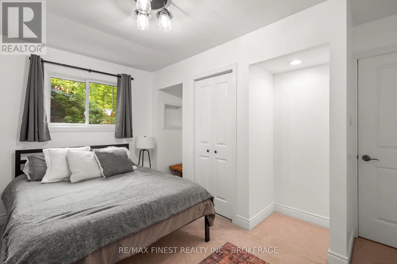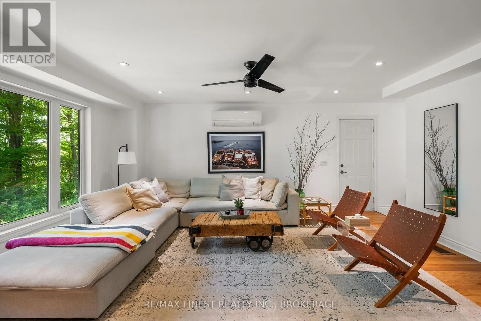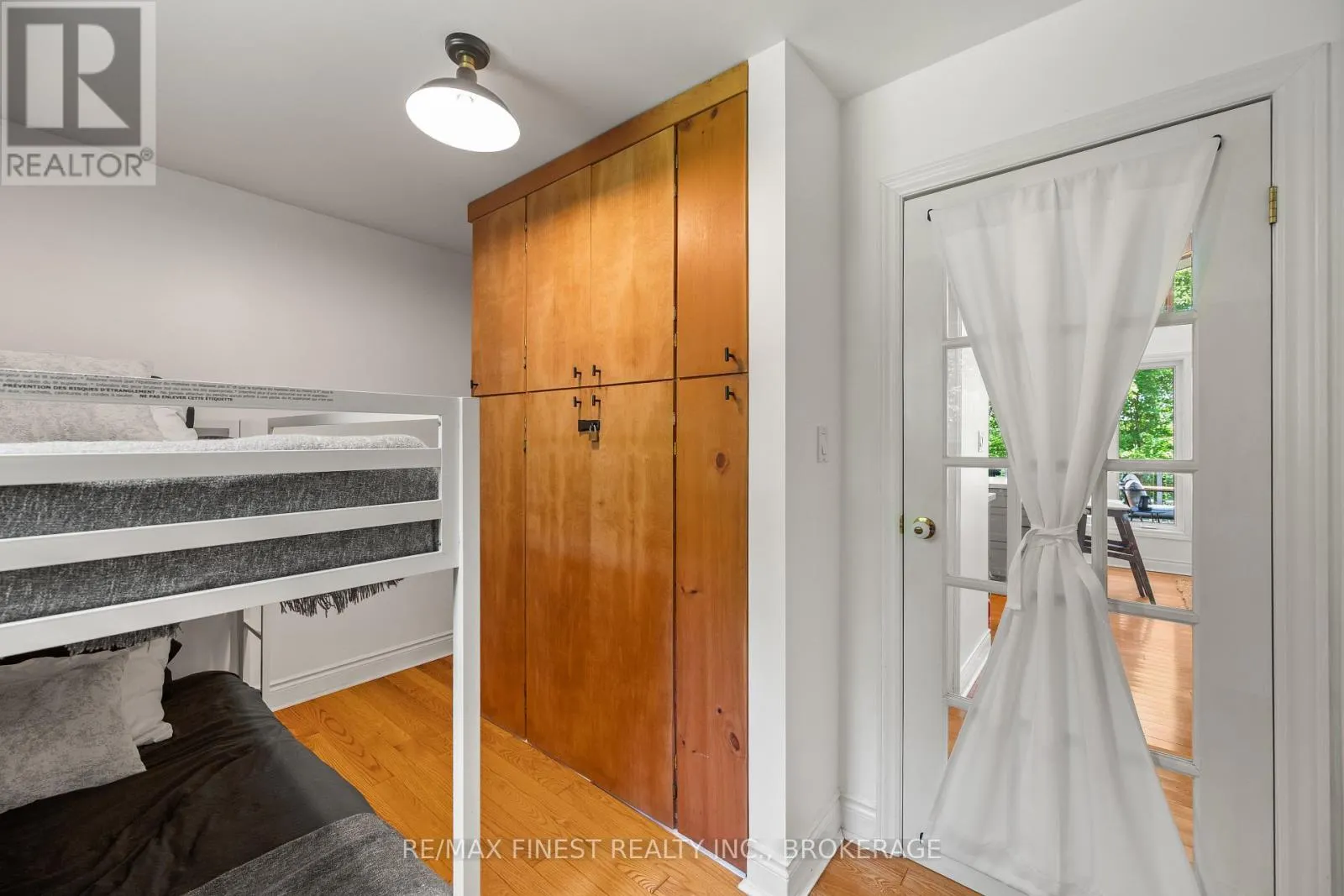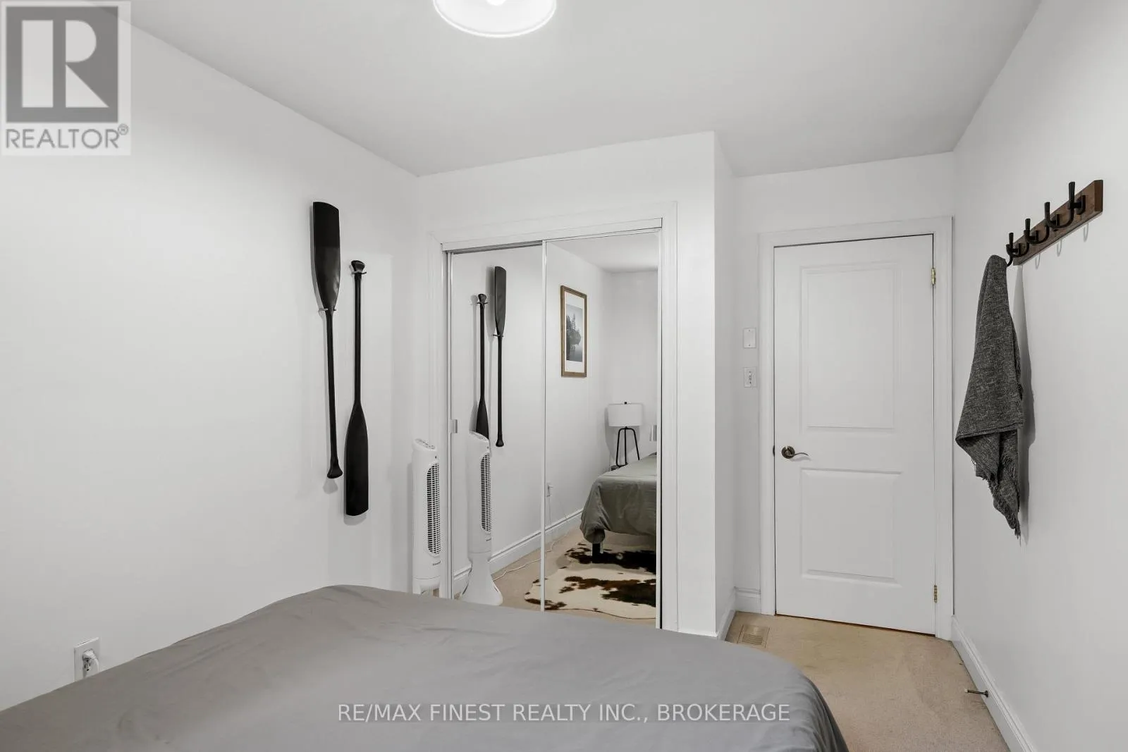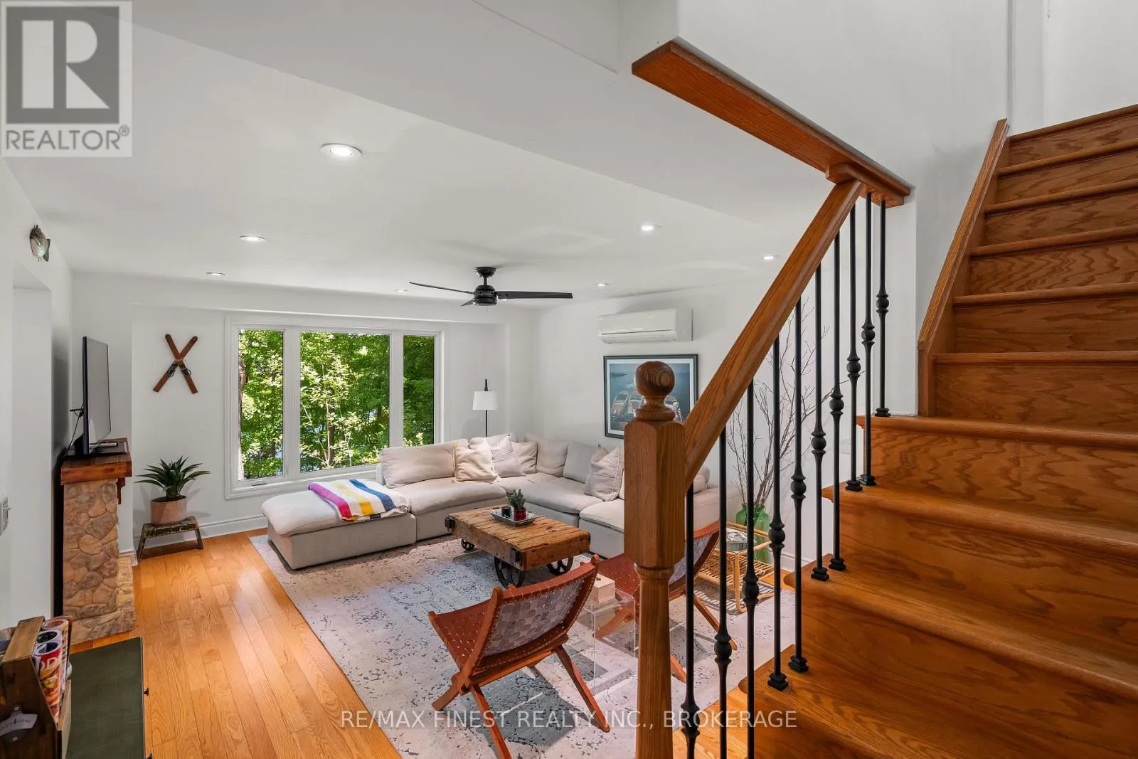 Cross Streets: Deyos Rd. ** Directions: Hwy 38,to Desert Lake Rd, to Deyos Rd.to OakwoodLane. This 1890 sq ft custom-built, year-round 5-bedroom, 2-bath home on the pristine shores of Thirteen Islands Lake. Tucked into over 1.4 acres of private, wooded land, this peaceful retreat offers clean waterfront, gorgeous views, excellent drive up access and a nearby boat launch. Inside, you'll find a bright, open-concept layout featuring cathedral ceilings, a cozy wood stove, and wall-to-wall windows overlooking the trees and water. The kitchen and dining area open onto a brand new 30-ft deck (2024), perfect for entertaining. The main floor includes three bedrooms, a 4-piece bath, and an updated screened-in sunroom (2021). Upstairs, the private primary suite features a 3-piece ensuite, walk-in closet, and its own balcony with stunning lake views. A second upstairs bedroom doubles as an office or guest space. Major updates include: ductless heat pump/AC (2025), new waterfront deck (2021), water pressure tank(2025), septic bed emptied (2024), and brand new fridge, washer/dryer, and propane fire pit. This turn-key home is being sold fully furnished with all water toys (kayak, canoe ,paddleboard, 12-ft aluminum boat with motor) and property maintenance tools included. Proven short-term rental income of $50k + from July to September, with potential for year-round bookings and requests already into 2026. A rare chance to own one of cottage country's best-maintained and most charming lakefront homes for your family or a turn-key high earning passive income investment property. (id:27476)