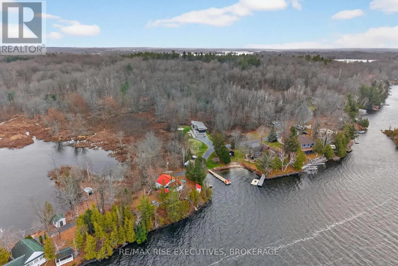 Cross Streets: Battersea and Millburn. ** Directions: Battersea Rd to Millburn to Ormsbee. Impeccably built with architectural sophistication, this contemporary lakefront residence showcases dramatic window walls, rich stone columns, and a sprawling upper balcony perfect for soaking in the surrounding beauty. With soaring13-foot ceilings on the main level, a metal roof with leaf guards, and a design that blends modern lines with warm natural textures, the home offers an elevated living experience from the moment you arrive. Set on 85 ft. of Dog Lake waterfront, on just under an acre and part of the renowned Rideau System, the property offers exceptional water views, a 55 ft. permanent dock, and recreational opportunities with great fishing and impressive water depth - up to70 feet directly out front. The home also sits on a well-maintained private road with year-round plowing and maintenance for only $500 annually, and features a drilled well providing an abundance of good water. Built on a slab just 10 years ago, the home has been thoughtfully engineered with six inches of underside insulation for comfort, and longevity. Inside, the layout is both functional and luxurious, featuring two bedrooms on the lower level and a private master retreat upstairs complete with its own balcony and walk-in closet. The home is hot-tub ready with a Muskoka room designed for year-round enjoyment, and also includes a propane gas feed for your barbecue -ideal for lakeside entertaining. The 200-amp electrical panel comes equipped with a pigtail for easy generator hookup. All appliances, including the washer and dryer, are included with the sale, making this a turnkey opportunity for those seeking a high-quality, low-maintenance lifestyle. Further, the 160 sq. ft. shed offers excellent storage, and practical conveniences such as door-side garbage and recycling pickup and even Amazon delivery, ensure effortless day-to-day living. (id:27476)