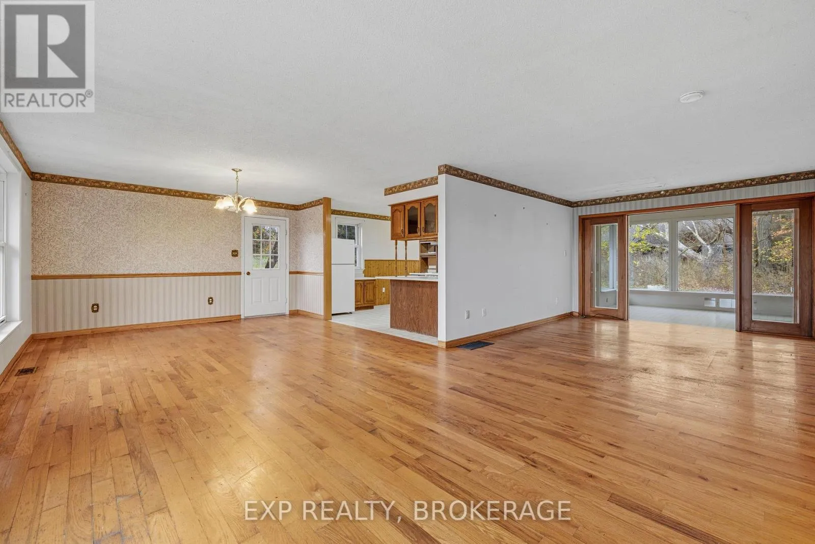 Cross Streets: Hidden Valley Road. ** Directions: approx 2.5 kms north of Perth Road Village. Here's a chance to own an affordable property with a million dollar view! Situated on a nicely-treed 1 acre lot just outside Perth Road Village and built into a gentle slope, this home is perfect for someone who sees its potential. The main level is spacious with a large kitchen and open dining/living room combination. The hardwood flooring adds warmth to the main level and the windows provide lots of natural light as well as a view of Little Franklin Lake. In addition, there's a cozy sunroom for relaxing, 2 bedrooms, and a 4-piece bath. The lower level is partially finished and could be transformed into a rec room or additional bedroom(s). The basement also houses the laundry area and utility room and provides plenty of storage space.There is an entrance to the garage from the lower level. The location is convenient, just 20 minutes south to Kingston and 20 minutes north to Westport. This is an estate sale and it is being sold in "as is" condition. (id:27476)