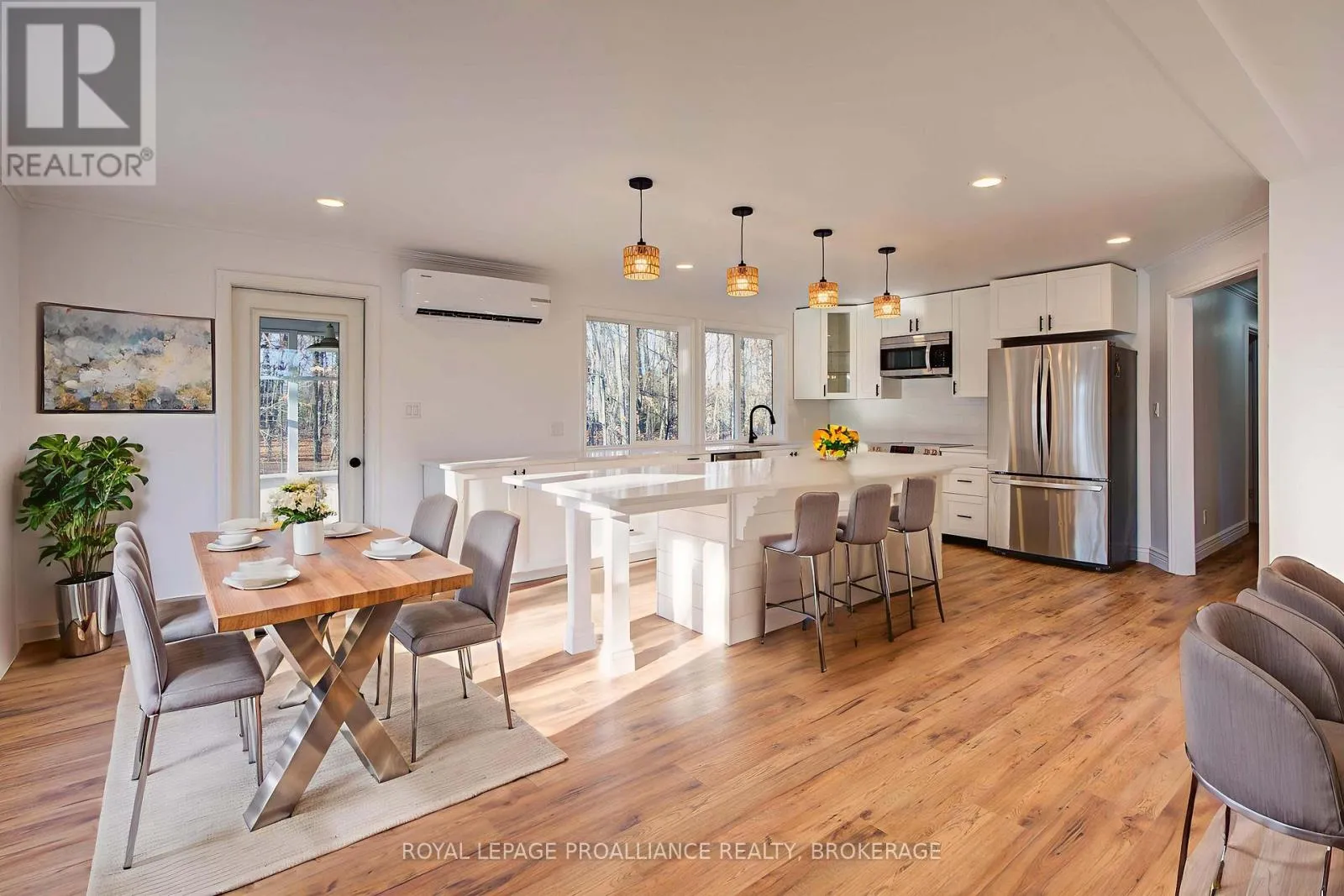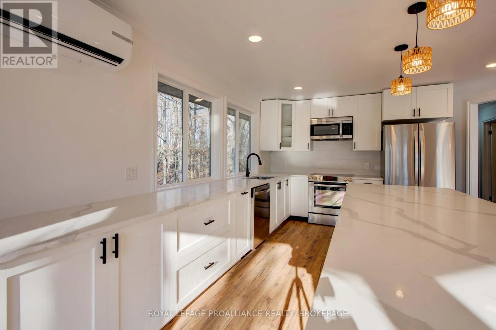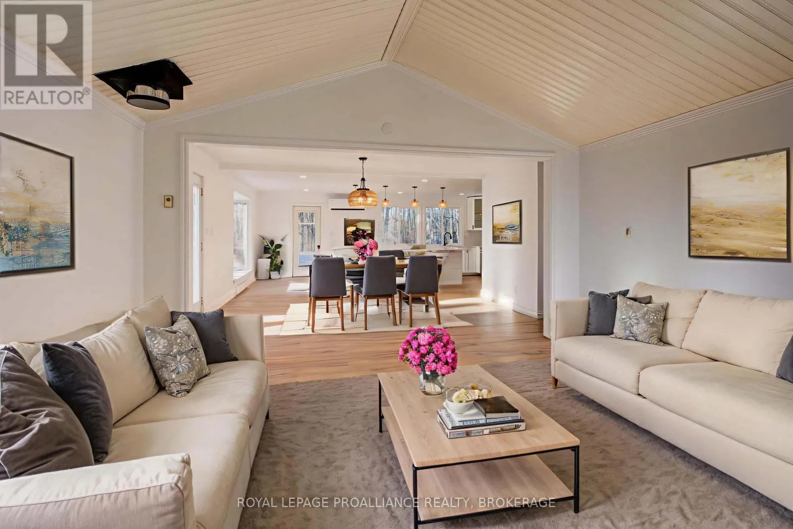 Cross Streets: Larry York and Battersea Rd. ** Directions: Battersea Road north, just before Battersea turn left onto Larry York Rd. Welcome to 4469 Larry York Road, a beautiful, fully renovated open concept bungalow nestled on nearly 3 acres of peaceful treed country property, just 15 mins north of Kingston. This thoughtfully designed 1690 sq ft 3 bedroom, 2 full bathroom home offers open-concept single level living and a gorgeous amount of natural light through all the brand new windows. The newly updated kitchen is huge, open and features an island with breakfast bar, stainless steel appliances, quartz countertops, tile backsplash, and a generous amount of cabinetry. The dining area, open to the living room with vaulted ceilings, offers access to the side deck and yard. A 3 season sunroom, overlooking the rear woods, is also off the kitchen/dining area. The hallway leads you to the bedrooms as well as a main floor laundry room with access to the double attached garage. The generous sized primary bedroom offers a 5pc ensuite with a beautifully tiled shower & separate soaker tub and a walk-in closet. There are also two additional bedrooms, & another full 4pc bath and this wing of the home. "Going Green" with a brand new heat pump system and 4 separate wall units for even consistent heating and cooling. Metal roof on the house and the garage. A crawl space is access through the garage and provides tons of room for storage. The property is gorgeous, the house is fully renovated and the commute is an easy one so put your feet up and enjoy this peaceful easy feeling with the perfect blend of country living & convenience. (id:27476)