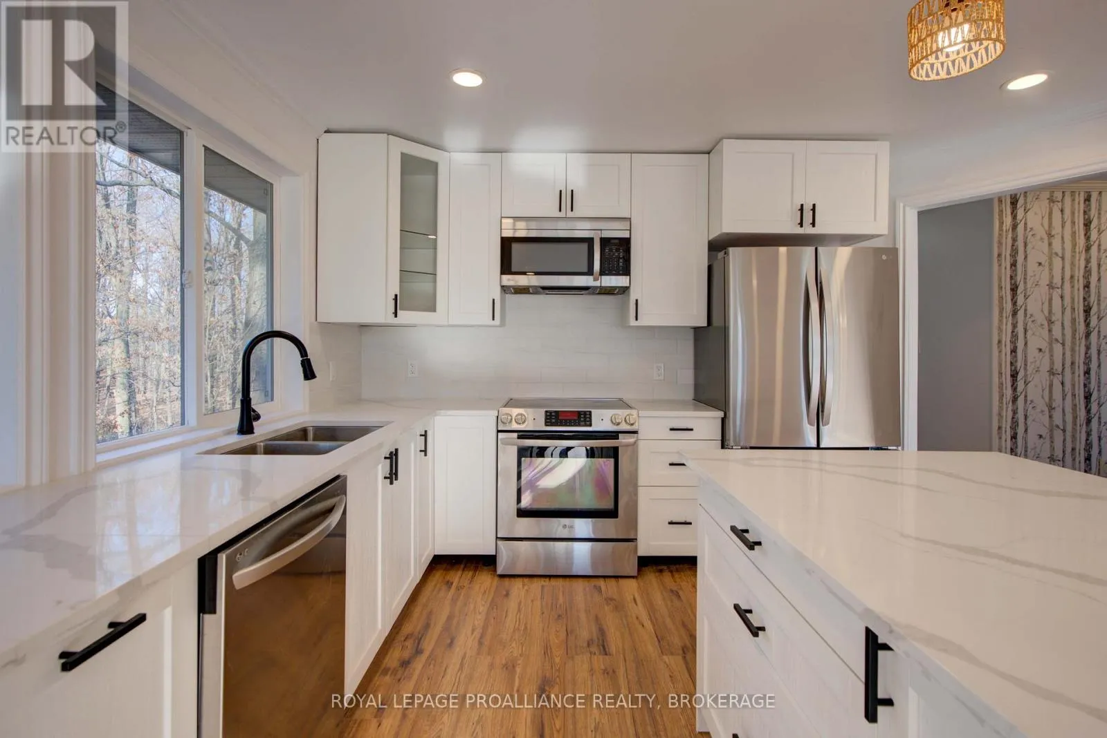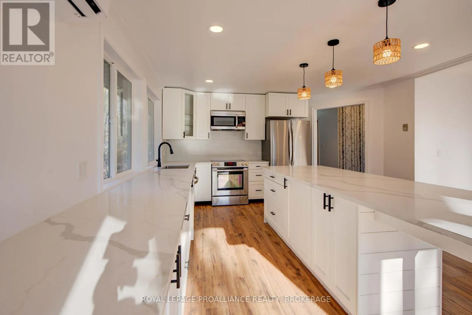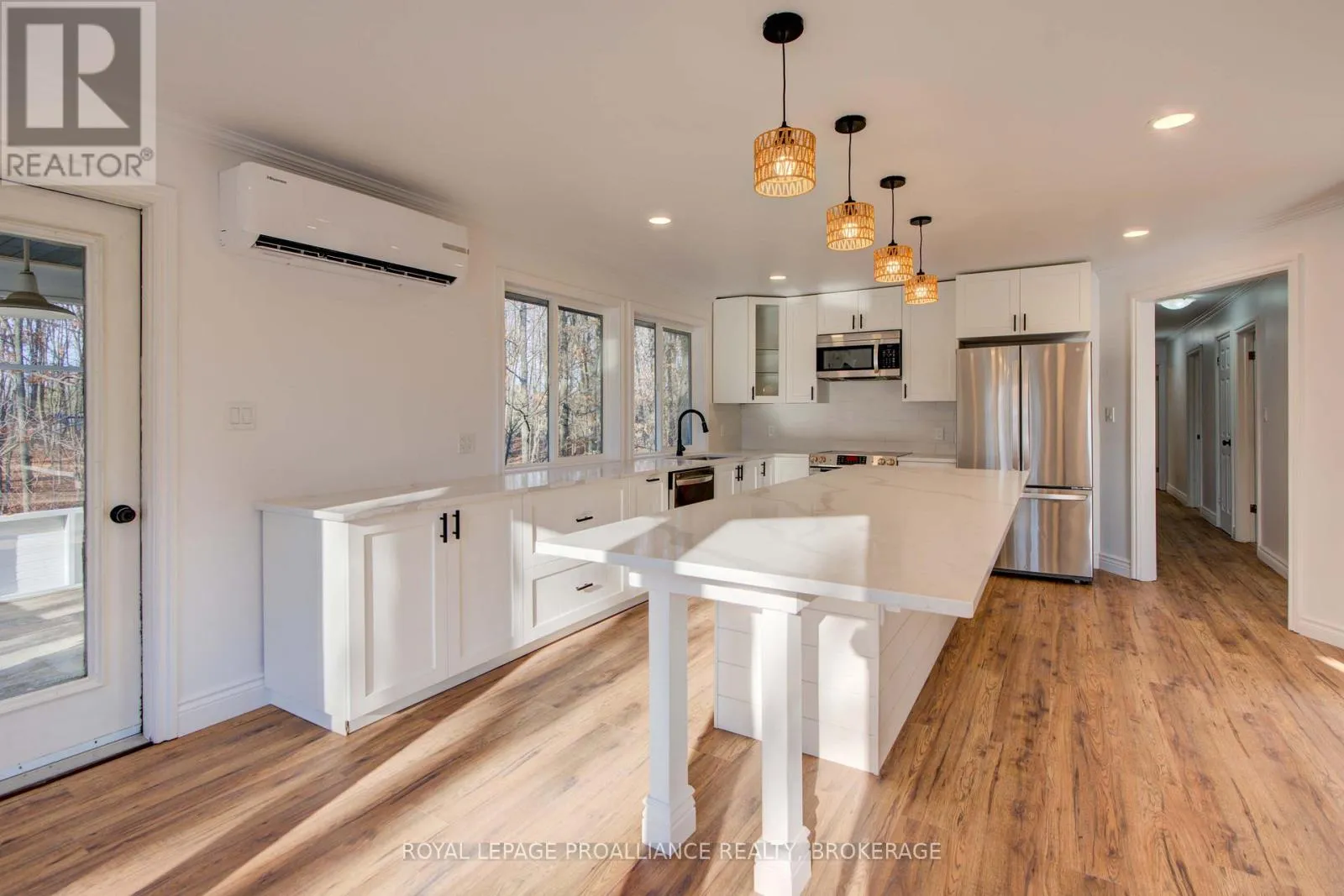 Cross Streets: Larry York and Battersea Rd. ** Directions: Battersea Road north, just before Battersea turn left onto Larry York Rd. Welcome to 4469 Larry York Road, a beautiful, fully renovated open concept bungalow nestled on nearly 3 acres of peaceful treed country property, just 15 mins north of Kingston. This thoughtfully designed 1690 sq ft 3 bedroom, 2 full bathroom home offers open-concept single level living and a gorgeous amount of natural light through all the brand new windows. The newly updated kitchen is huge, open and features an island with breakfast bar, stainless steel appliances, quartz countertops, tile backsplash, and a generous amount of cabinetry. The dining area, open to the living room with vaulted ceilings, offers access to the side deck and yard. A 3 season sunroom, overlooking the rear woods, is also off the kitchen/dining area. The hallway leads you to the bedrooms as well as a main floor laundry room with access to the double attached garage. The generous sized primary bedroom offers a 5pc ensuite with a beautifully tiled shower & separate soaker tub and a walk-in closet. There are also two additional bedrooms, & another full 4pc bath and this wing of the home. "Going Green" with a brand new heat pump system and 4 separate wall units for even consistent heating and cooling. Metal roof on the house and the garage. A crawl space is access through the garage and provides tons of room for storage. The property is gorgeous, the house is fully renovated and the commute is an easy one so put your feet up and enjoy this peaceful easy feeling with the perfect blend of country living & convenience. (id:27476)