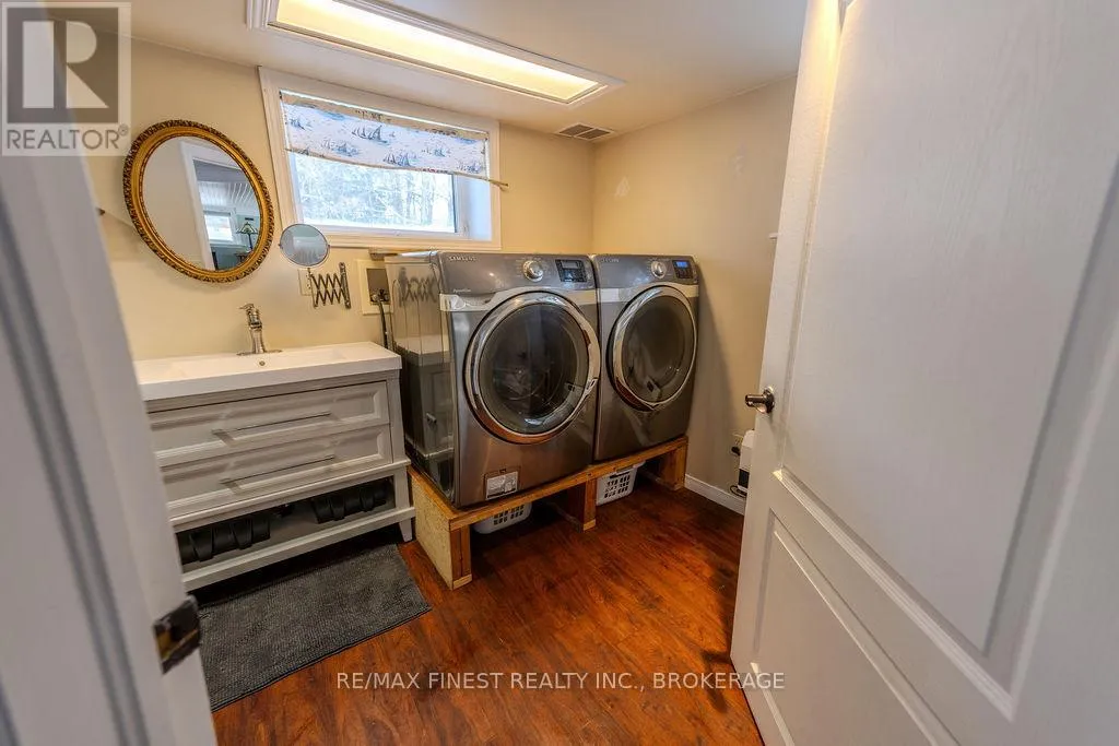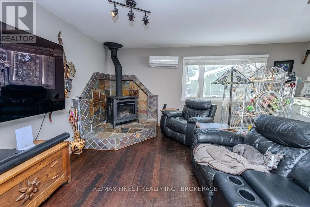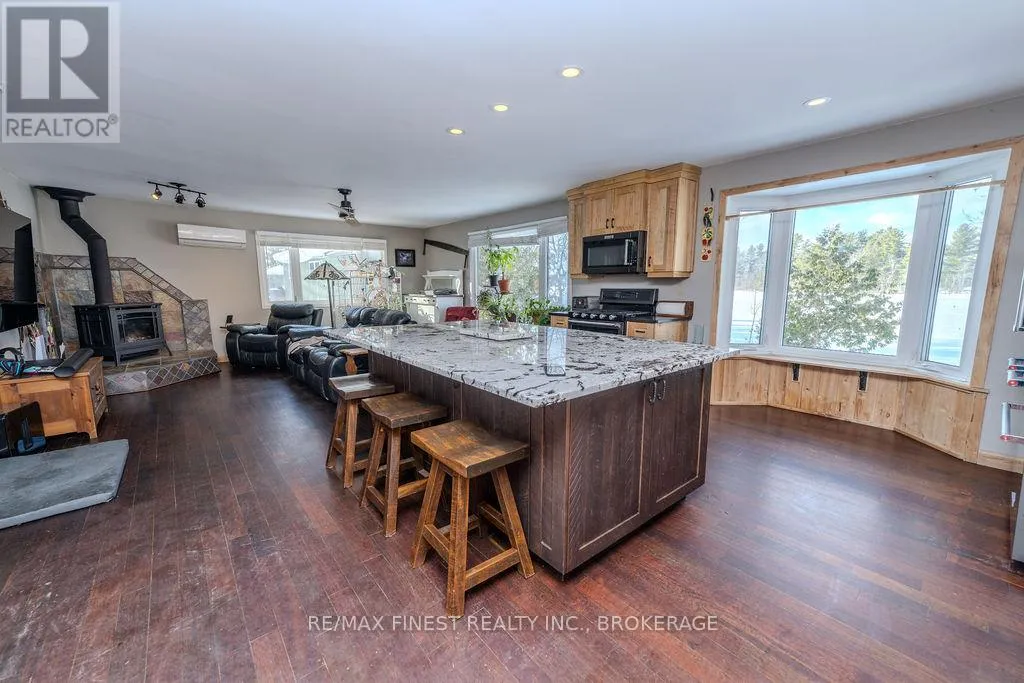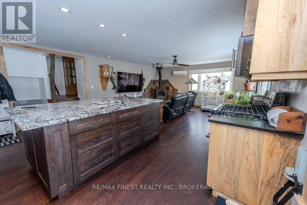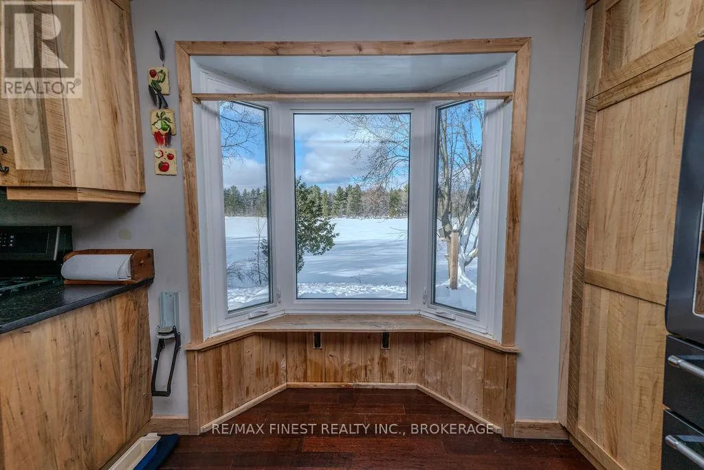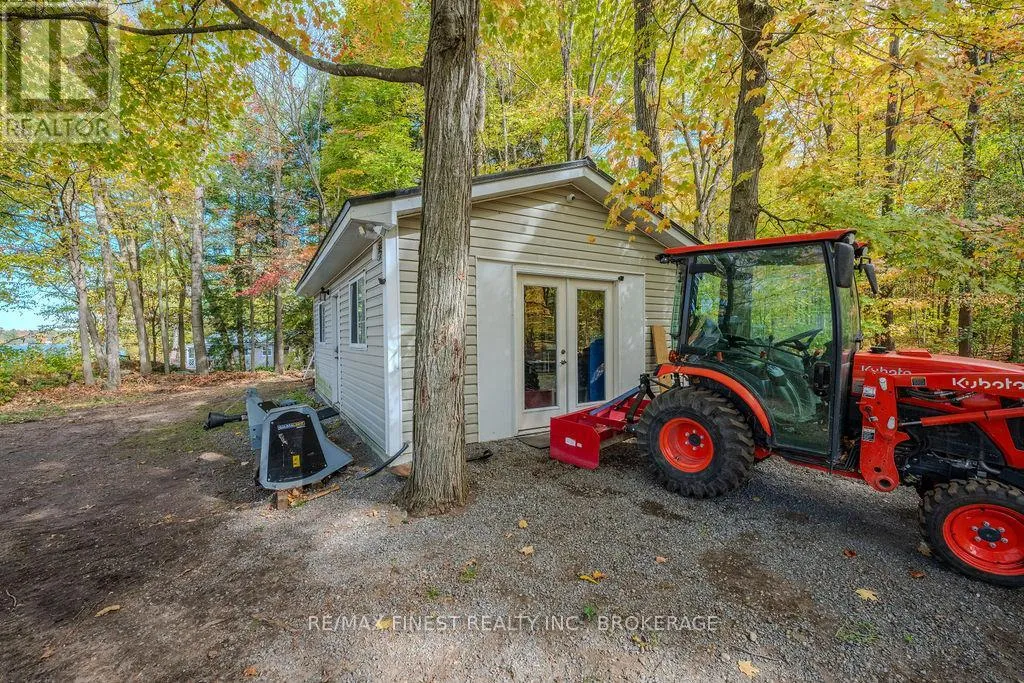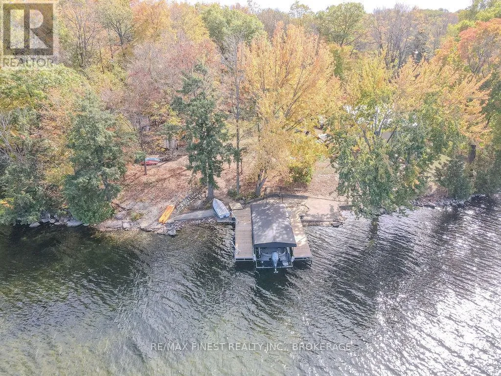 Cross Streets: Morrison and Wilmer. ** Directions: Rutledge Rd to Wilmer Rd to Morrison Rd to Perry Lane. Where the water greets the sky and the trees stand as timeless guardians, you'll find 221 feet of clean, inviting shoreline on Sydenham Lake. A gentle, gradual entry invites you to wade, launch, or linger. This level, private property blurs the line between indoors and out. From the extensive two tier deck, the view is nothing but water and horizon-an uninterrupted canvas of morning sunrises and evening reflections. Inside, warmth and craftsmanship embrace you. An open-concept kitchen and living area, finished with granite countertops and maple cabinetry, flows seamlessly around a flickering gas fire. Three bedrooms and two-and-a-half baths provide comfort, while the lower-level walk out-perfect as a bedroom or family retreat-offers its own connection to the outdoors. Practical comforts weave into the charm: a ductless heat pump, two fireplaces, and a durable metal roof ensure peace of mind. The detached, fully insulated and heated garage-currently a dream-worthy home gym-adds enviable versatility. Among towering trees and whispering breezes, privacy and serenity reign. Located at the end of a dead end lane with only one year round neighbour, there is space to roam, to gather, to pause-and to live with the rhythm of the lake as your constant companion. (id:27476)