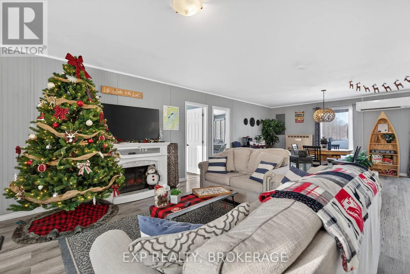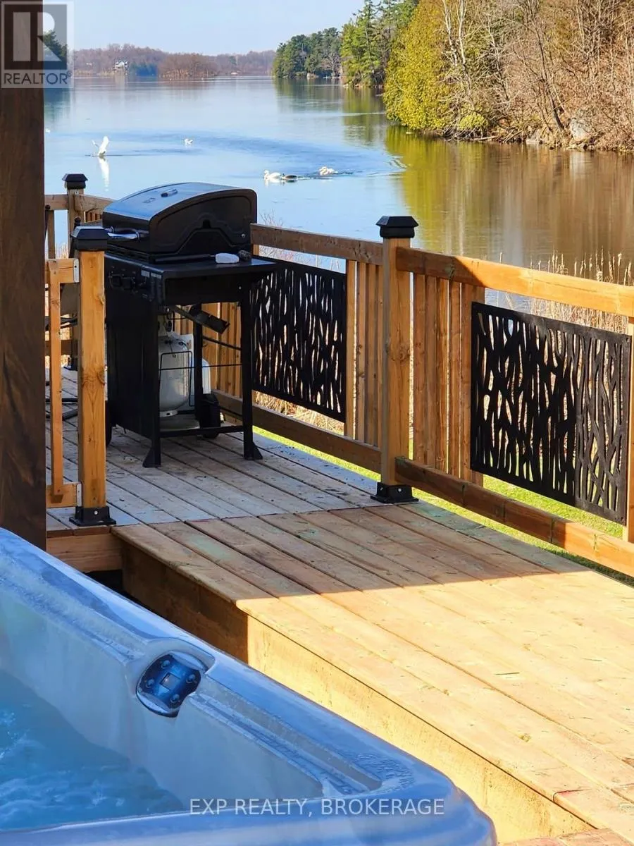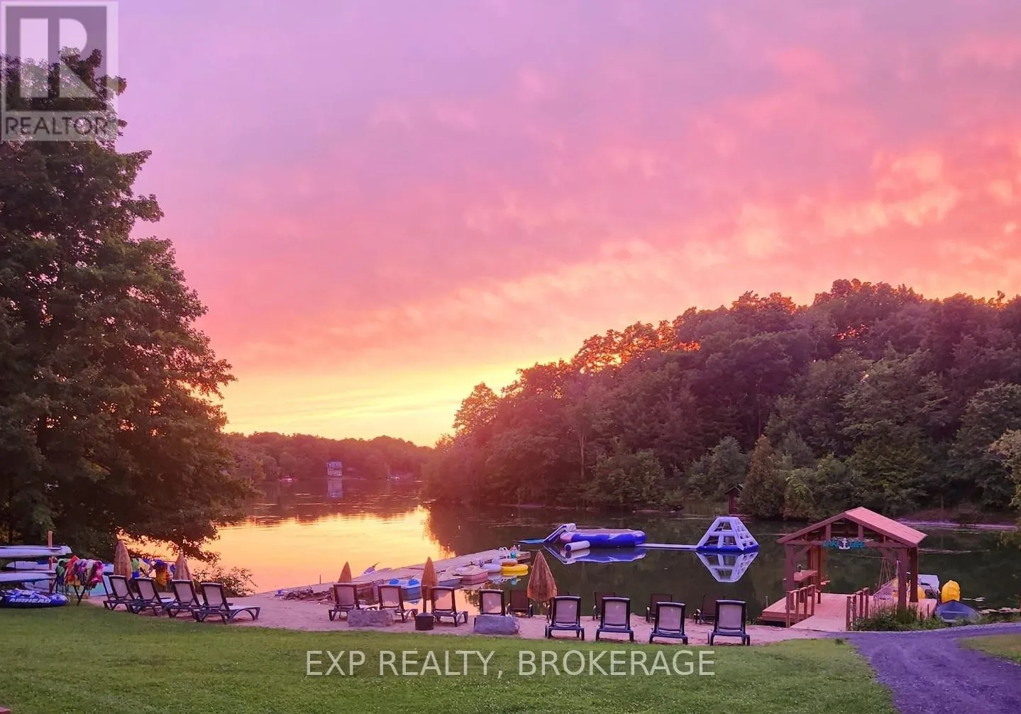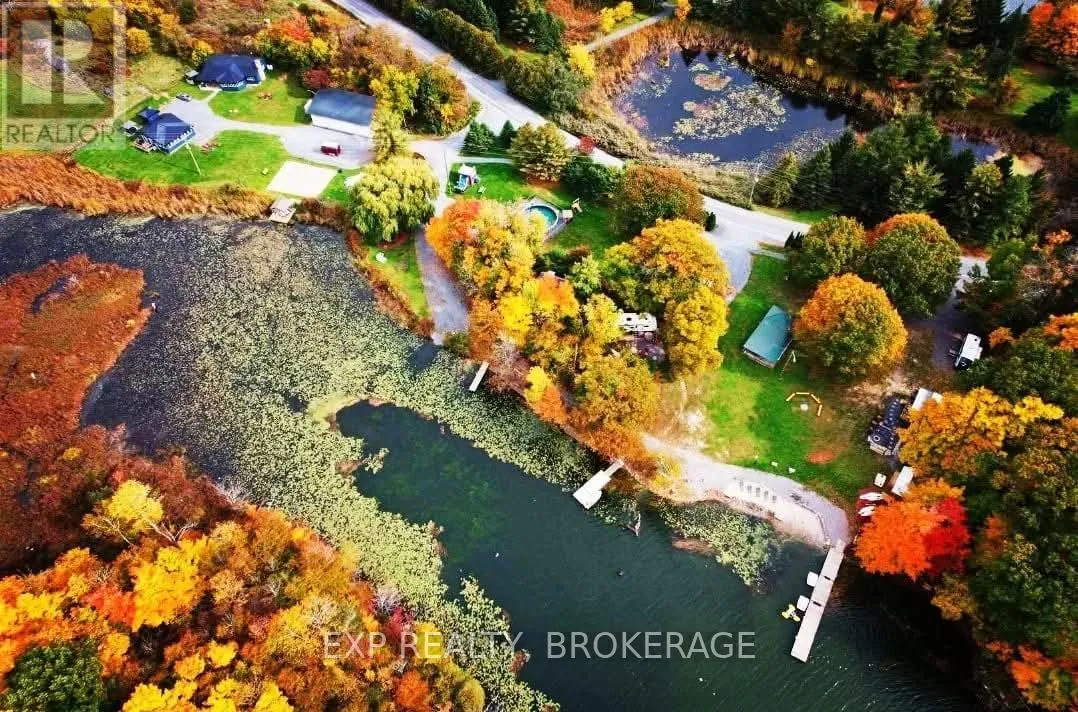 Hwy. 15 North to Burnt Hills Road to Carrying Place Road. Exceptional 3.95-acre waterfront property on beautiful Dog Lake, part of the Rideau Canal System, renowned for excellent boating and exceptional year-round fishing. Offering approx. 750 feet of shoreline, half natural and half landscaped, this unique estate features a 40-foot sandy, gradual-entry beach and an impressive array of residential, recreational, and income-generating structures. Truly turnkey and ready for year-round enjoyment or business use. The property features three year-round vacation homes, three fully serviced RV sites, two seasonal trailers, a tuck shop, and extensive docking facilities. Outbuildings and amenities include 35x60 ft 4-bay garage; 10x16 ft seasonal tuck shop with patio; 70-foot dock, 30-foot dock, and two 16-foot docks; two16x16-foot floating gazebos; private boat launch; fish cleaning hut with water & electricity; gated entry (automatic openers included but not yet installed); advanced UNIFI Wi-Fi system throughout the property; security system; 3 septic systems with raised lids (all new in 2012); one drilled well & one dug well; and two 200-AMP electrical service panels. Located on a well-maintained municipal road with weekly garbage/recycling pickup. Fibre-optic internet scheduled for 2026 (currently using StarLink). Ideal uses include a turnkey year-round cottage rental business, a multi-generational family compound for seasonal or full-time living, long-term rental investment, and a huge 4-bay garage, a rare opportunity; all the hard work has been done. Schedule your private viewing today. (id:27476)