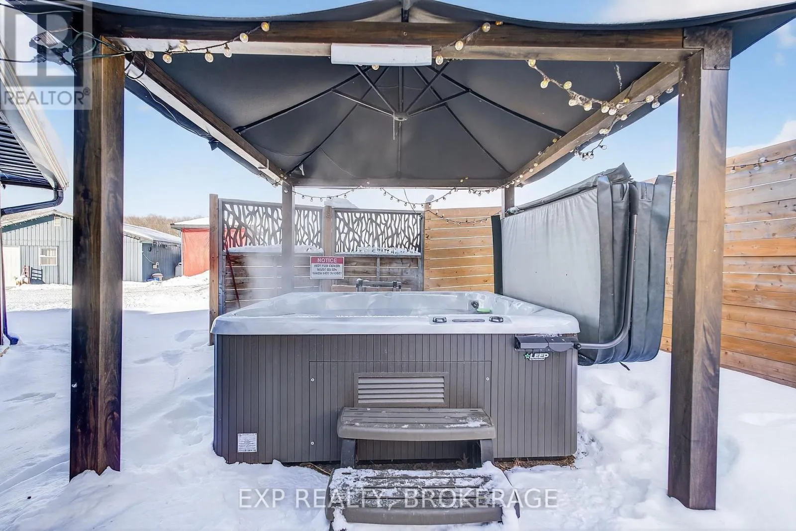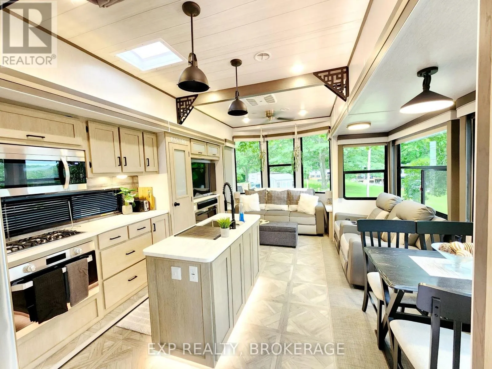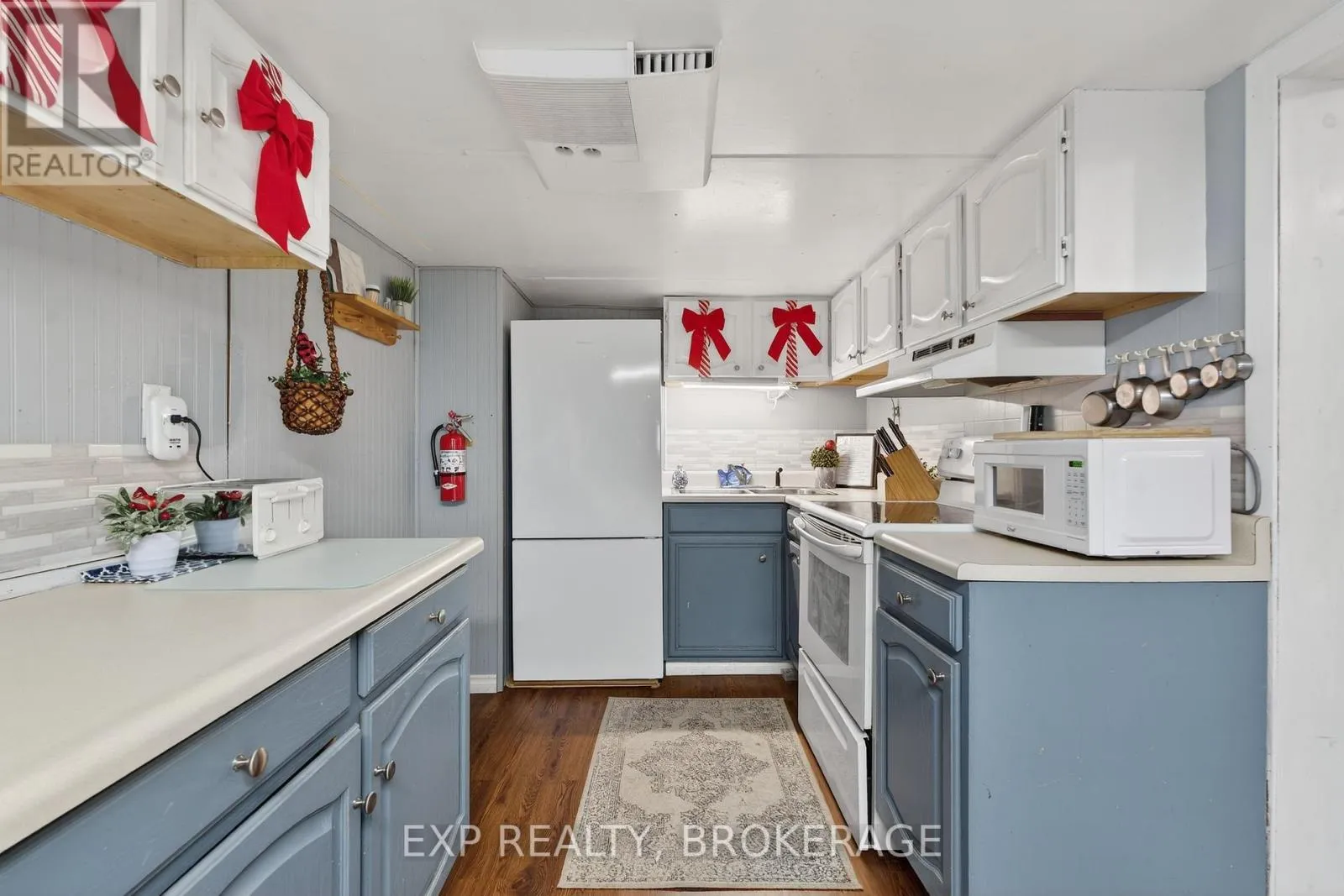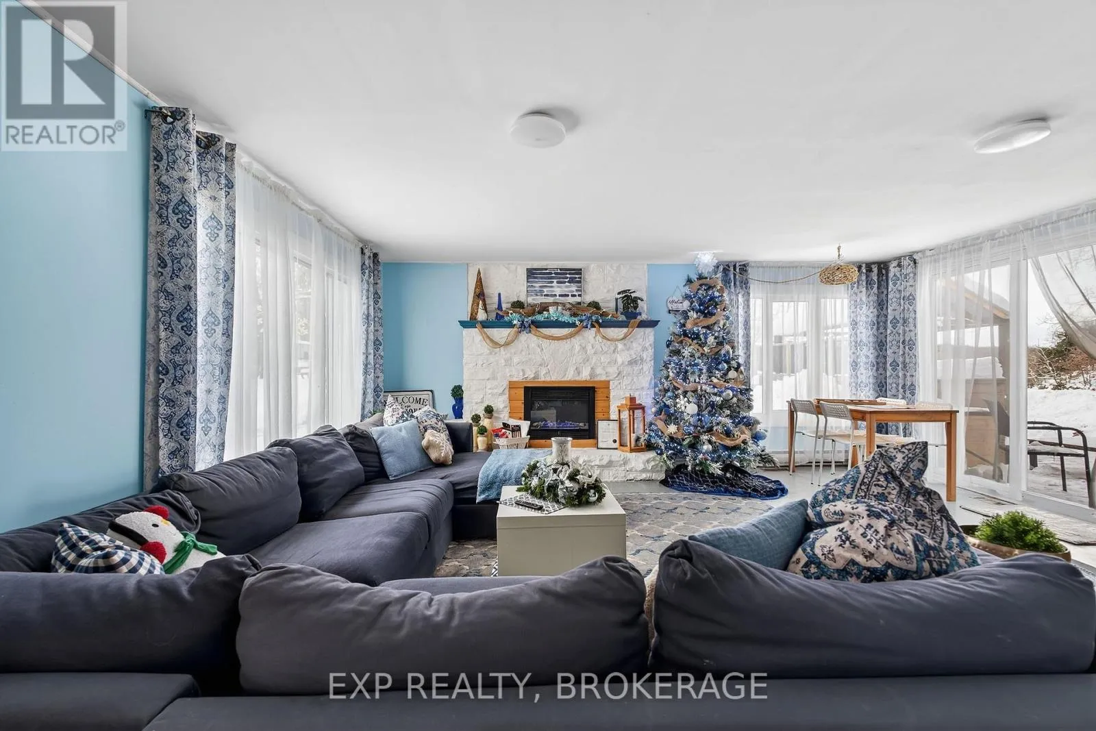 Hwy. 15 North to Burnt Hills Road to Carrying Place Road. Exceptional 3.95-acre waterfront property on beautiful Dog Lake, part of the Rideau Canal System, renowned for excellent boating and exceptional year-round fishing. Offering approx. 750 feet of shoreline, half natural and half landscaped, this unique estate features a 40-foot sandy, gradual-entry beach and an impressive array of residential, recreational, and income-generating structures. Truly turnkey and ready for year-round enjoyment or business use. The property features three year-round vacation homes, three fully serviced RV sites, two seasonal trailers, a tuck shop, and extensive docking facilities. Outbuildings and amenities include 35x60 ft 4-bay garage; 10x16 ft seasonal tuck shop with patio; 70-foot dock, 30-foot dock, and two 16-foot docks; two16x16-foot floating gazebos; private boat launch; fish cleaning hut with water & electricity; gated entry (automatic openers included but not yet installed); advanced UNIFI Wi-Fi system throughout the property; security system; 3 septic systems with raised lids (all new in 2012); one drilled well & one dug well; and two 200-AMP electrical service panels. Located on a well-maintained municipal road with weekly garbage/recycling pickup. Fibre-optic internet scheduled for 2026 (currently using StarLink). Ideal uses include a turnkey year-round cottage rental business, a multi-generational family compound for seasonal or full-time living, long-term rental investment, and a huge 4-bay garage, a rare opportunity; all the hard work has been done. Schedule your private viewing today. (id:27476)