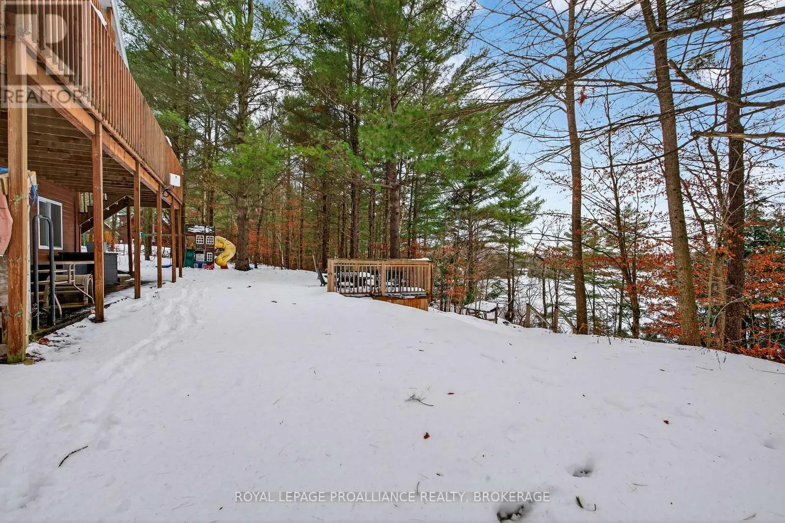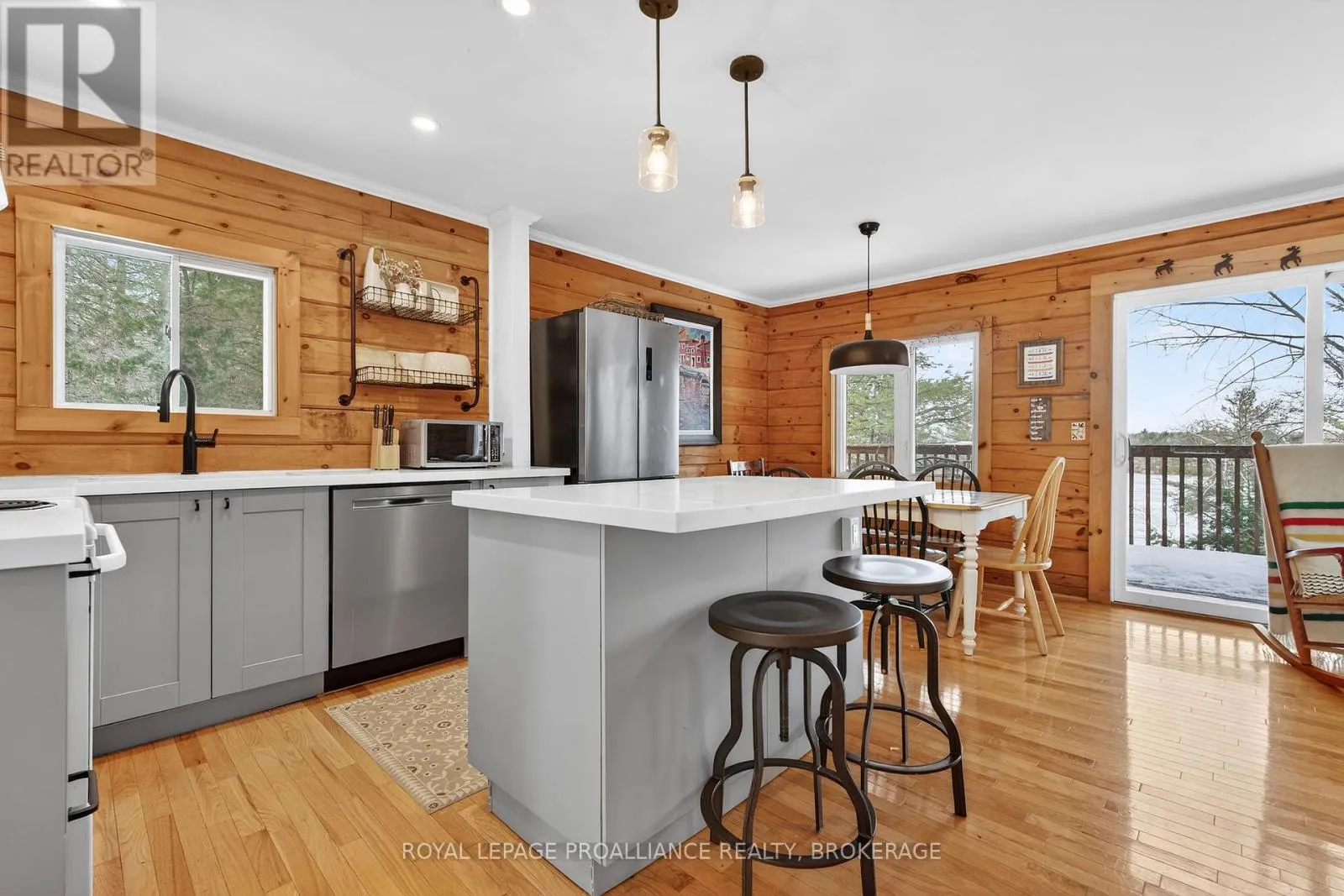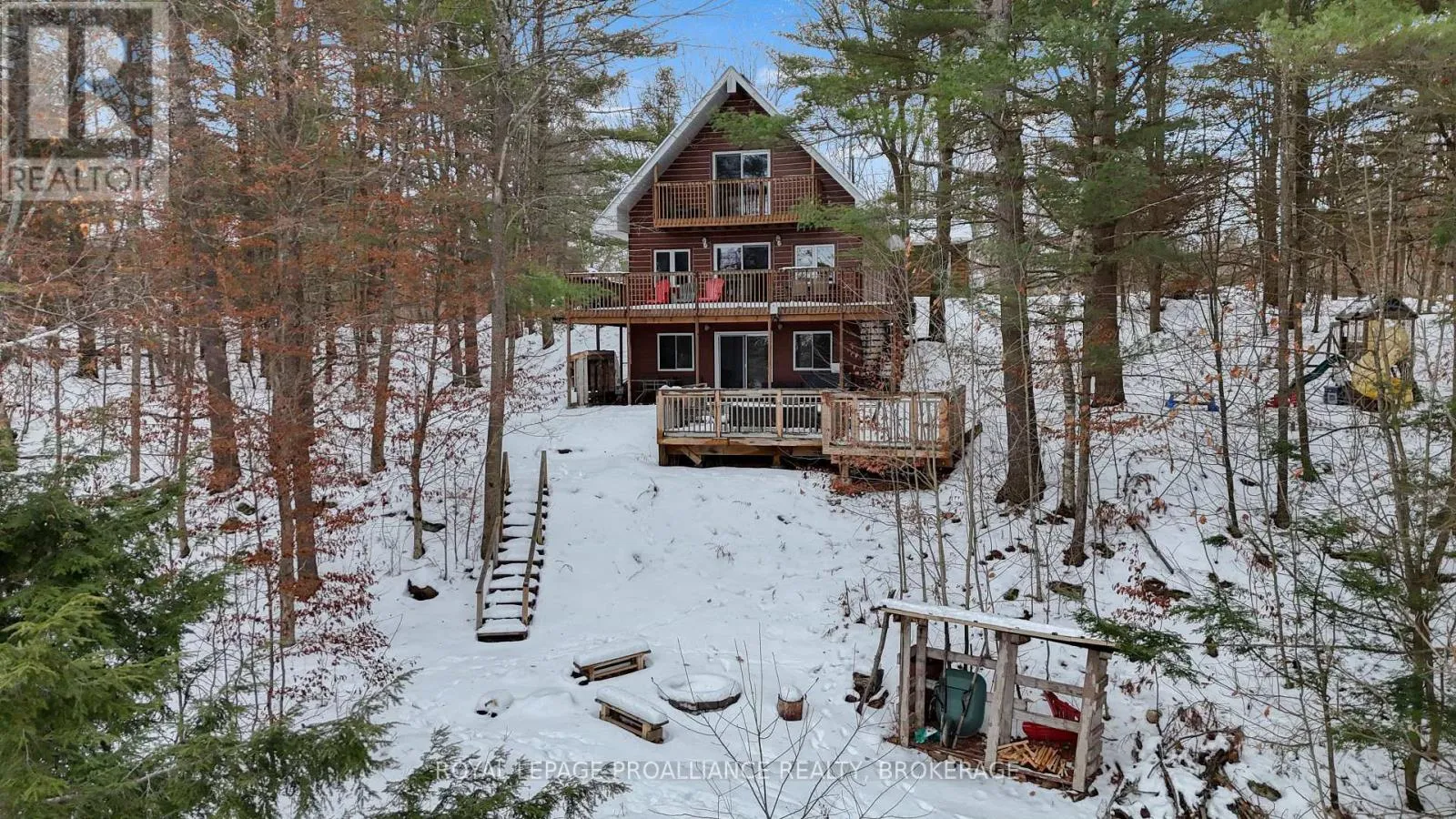 Cross Streets: Deer Park Lane. ** Directions: Hwy 38 to Holleford Rd to Deer Park Lane to Wood Duck Lane. Year Round living on Fourteen Island Lake- and what a sweet one this is. Summer on the lake may be idyllic, but winter is equally lovely! A well maintained laneway leads you into this gem, built in 1999, and enjoyed for the last 10 years by our sellers and their family, who are only the second owners. A bright and open layout, with Lake views from nearly every room, there is more space here than you think. The airy main floor finds a full bath, the first bedroom, and a large living space open to the new kitchen and patio doors to one of two elevated decks. The upper floor has two more bedrooms, and another full bath. The finished lower level is a wonderful bonus, with ample family room space, a walkout to the yard and a cozy corner woodstove for those chilly lake evenings. A large storage room and the laundry area are here as well. 14 Island Lake is deep and clear and the waterfront community is second to none. There aren't many properties that come up here often, and one would be very lucky to call this Home- whether it's full-time, or your seasonal escape! With a detached garage, newer dock, and forced air hvac (propane furnace/central air, 2017), this is turn-key, ALL done, and should not be missed! (id:27476)